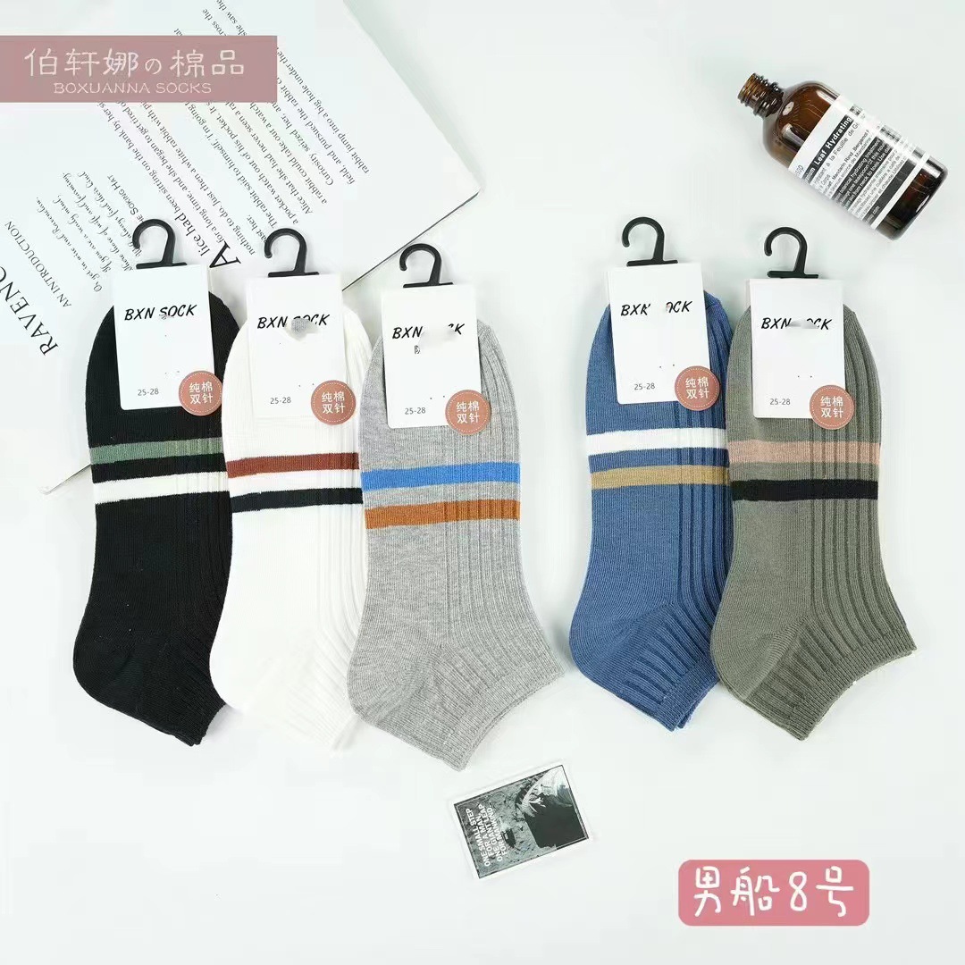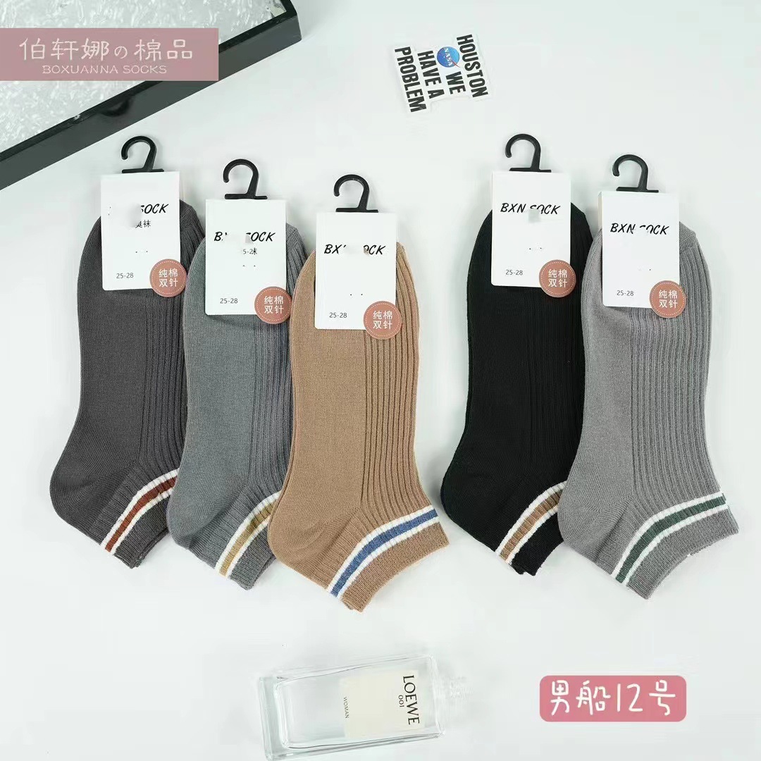 남자 양말 더블 바늘 코튼 보트 양말 그물 빨강 얇은 낮은 튜브 양말 단색 비즈니스 양말 내부 및 외부 면화 제조 업체 도매스토어 가기