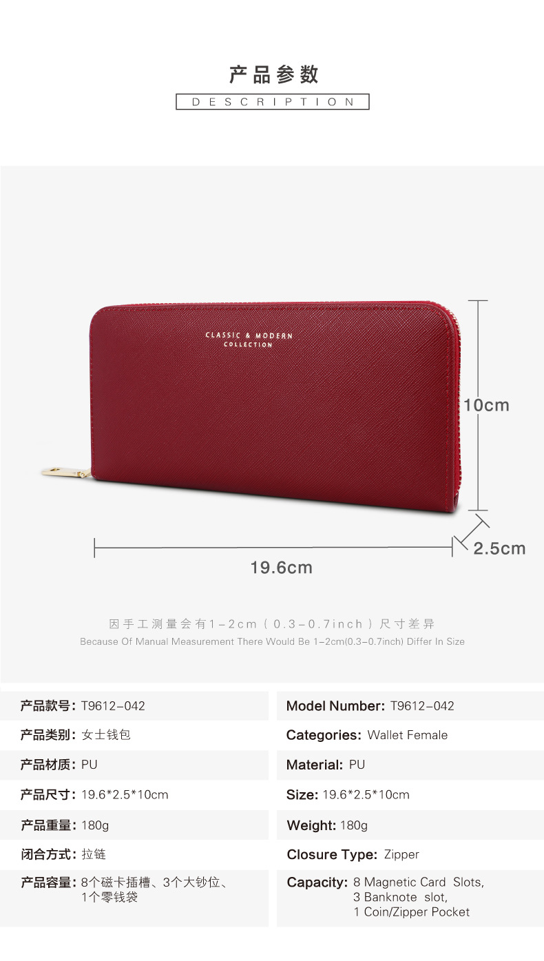 Tillian 2023 새 지갑 패션 여성용 롱 사피아노 지퍼 클러치 백 여성용 심플 지갑스토어 가기