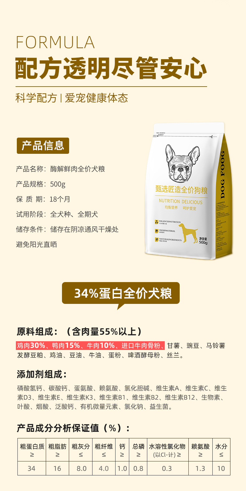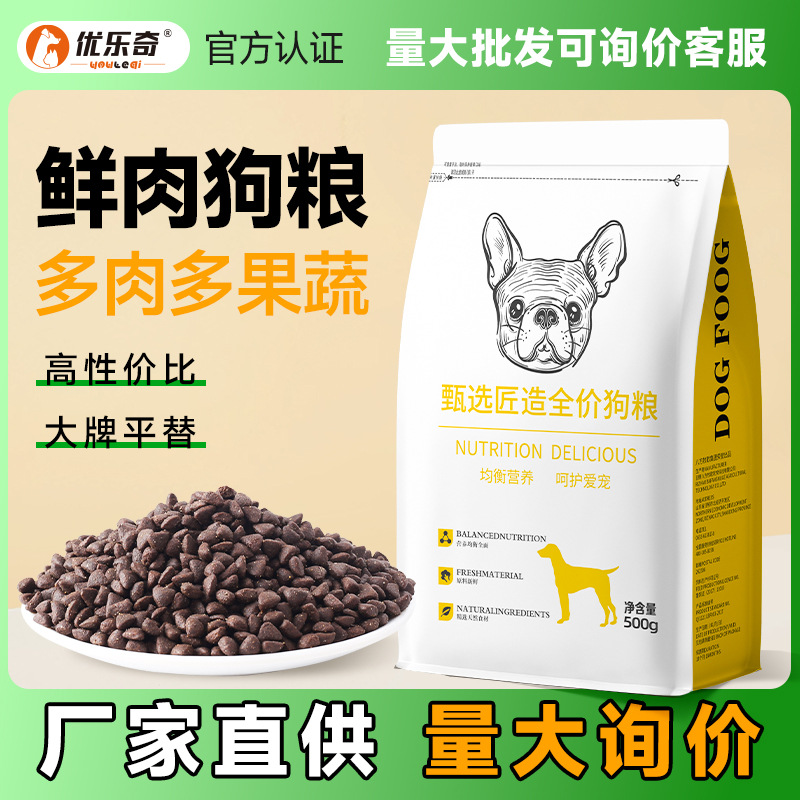 Youleqi 개 사료 500g 킬로 개 사료 도매 재고 공장 브랜드의 세대를 먹으려고 시도 유통 모집