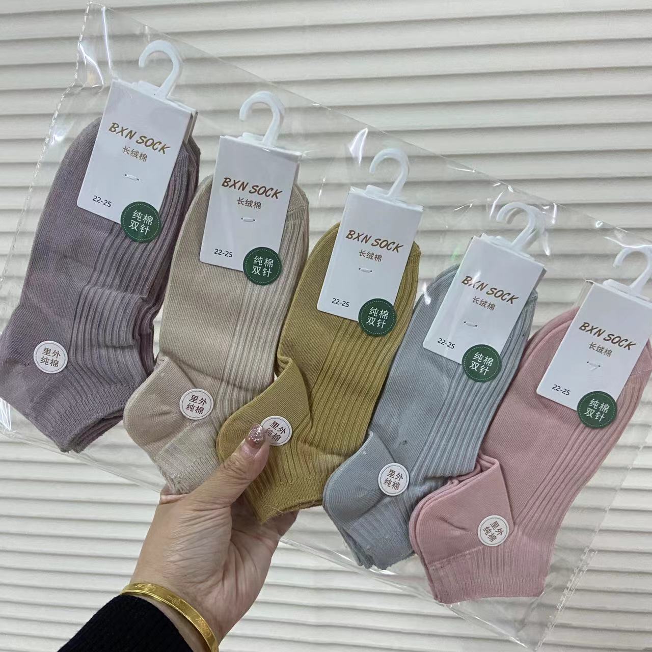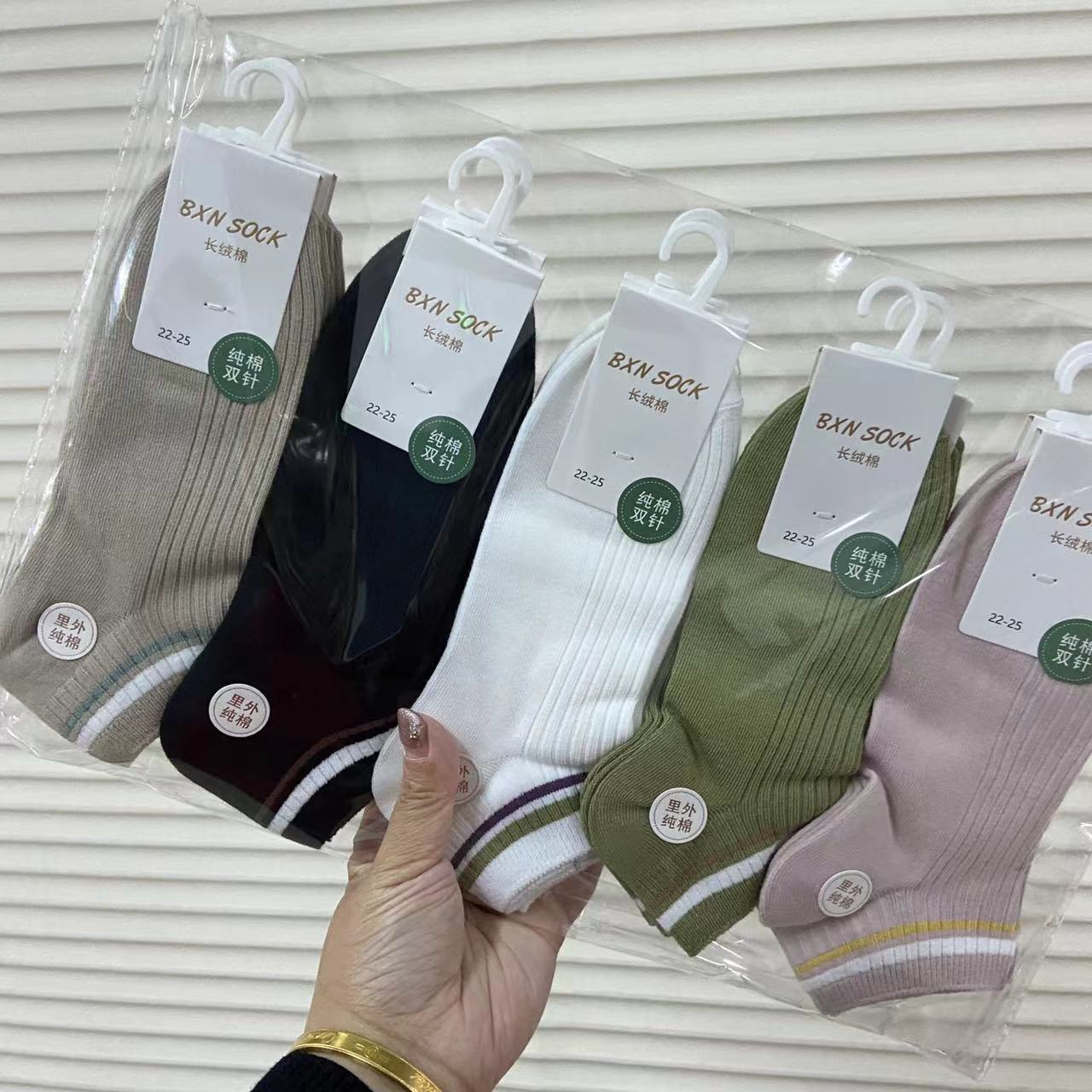 여자 양말 봄과 여름 얇은 이중 바늘 단색 낮은 튜브 보트 양말 작은 신선한 간단한 바람 사계절 면 양말스토어 가기