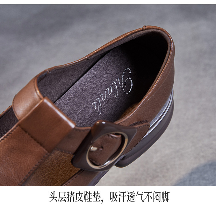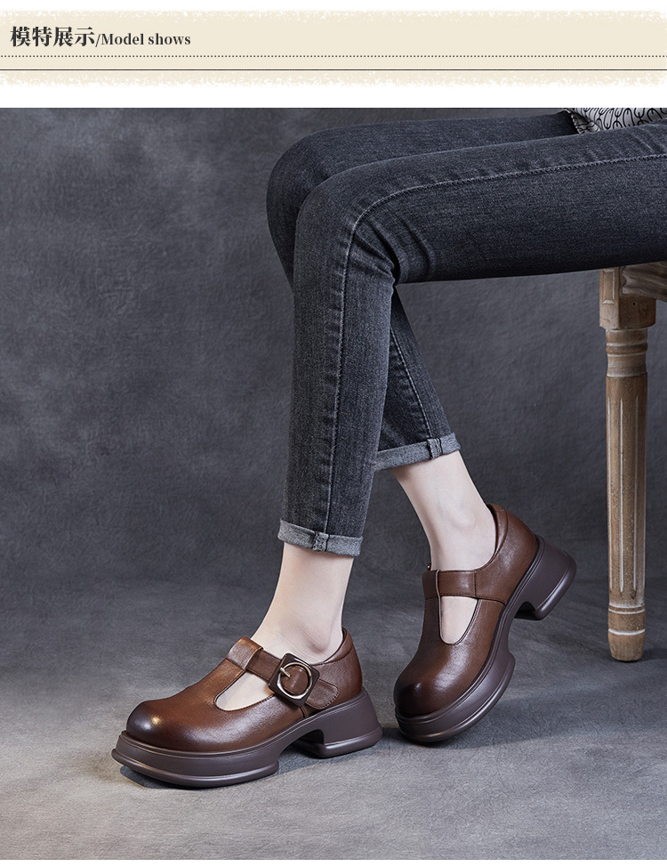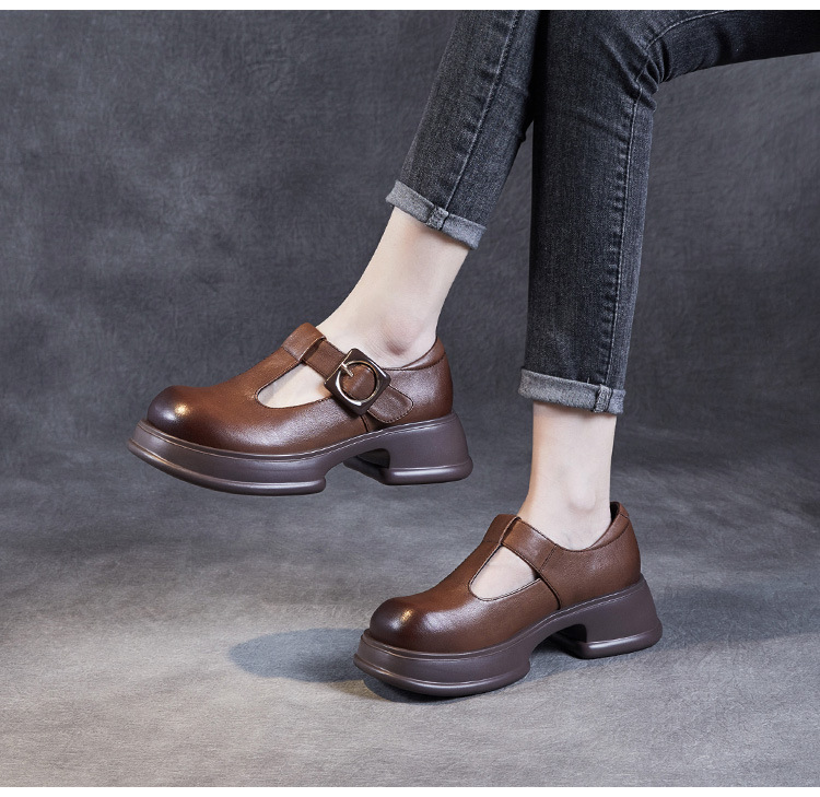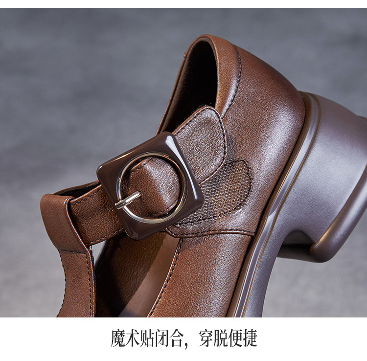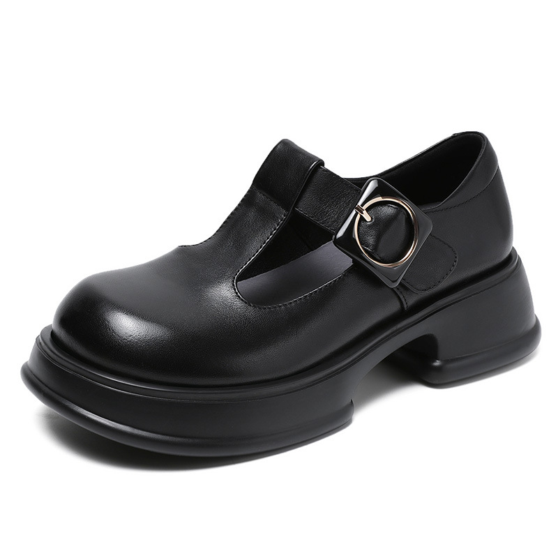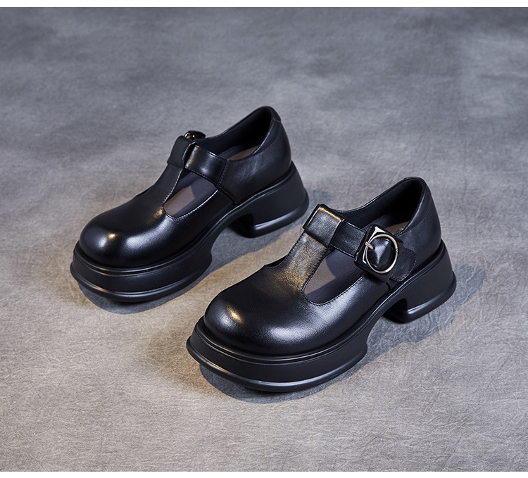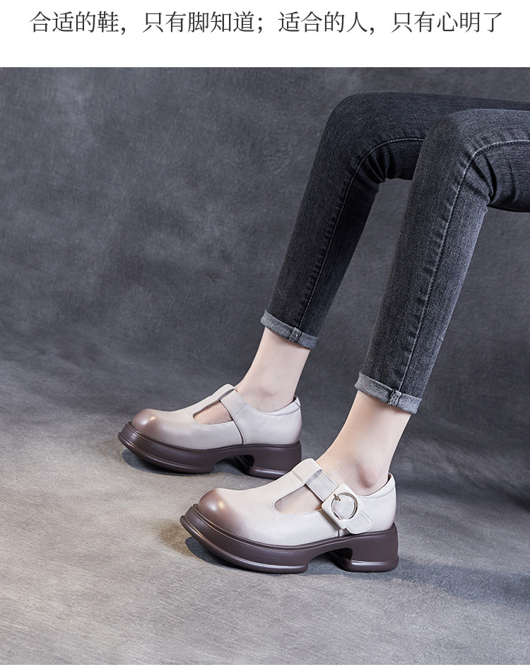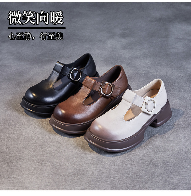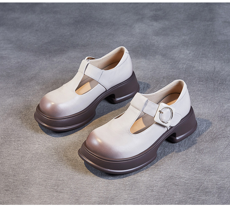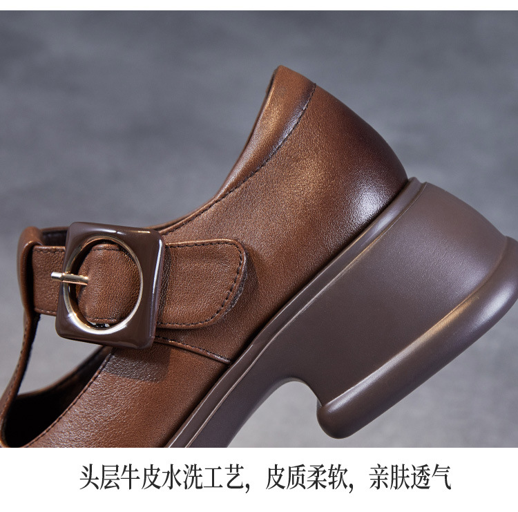 두꺼운 굽 Mary Jane 단층 신발 여성용 화이트 빈티지 T 자형 영국 가죽 신발 정품 가죽 두꺼운 밑창 작은 여성용 신발스토어 가기
