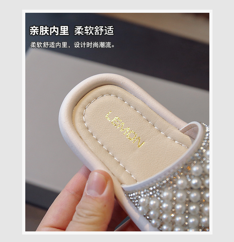 소녀 슬리퍼 2024 여름 새 어린이 한국식 진주 어린 소녀 부드러운 바닥 플립 플롭 아기 캐주얼 신발스토어 가기