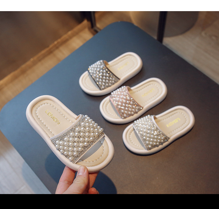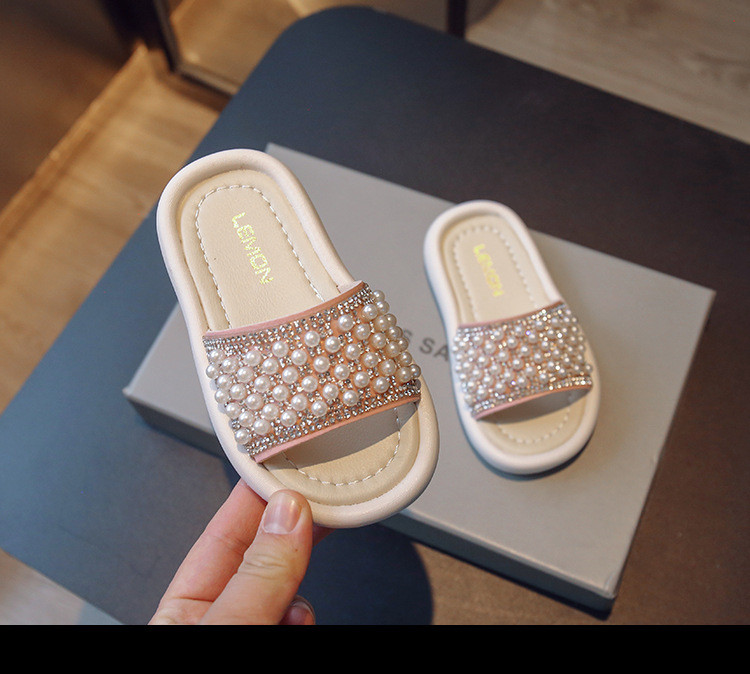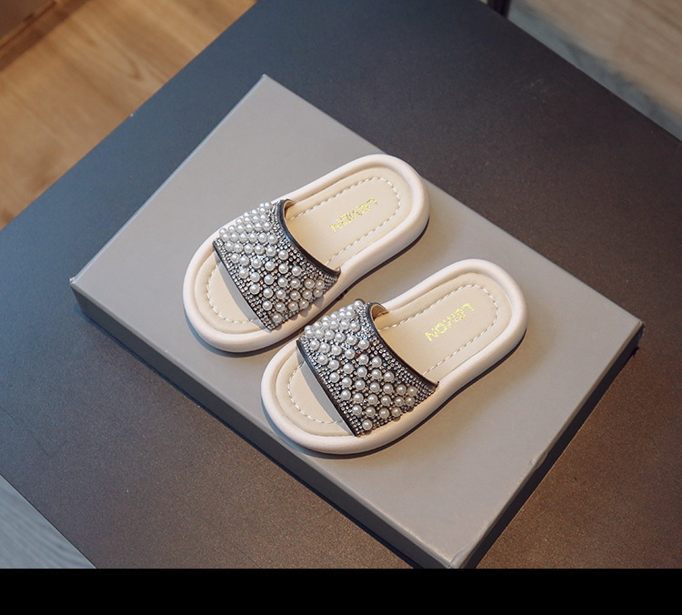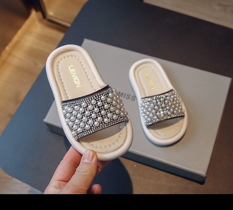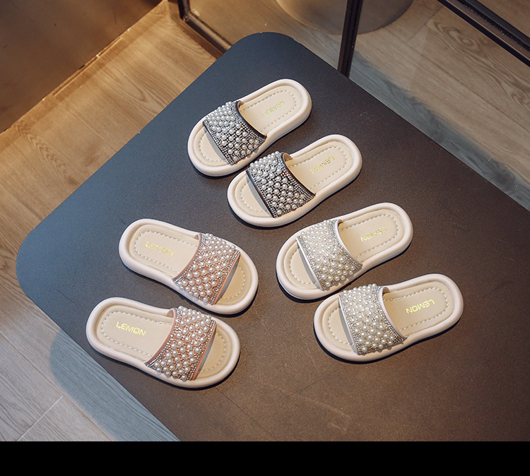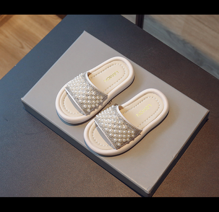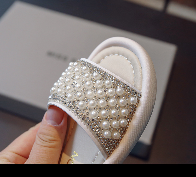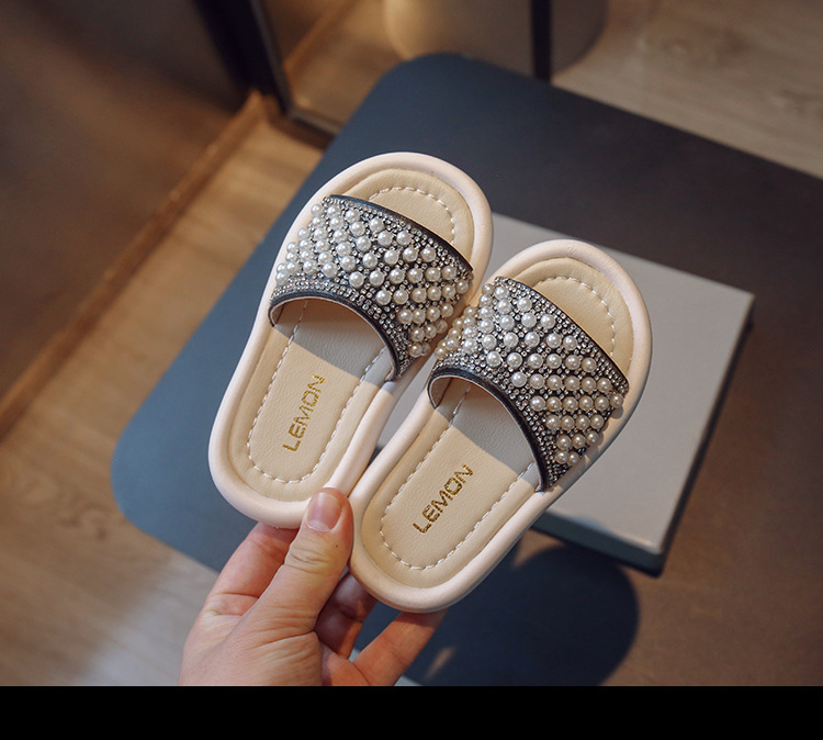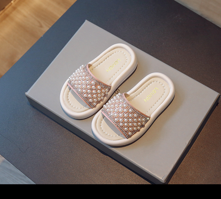 소녀 슬리퍼 2024 여름 새 어린이 한국식 진주 어린 소녀 부드러운 바닥 플립 플롭 아기 캐주얼 신발