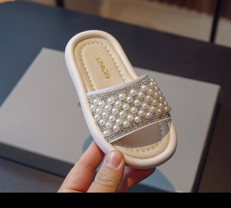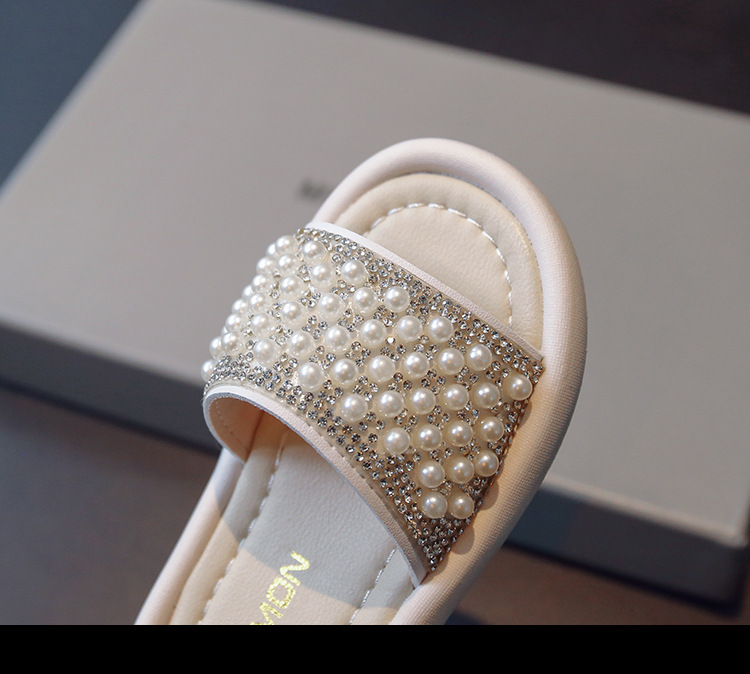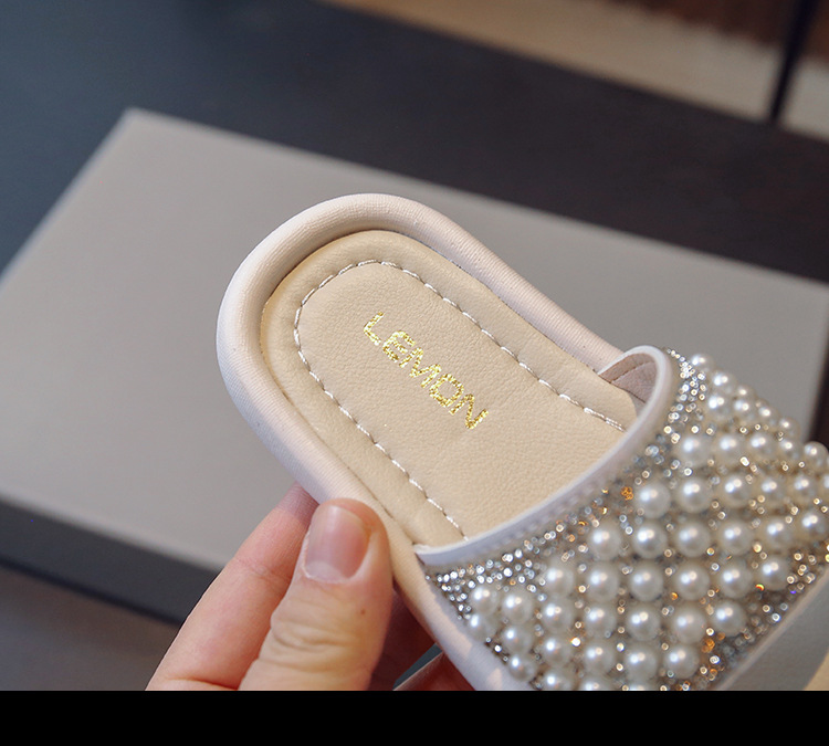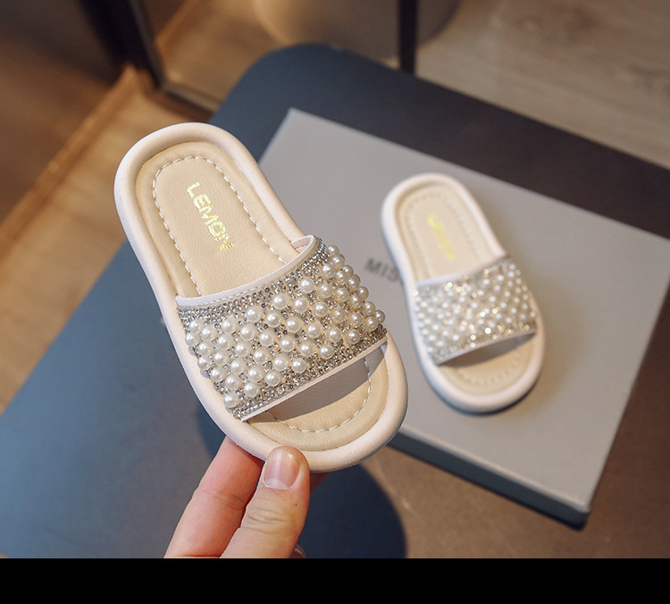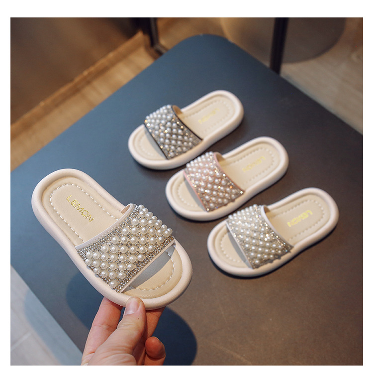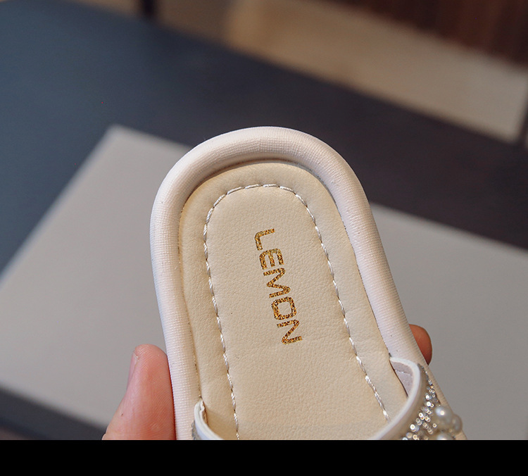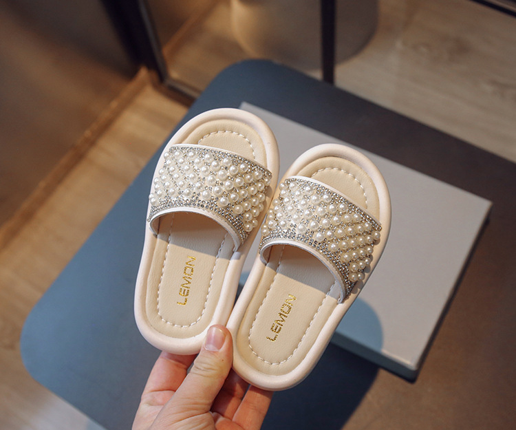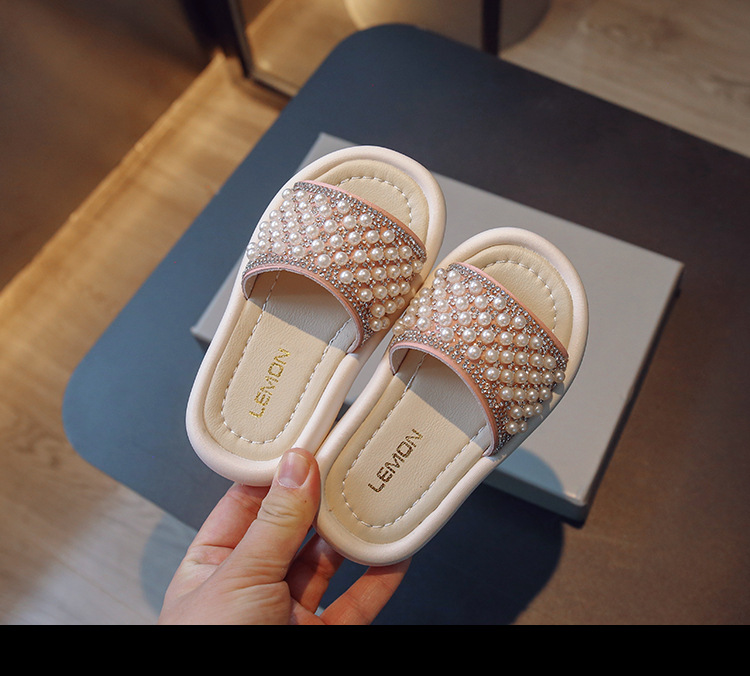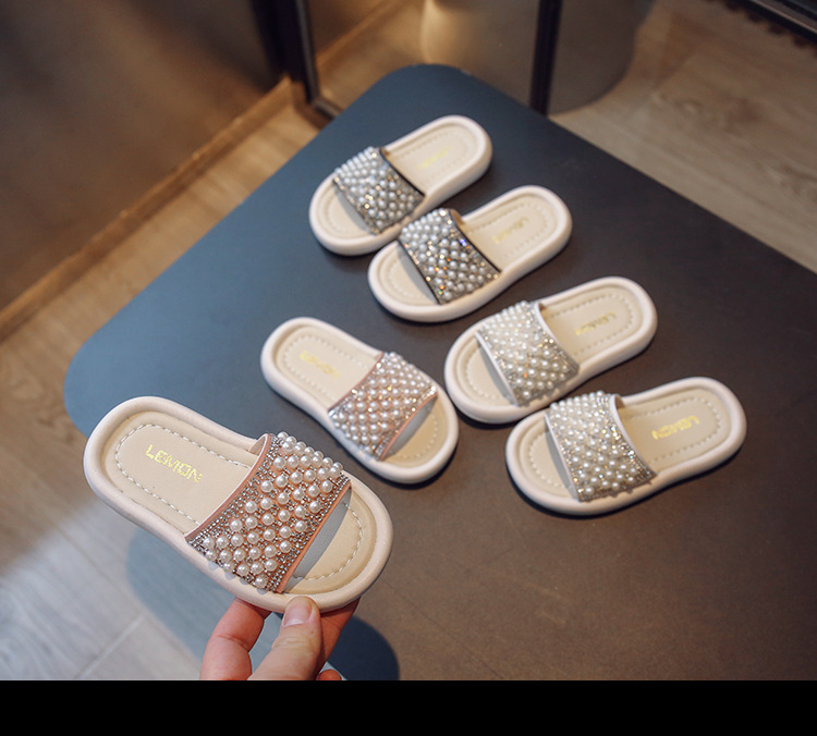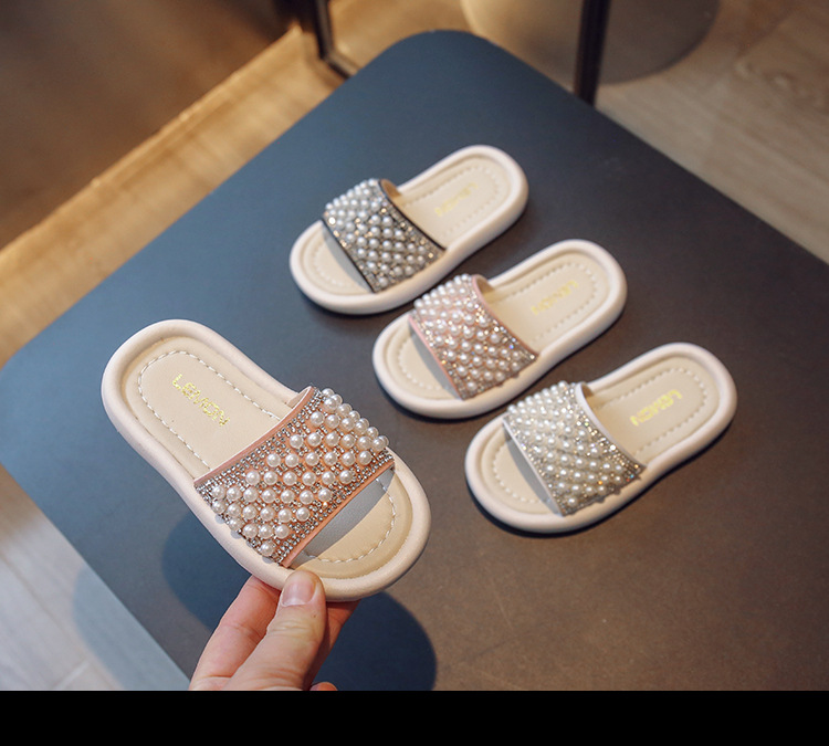 소녀 슬리퍼 2024 여름 새 어린이 한국식 진주 어린 소녀 부드러운 바닥 플립 플롭 아기 캐주얼 신발
