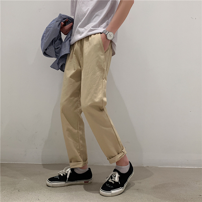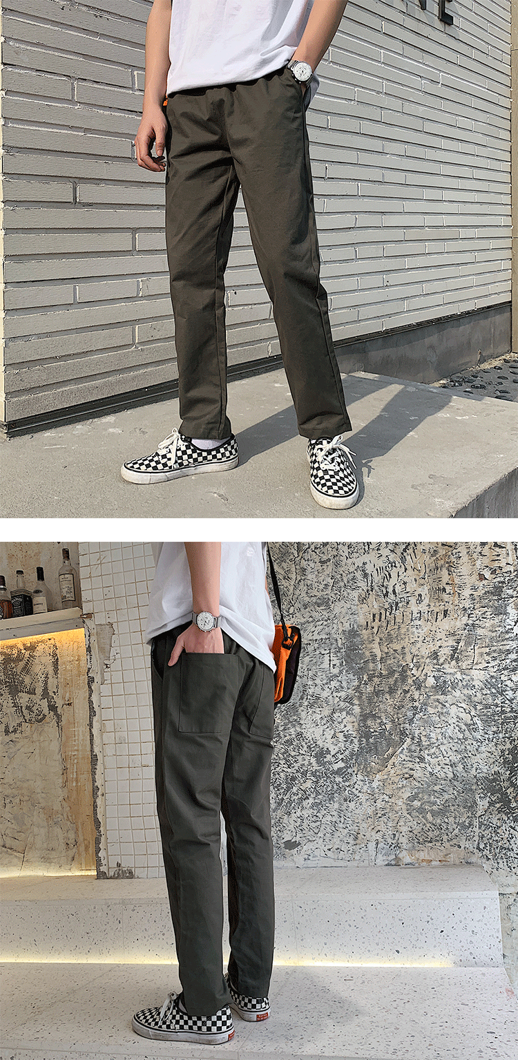 스트레이트 팬츠 남성 루즈한 와이드 팬츠 카키 한국 유행 소년 여름 9 점 캐주얼 팬츠 올매치 9 점스토어 가기