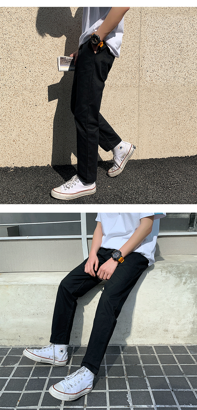 스트레이트 팬츠 남성 루즈한 와이드 팬츠 카키 한국 유행 소년 여름 9 점 캐주얼 팬츠 올매치 9 점
