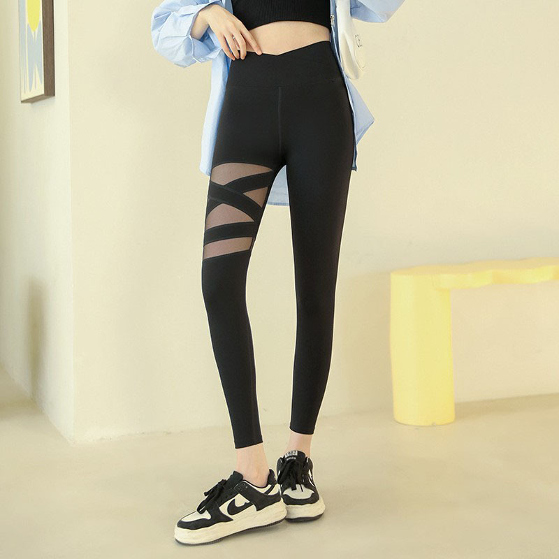 여성용 봄 신상 메쉬 크로스 샤크 팬츠 슬림핏 힙업 레깅스 패셔너블 슬림 섹시 요가 9부 팬츠스토어 가기