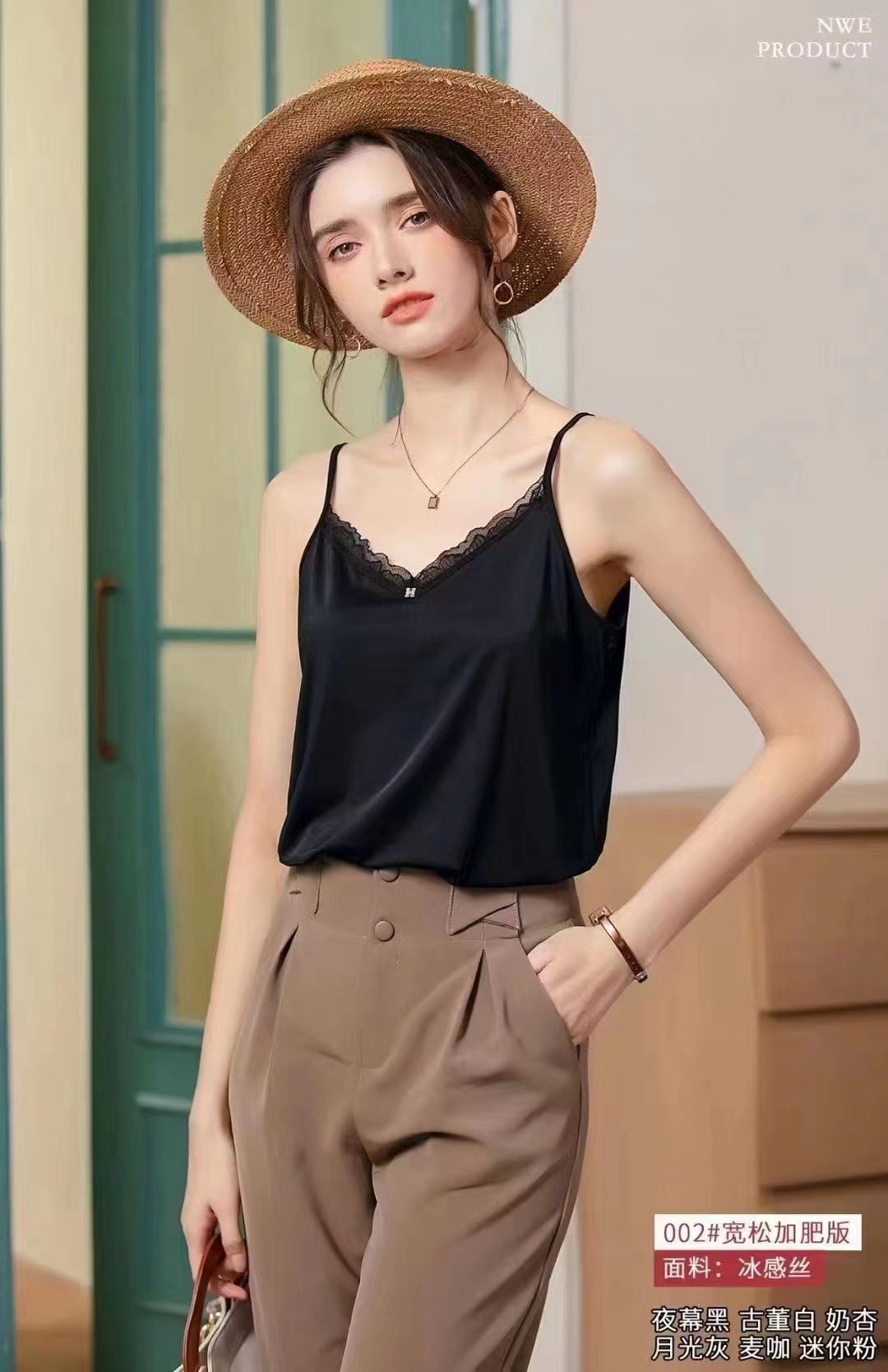 Tianmiao 아이스 실크 002 조끼 아이스 실크 플러스 새틴 크로스 얇은 스트랩 다이아몬드 레이스 서스펜더 여성 60cm 솔리드 컬러 티셔츠