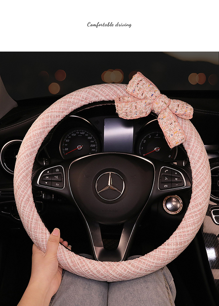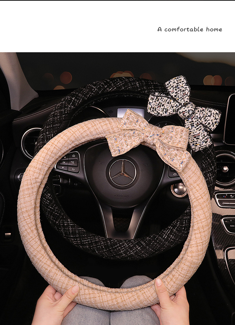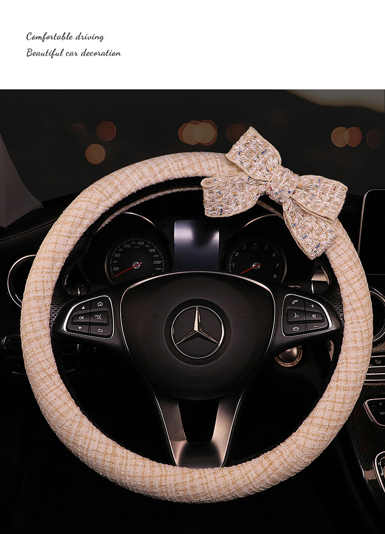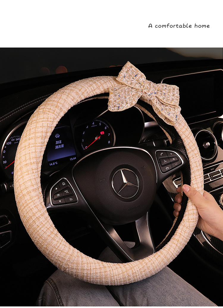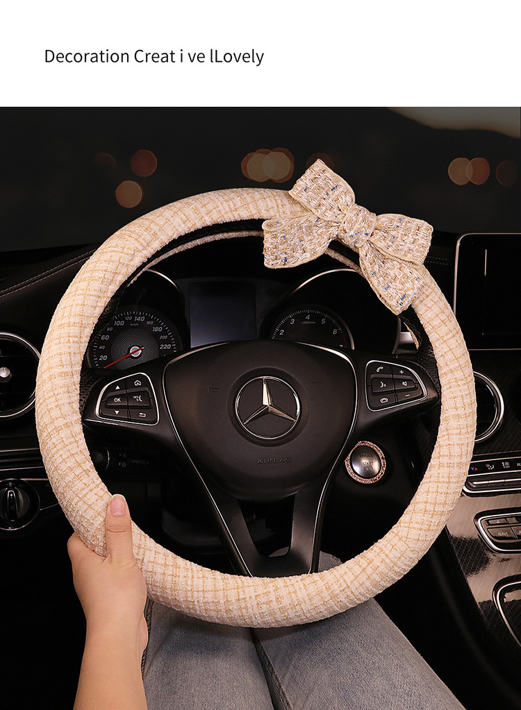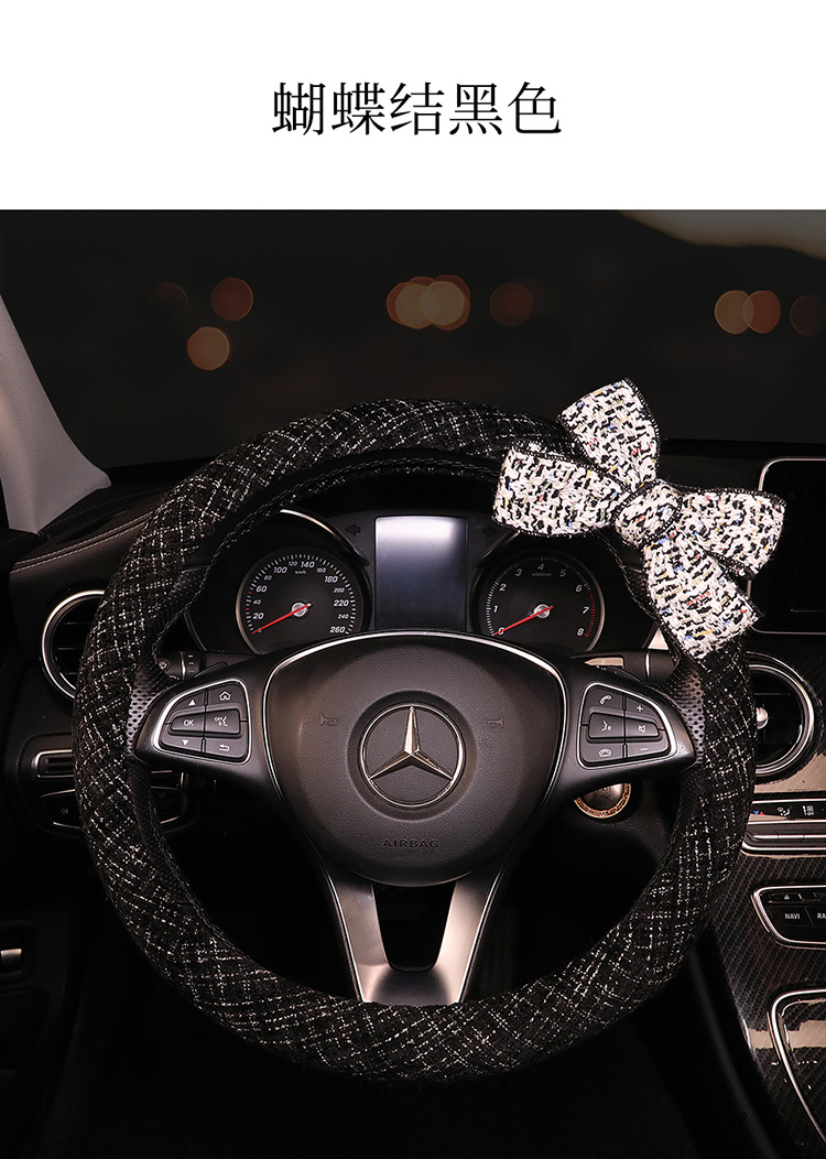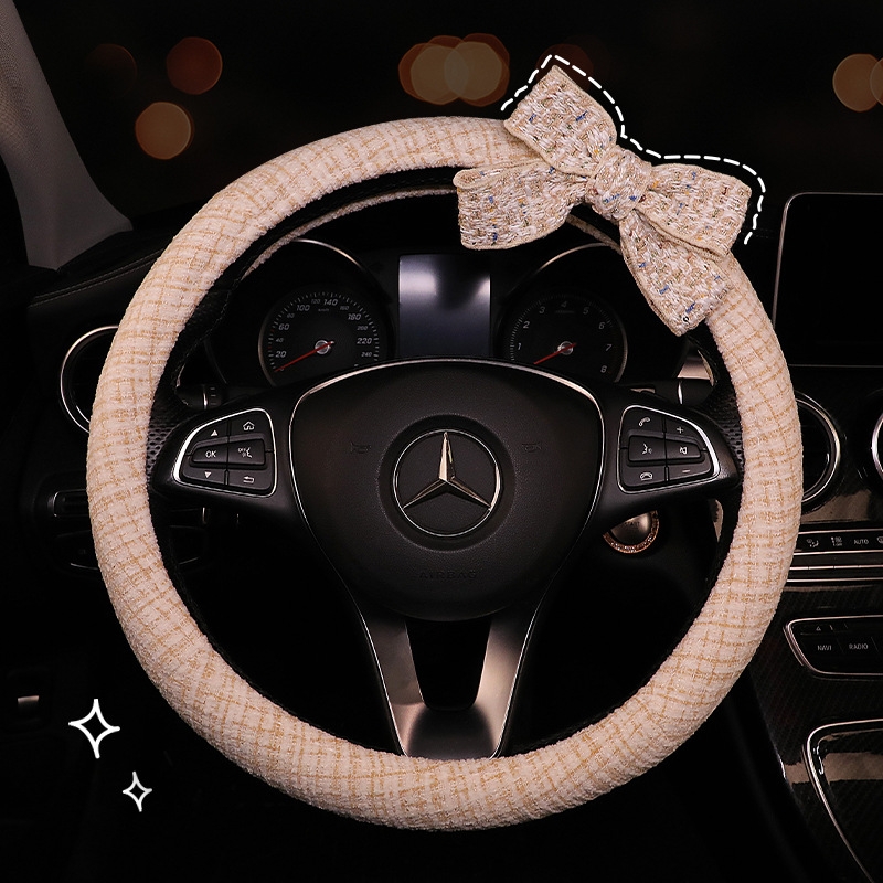 자동차 핸들 커버 여신 여성용 사계절 유니버설 보우 자동차 핸들 커버 여성용 귀여운 미끄럼 방지