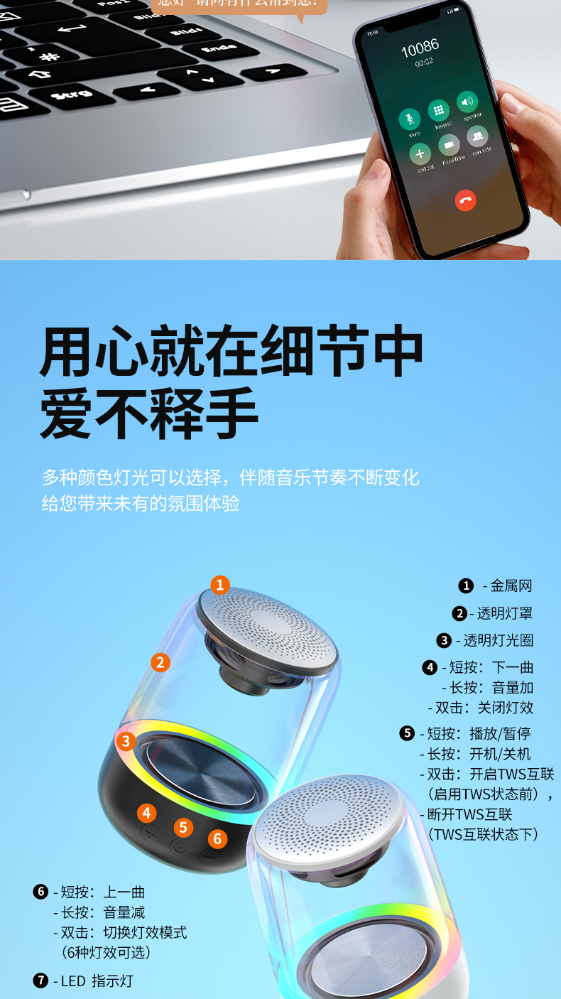 Yayunshi C7 라이브 카 다채로운 분위기 빛 블루투스 스피커 휴대용 상호 연결 TWS 다채로운 블루투스 오디오