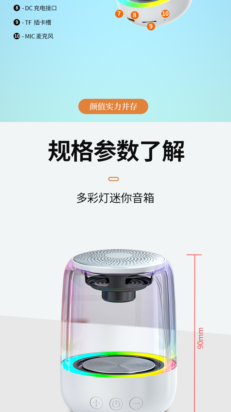 Yayunshi C7 라이브 카 다채로운 분위기 빛 블루투스 스피커 휴대용 상호 연결 TWS 다채로운 블루투스 오디오스토어 가기