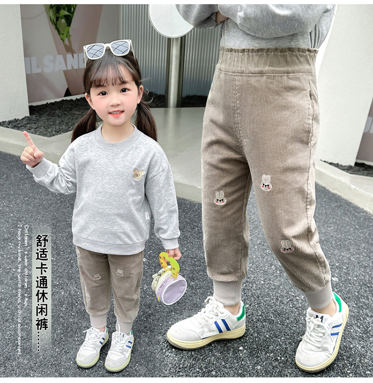 어린이 바지 소녀 코듀로이 바지 봄과 가을 만화 자수 여성 아기 스트레치 바지 캐주얼 바지 도매스토어 가기