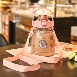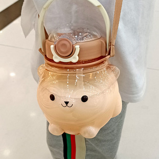 大肚杯现货批发1000ML吸管塑料杯子墩墩超萌带背带弹跳网红水杯