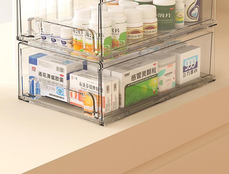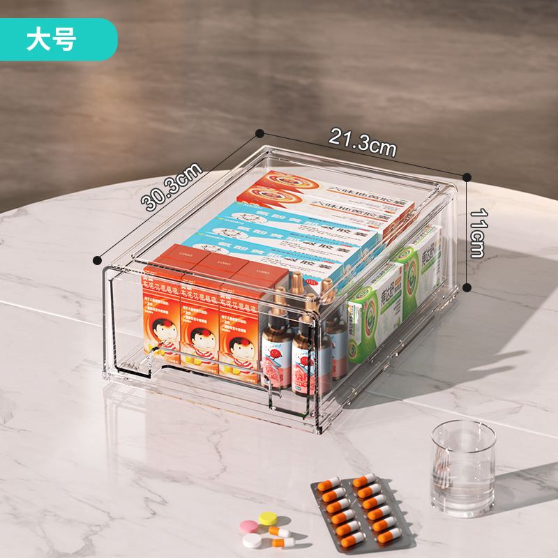 약 상자 서랍형 가정용 조명 럭셔리 투명 아크릴 다층 쌓을 수 있는 방진 대용량 데스크탑 보관함