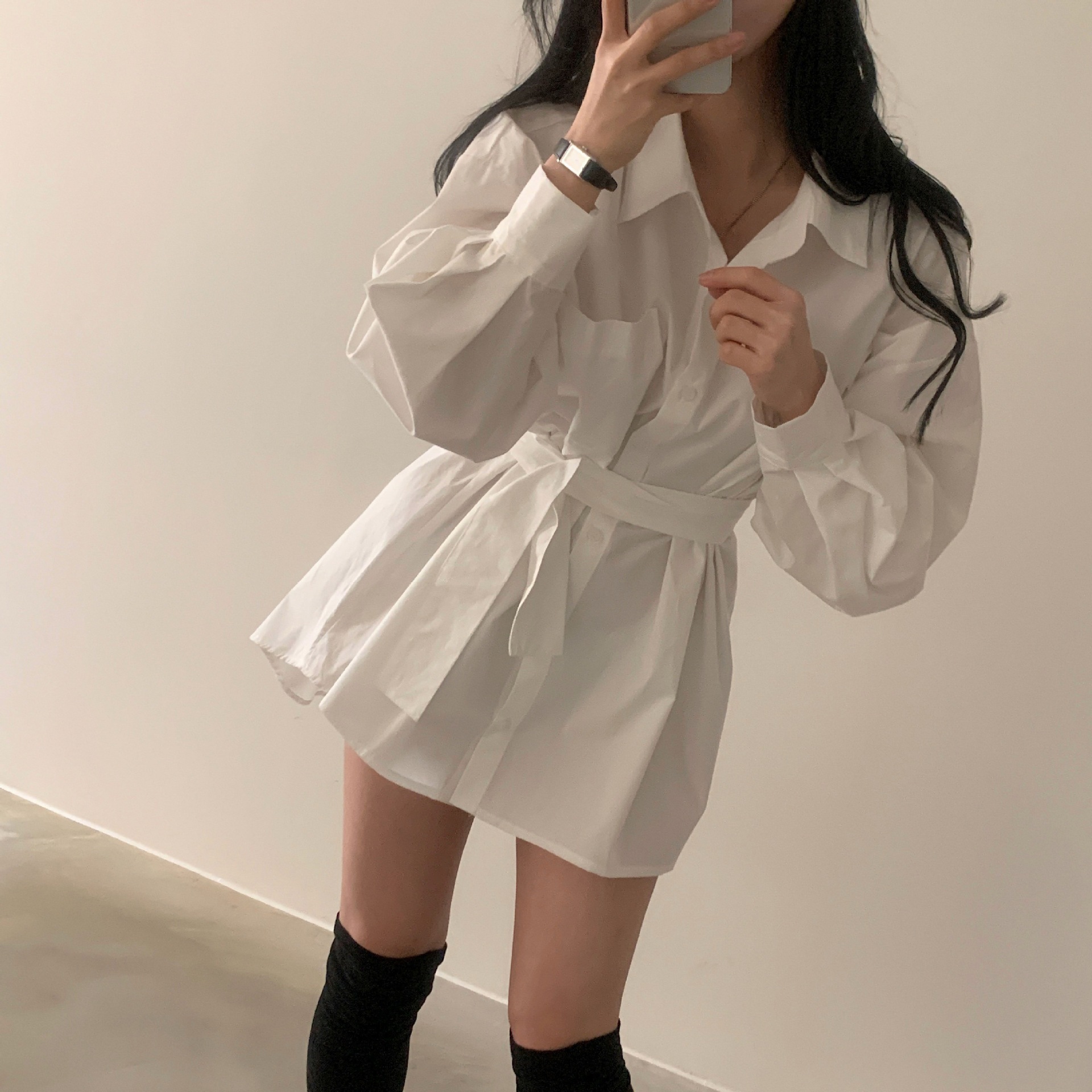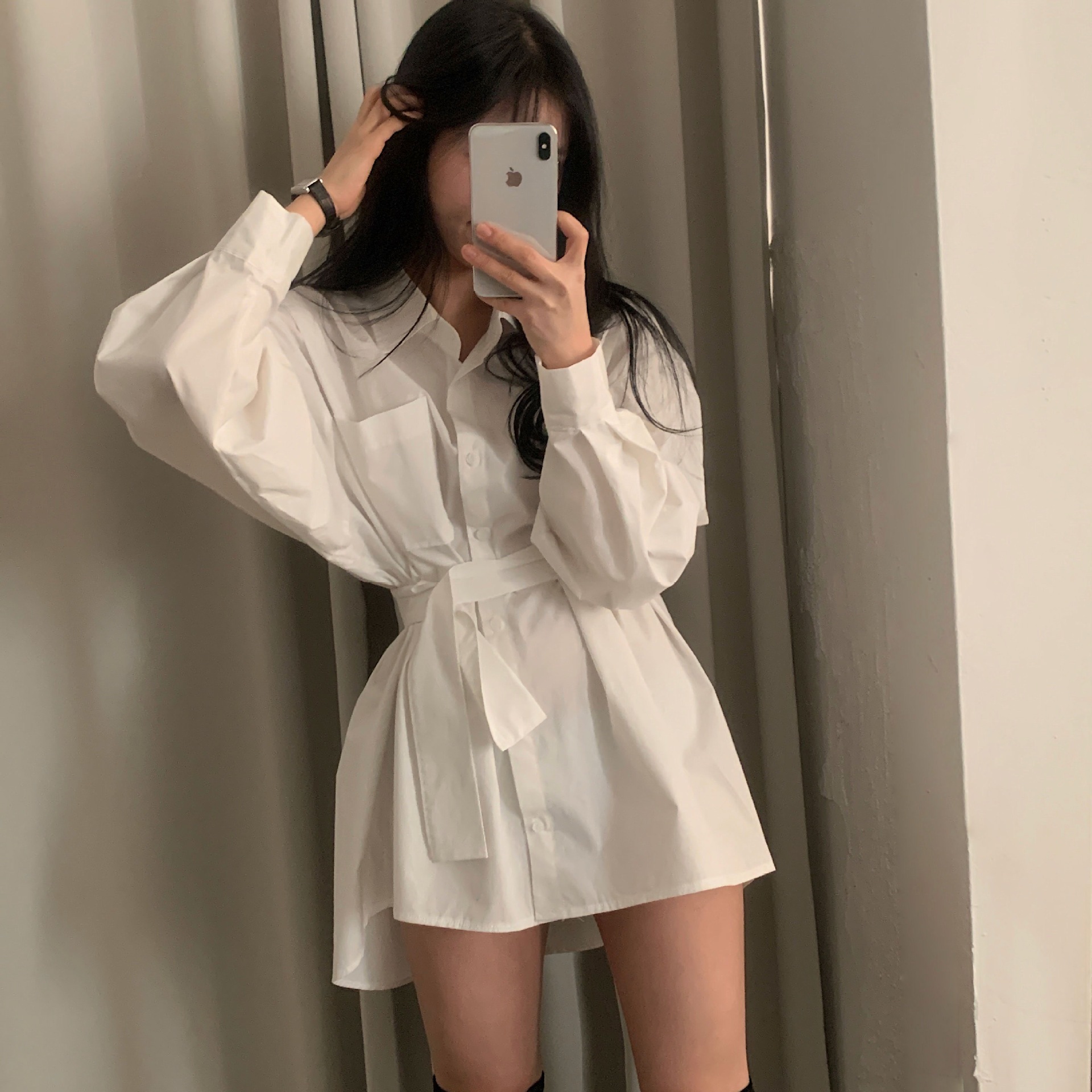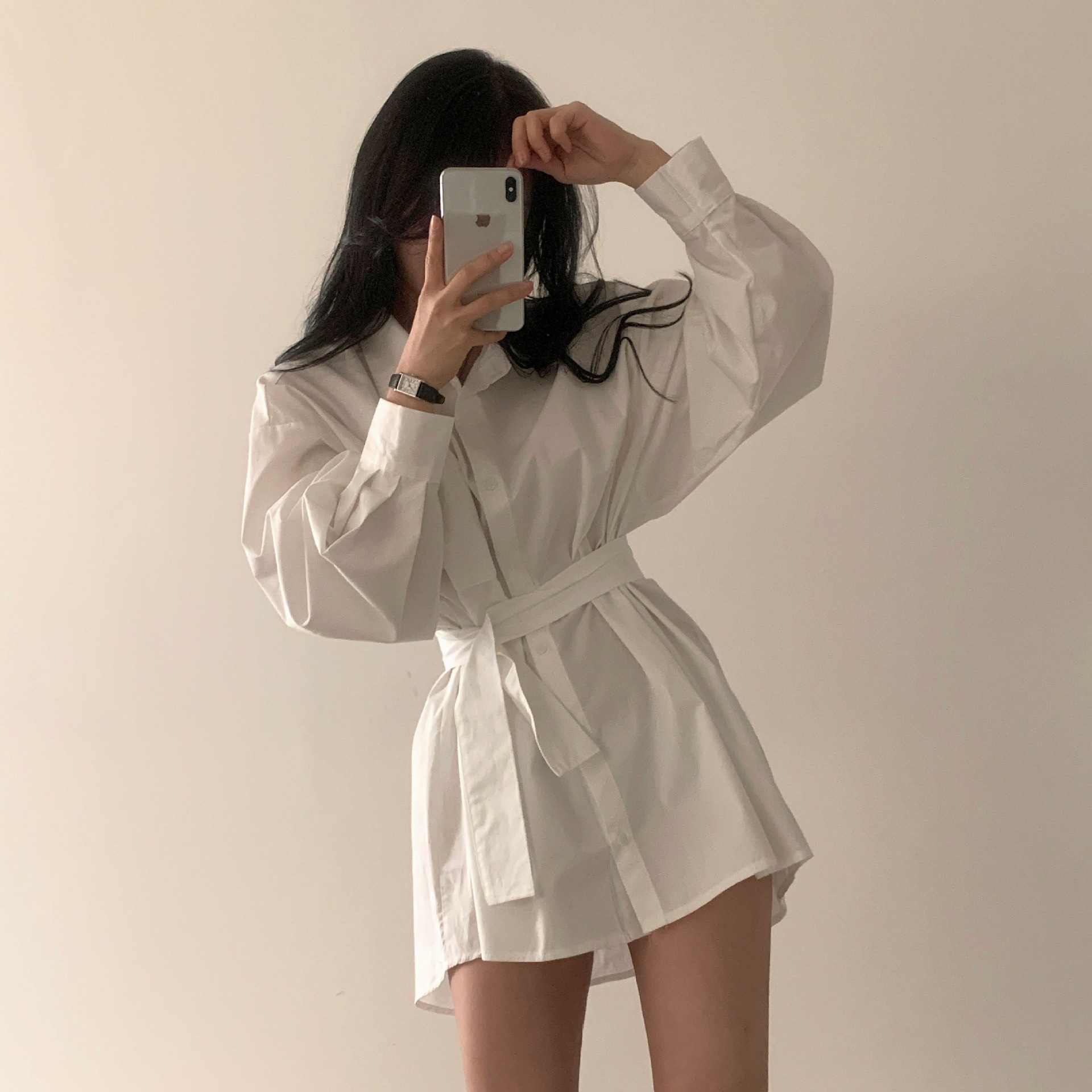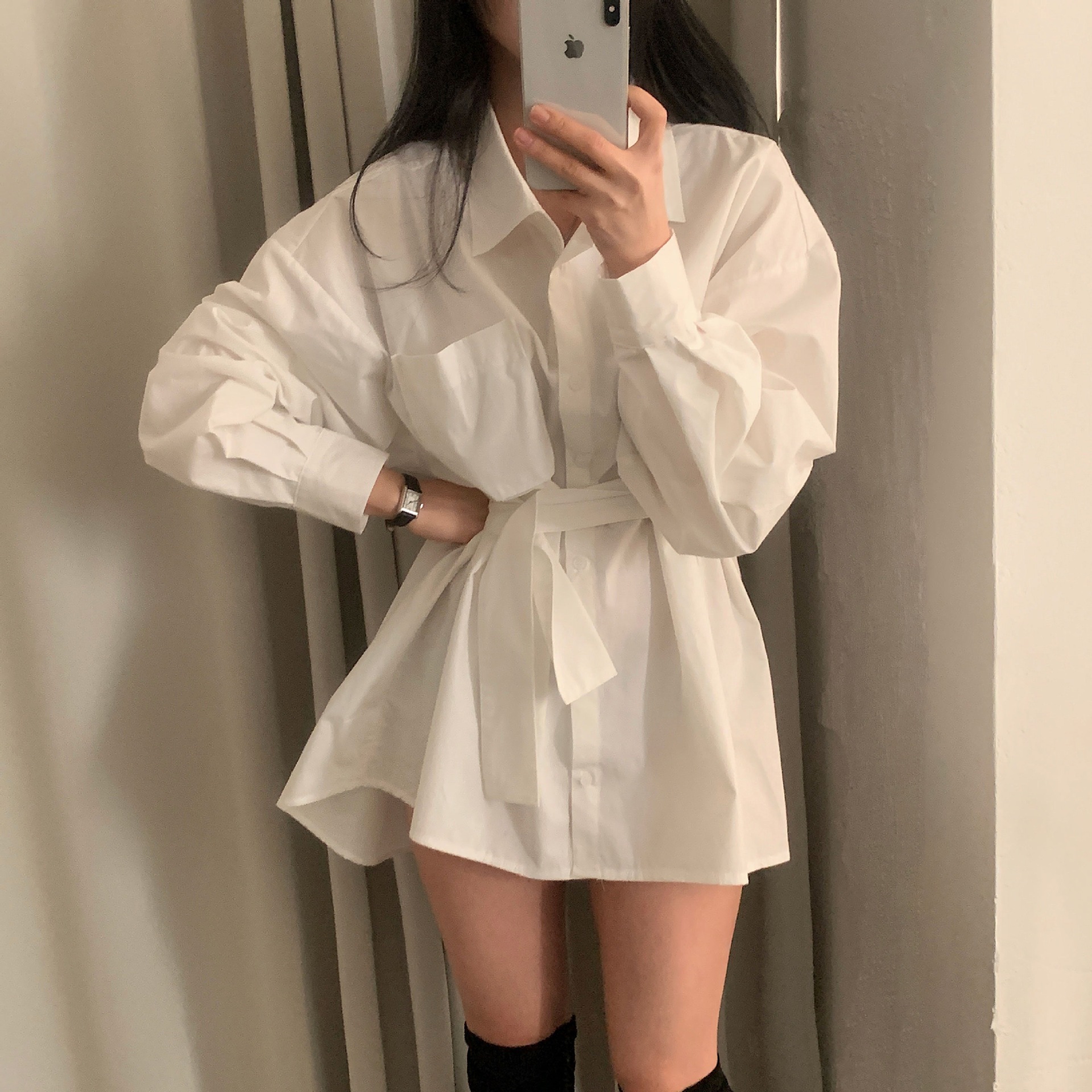 2024 봄 여름 신상 단색 루즈핏 셔츠 원피스 이너웨어 겸용 긴팔 여성 셔츠 원피스스토어 가기