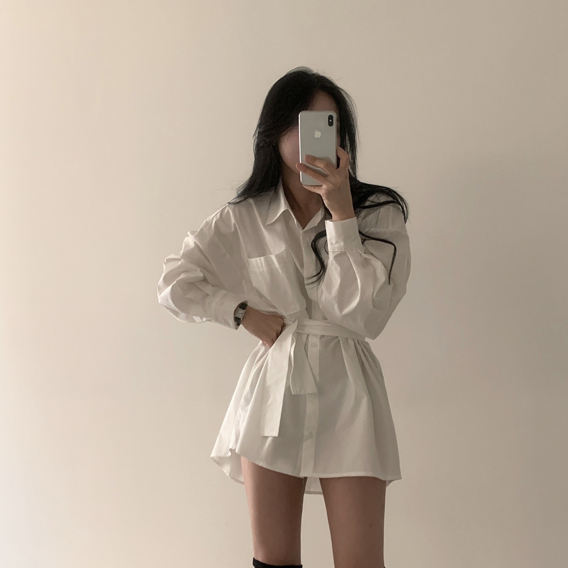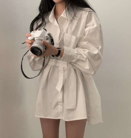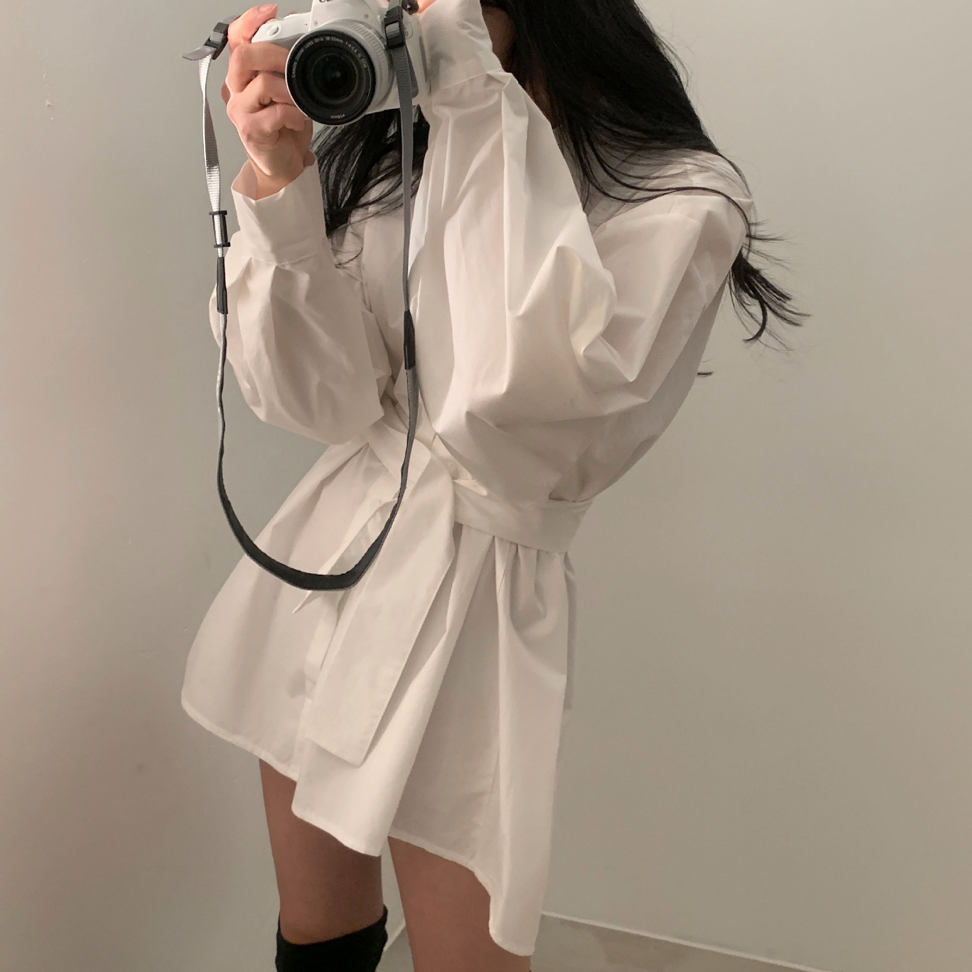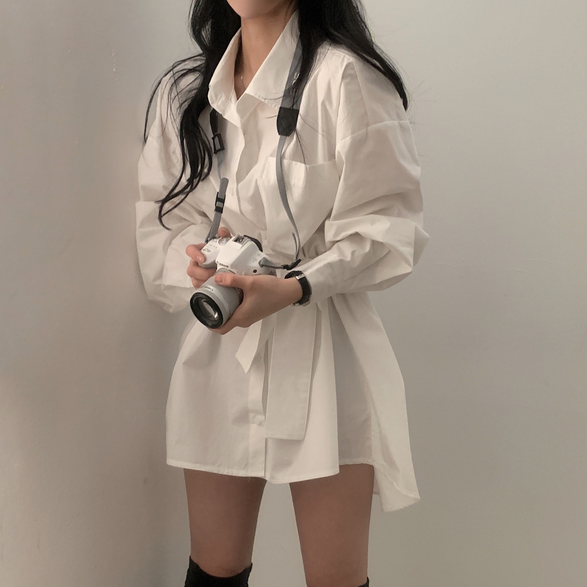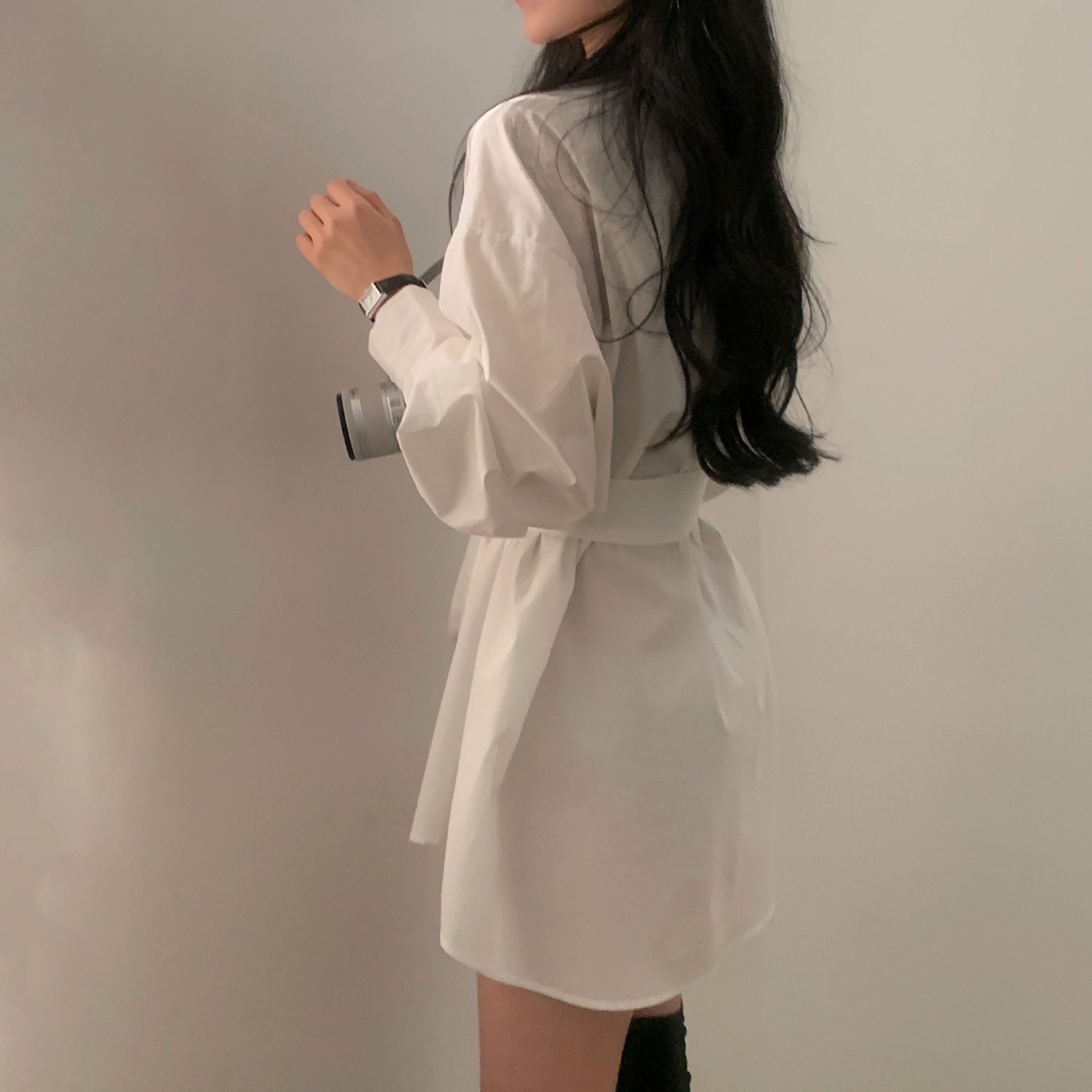2024 봄 여름 신상 단색 루즈핏 셔츠 원피스 이너웨어 겸용 긴팔 여성 셔츠 원피스스토어 가기