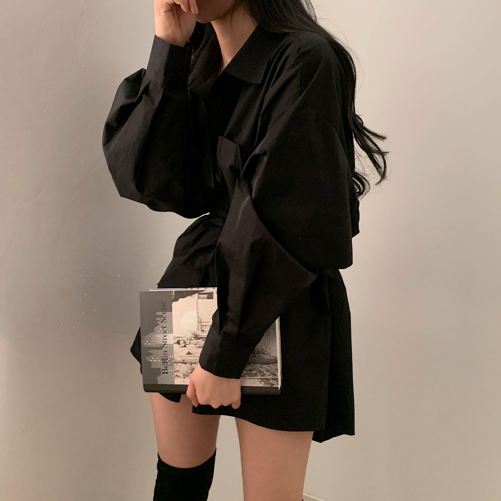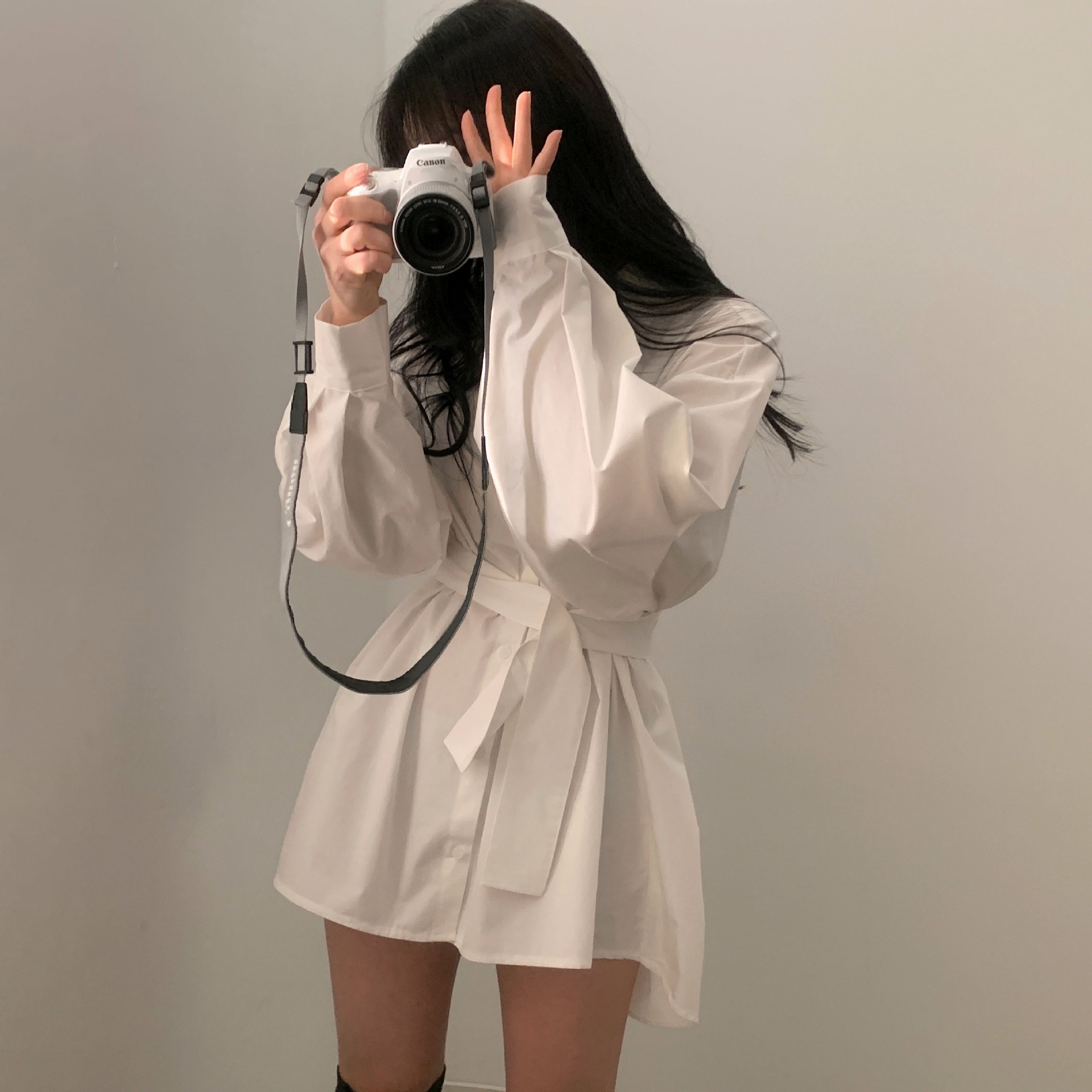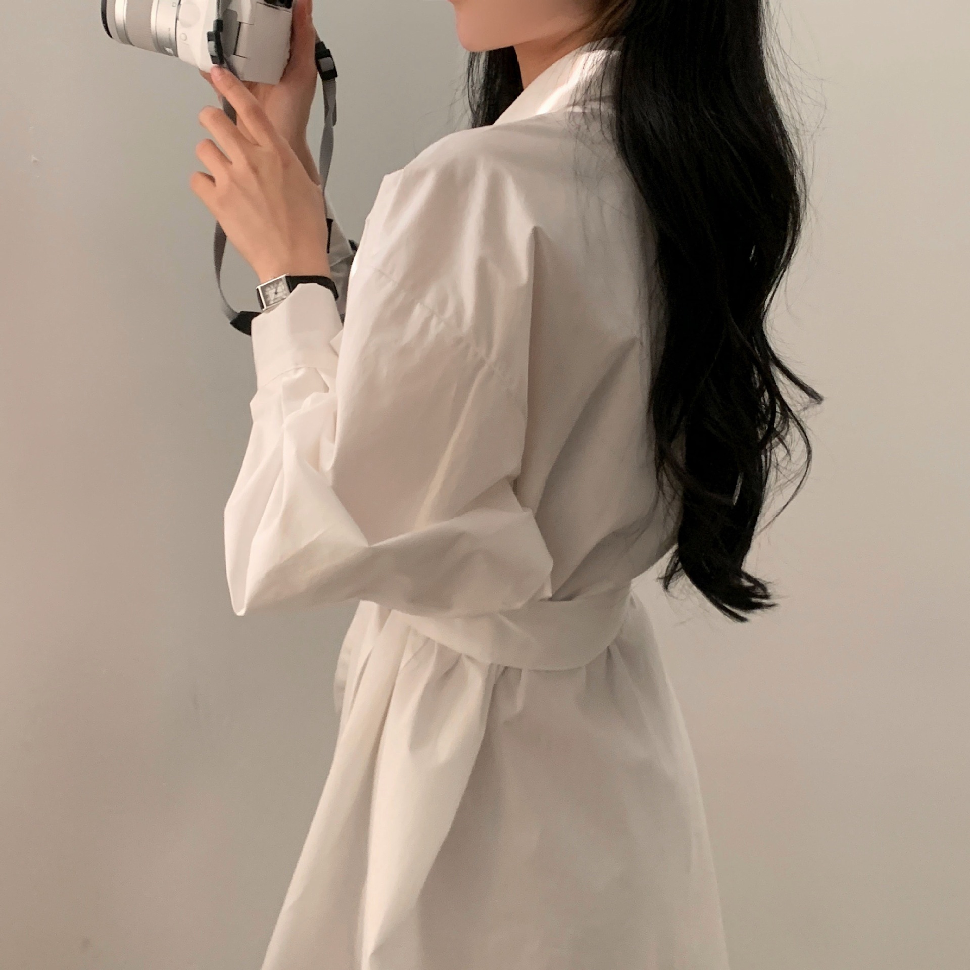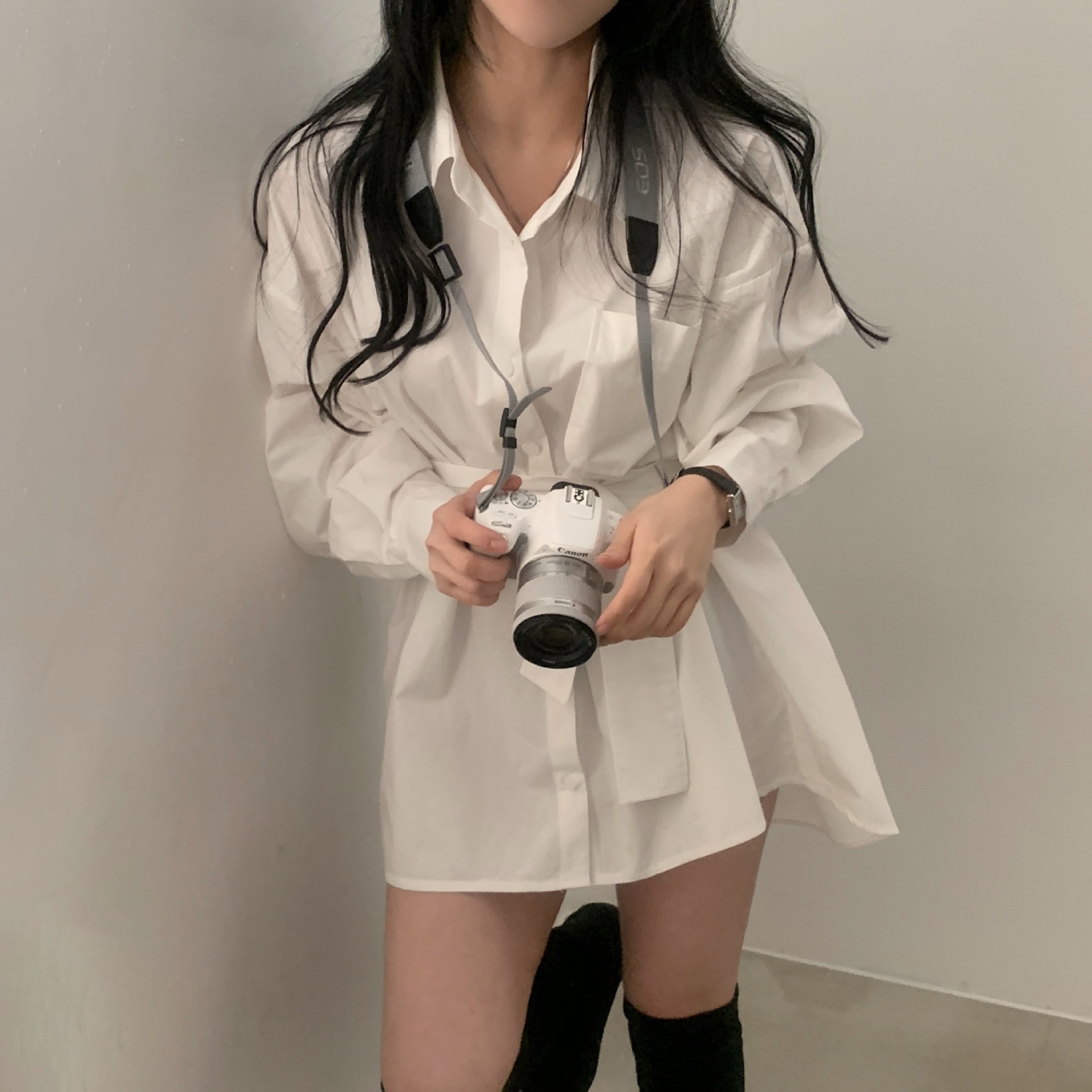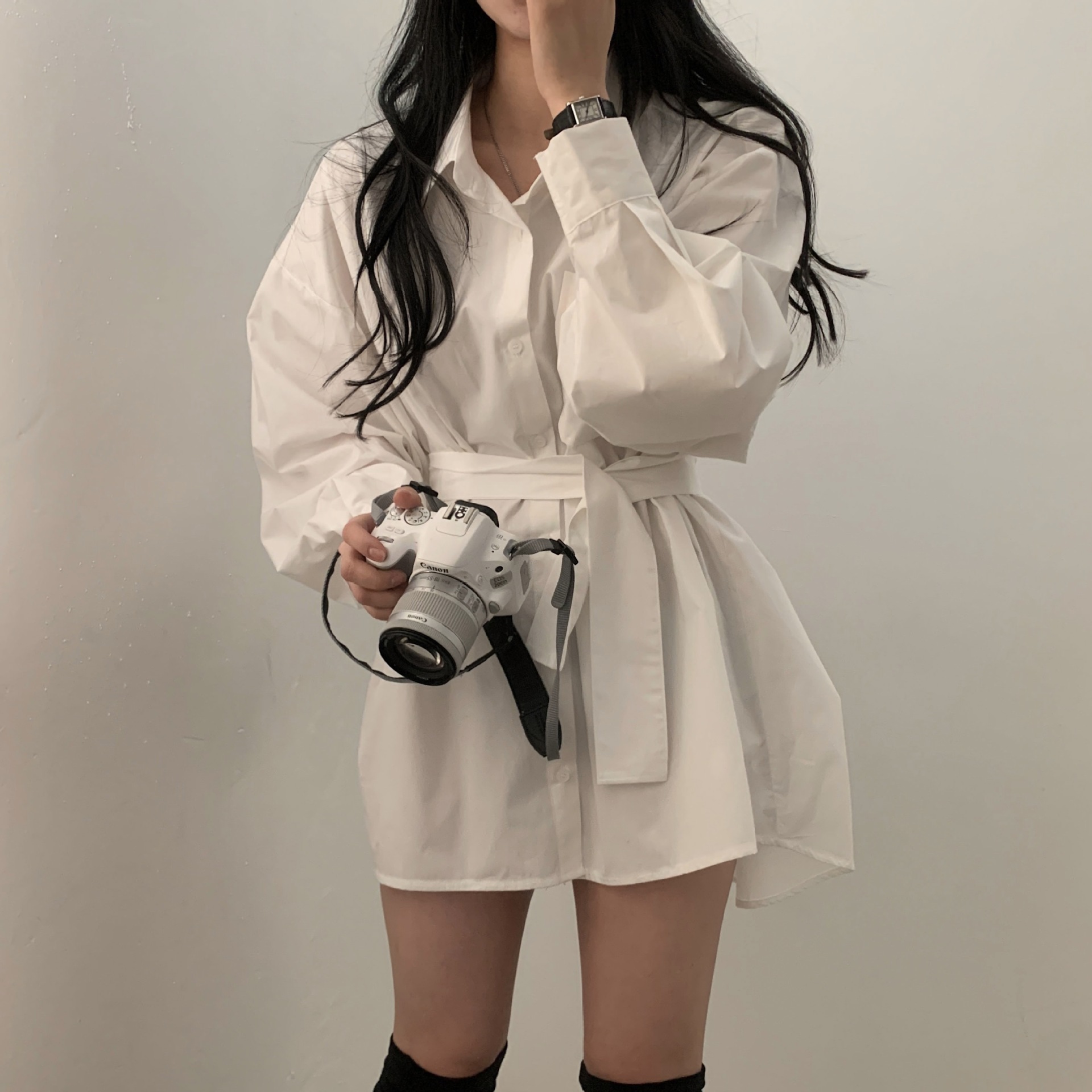 2024 봄 여름 신상 단색 루즈핏 셔츠 원피스 이너웨어 겸용 긴팔 여성 셔츠 원피스스토어 가기