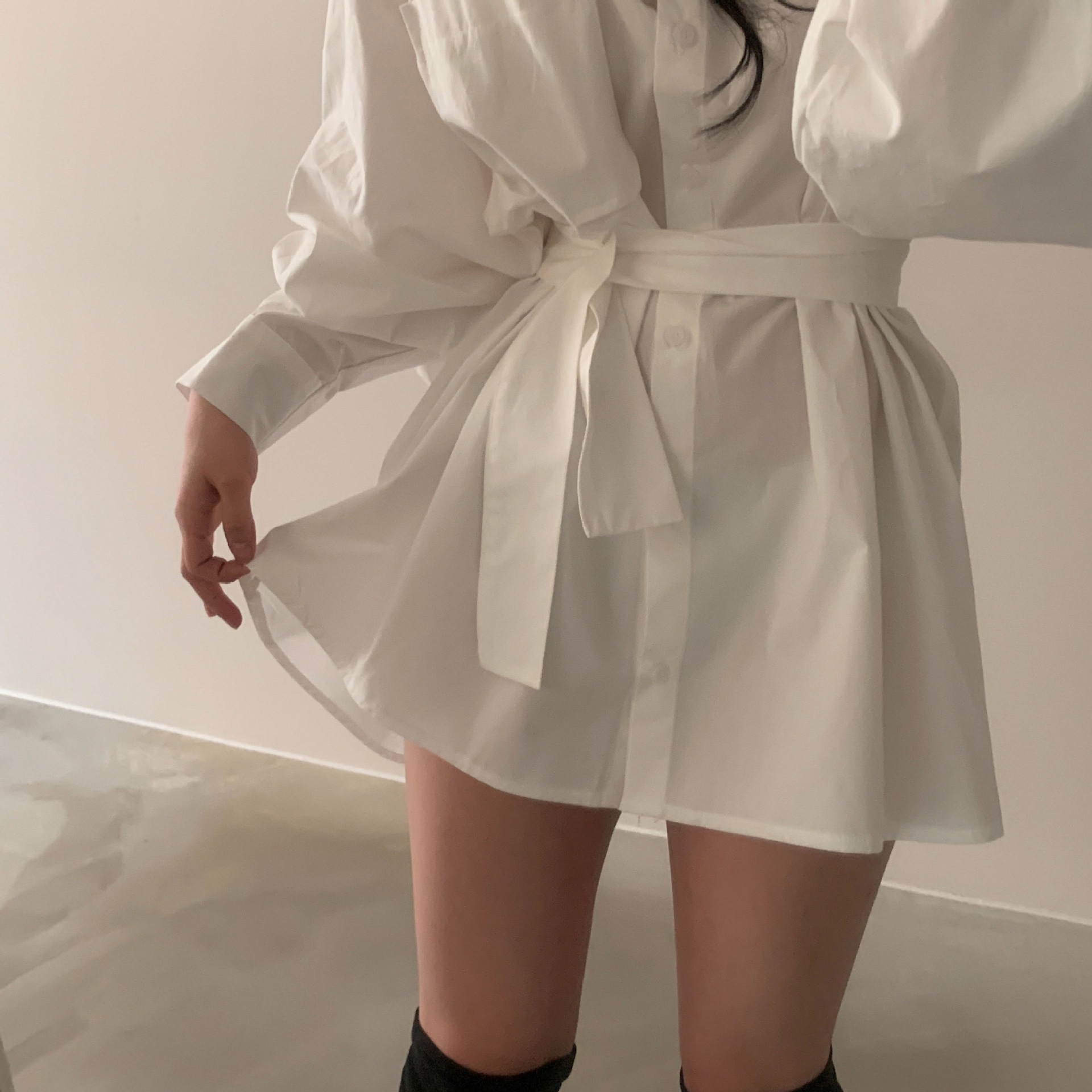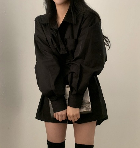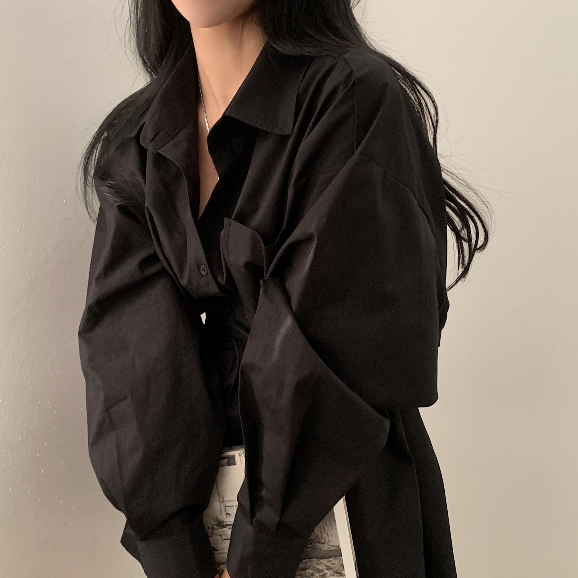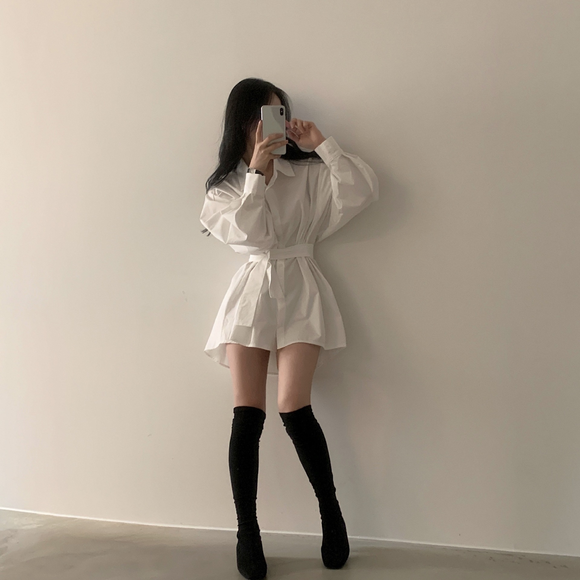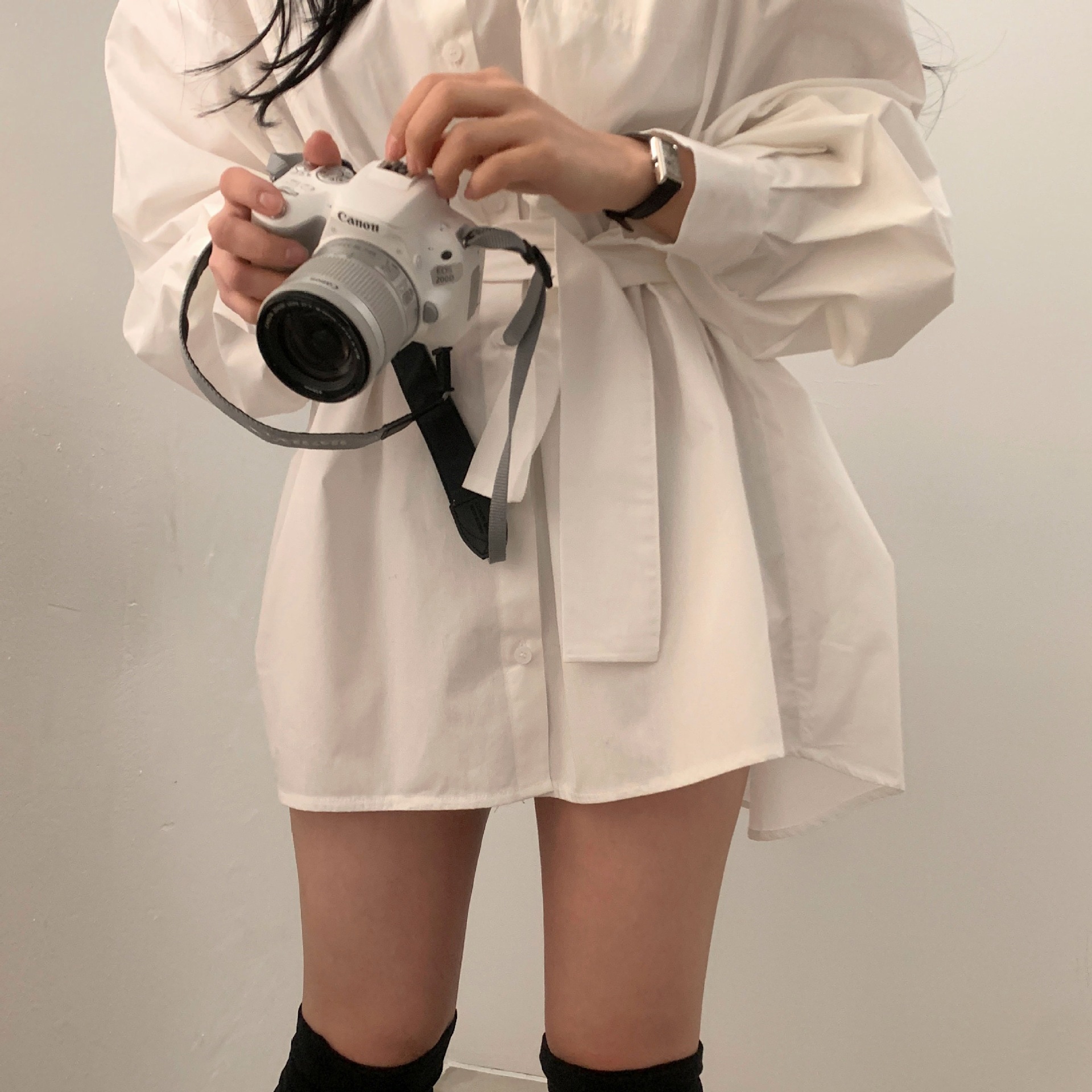 2024 봄 여름 신상 단색 루즈핏 셔츠 원피스 이너웨어 겸용 긴팔 여성 셔츠 원피스스토어 가기