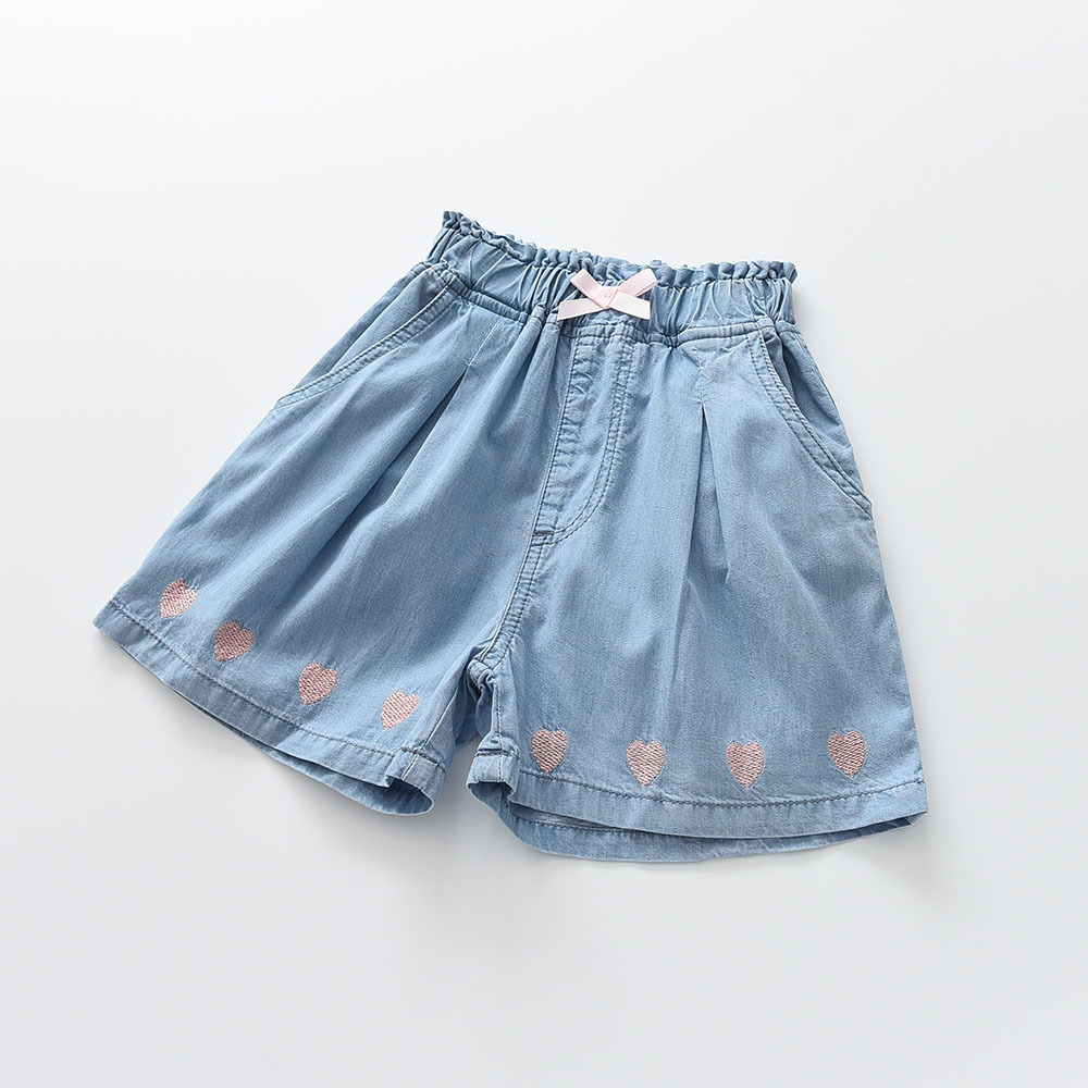 2025夏季新款 樱桃绣花 女童蝴蝶结装饰纯棉牛仔短裤