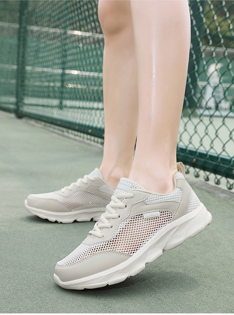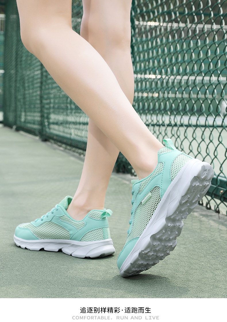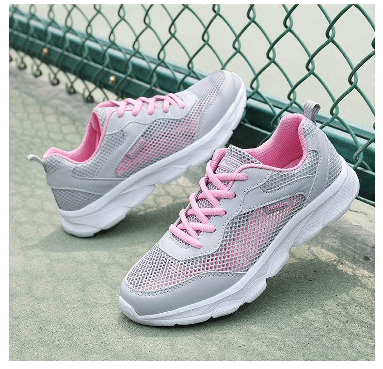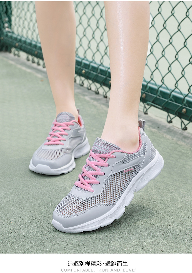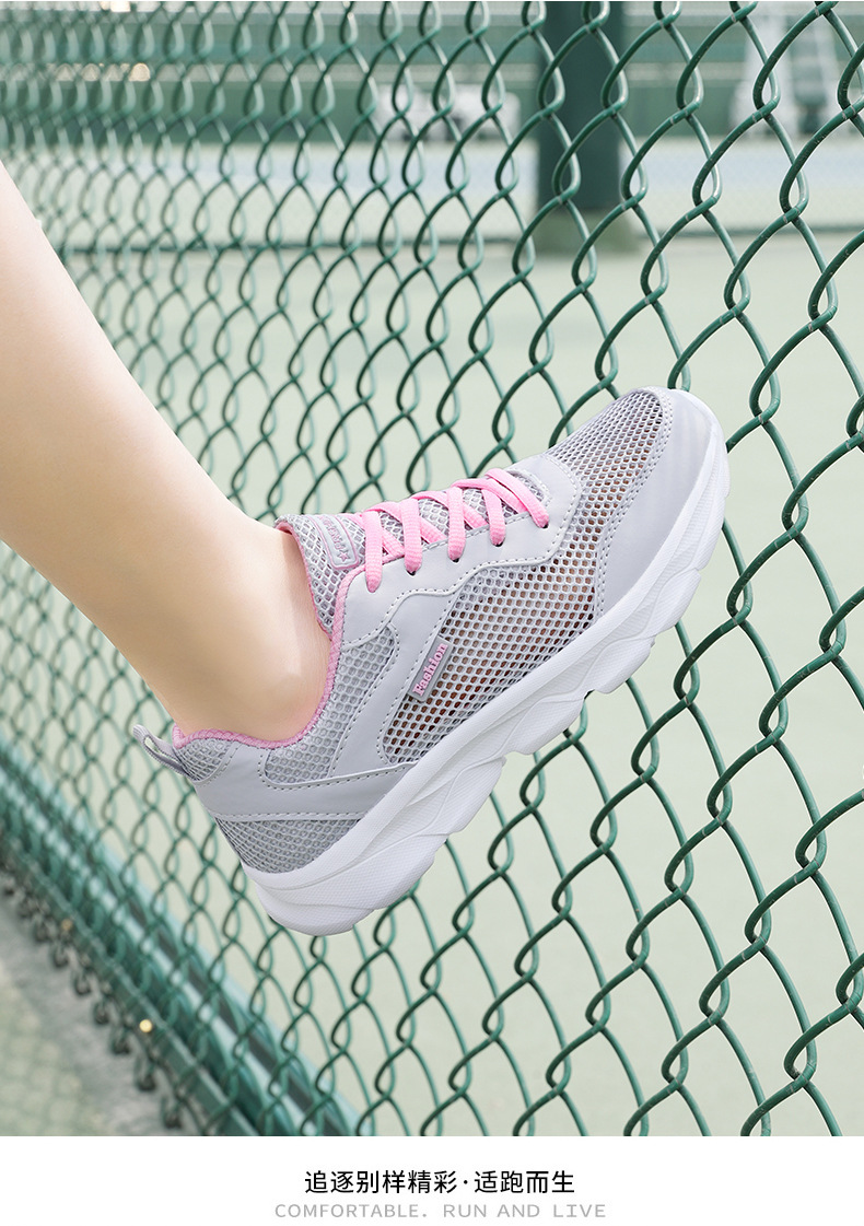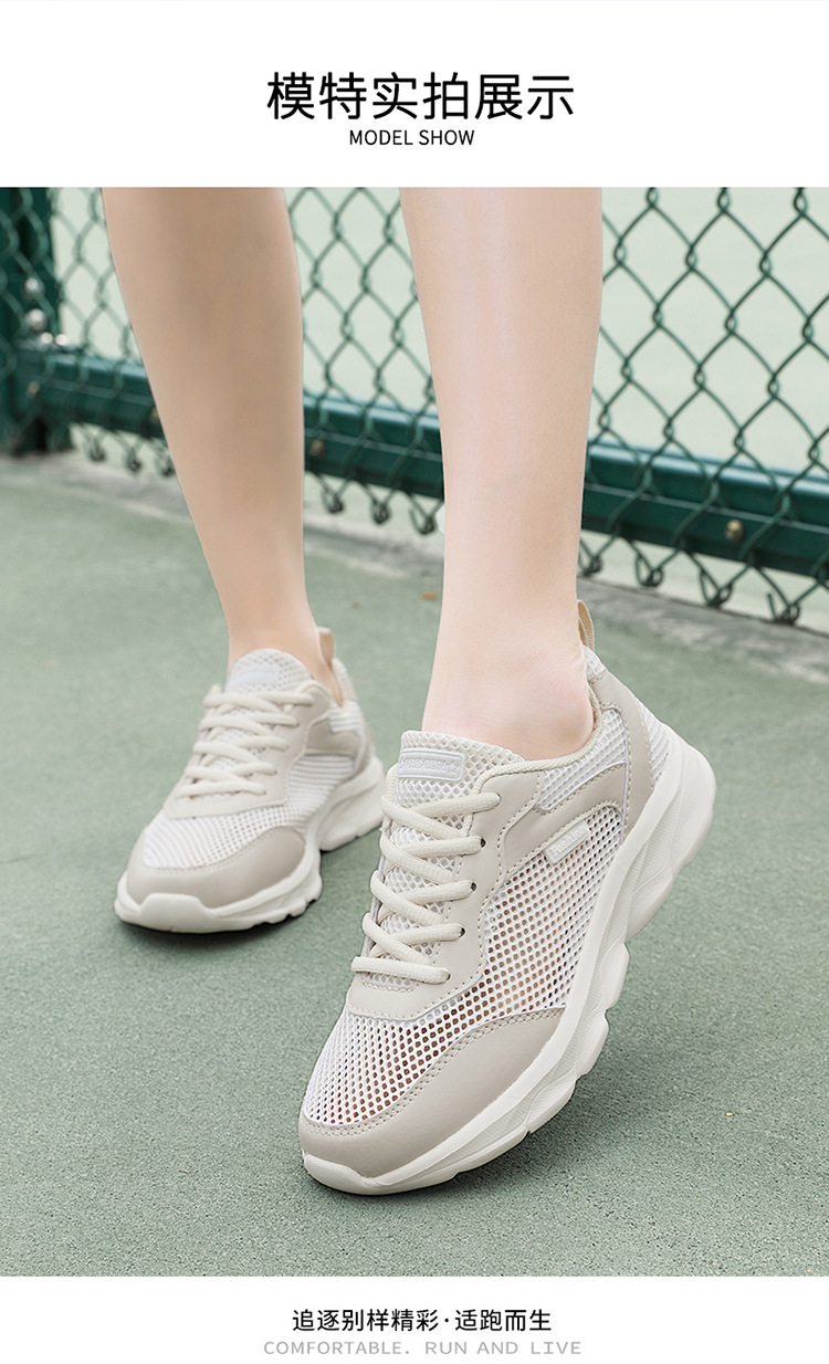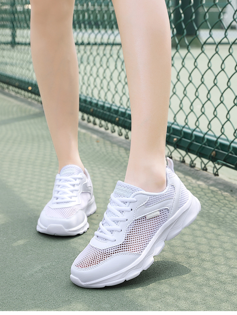 2023 새로운 여름 운동화 대형 그물 중공 여성 캐주얼 신발 한국 스타일 레이스업 경량 미끄럼 방지 모든 경기 여성 신발