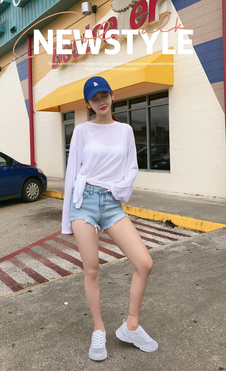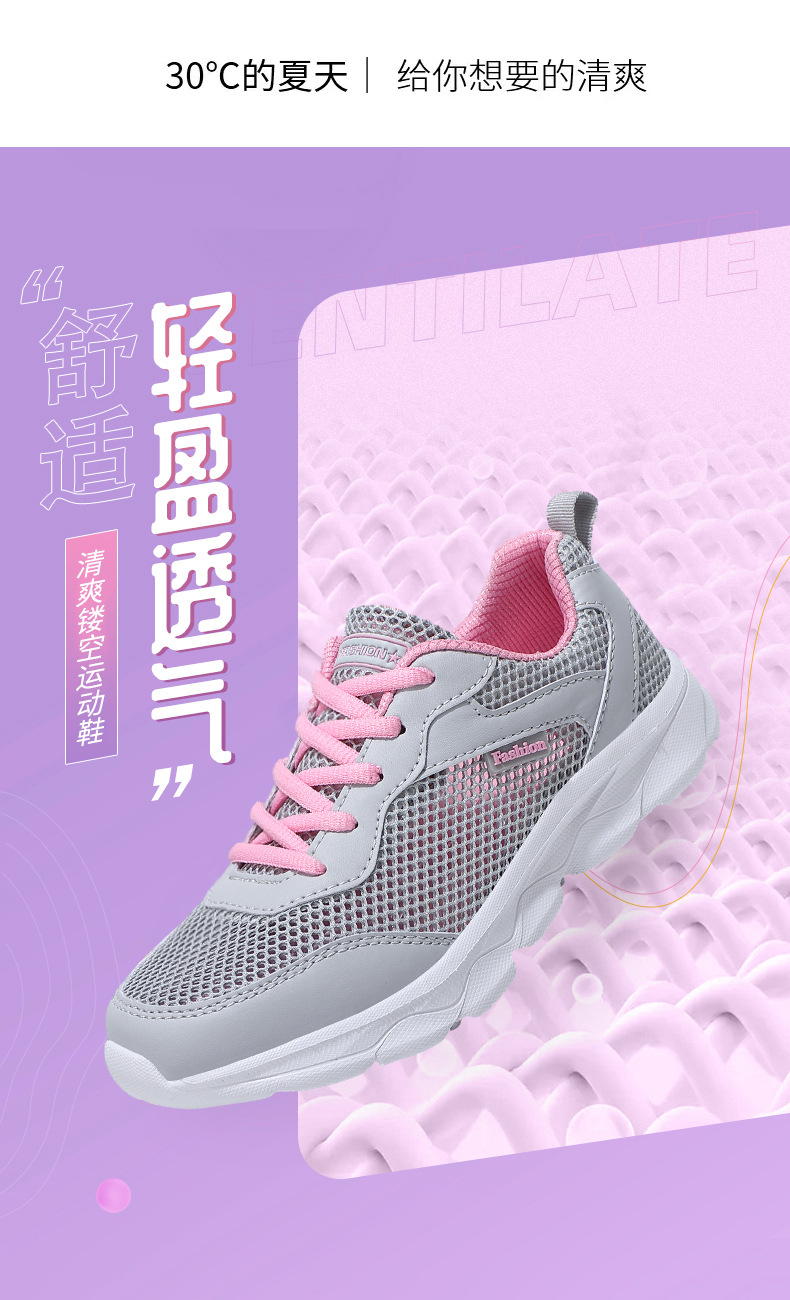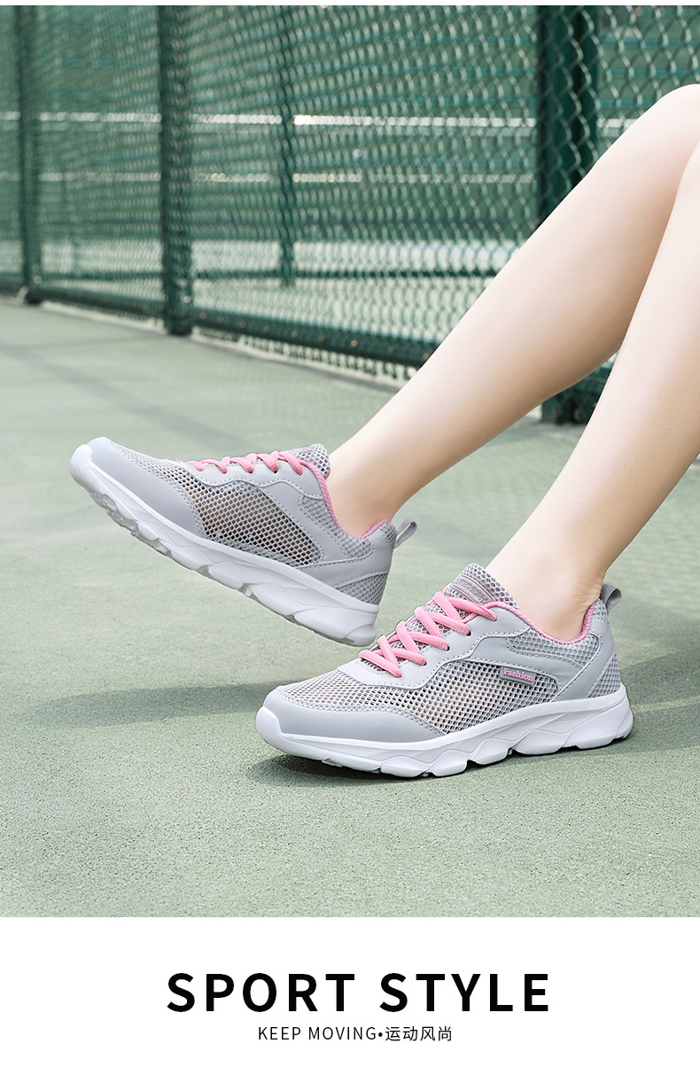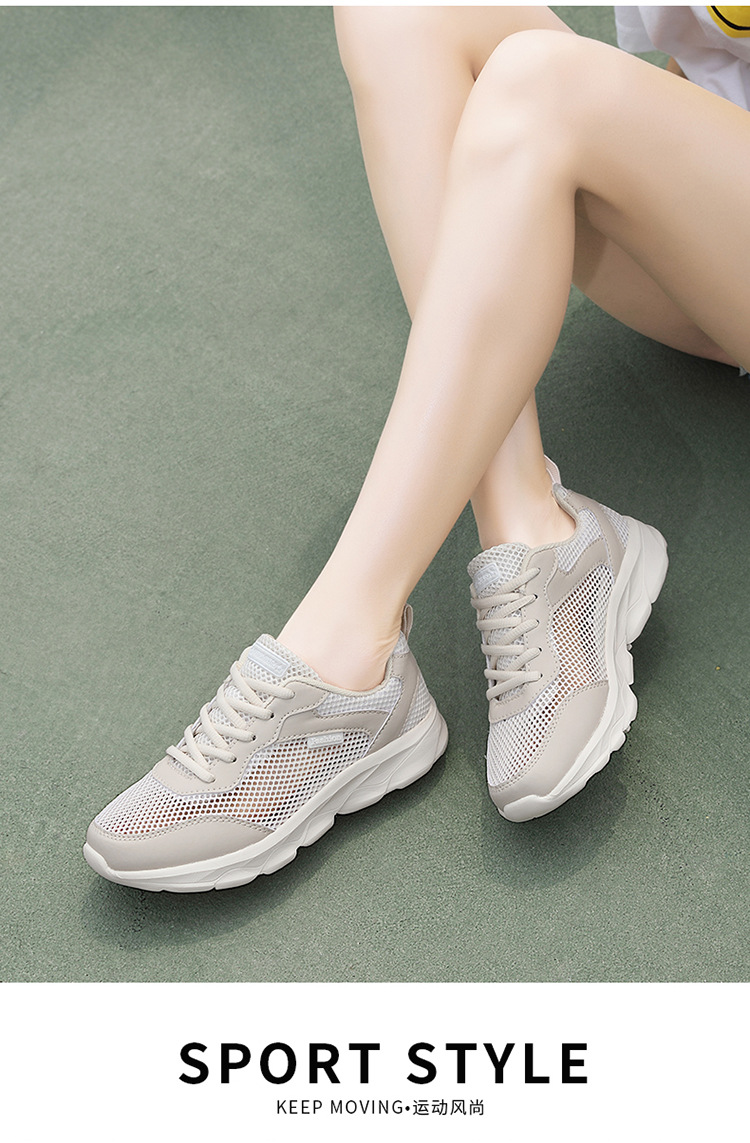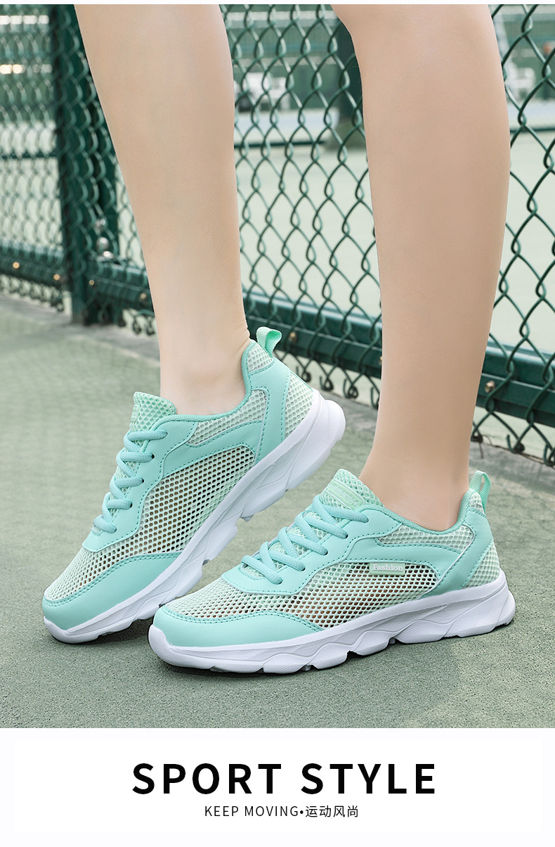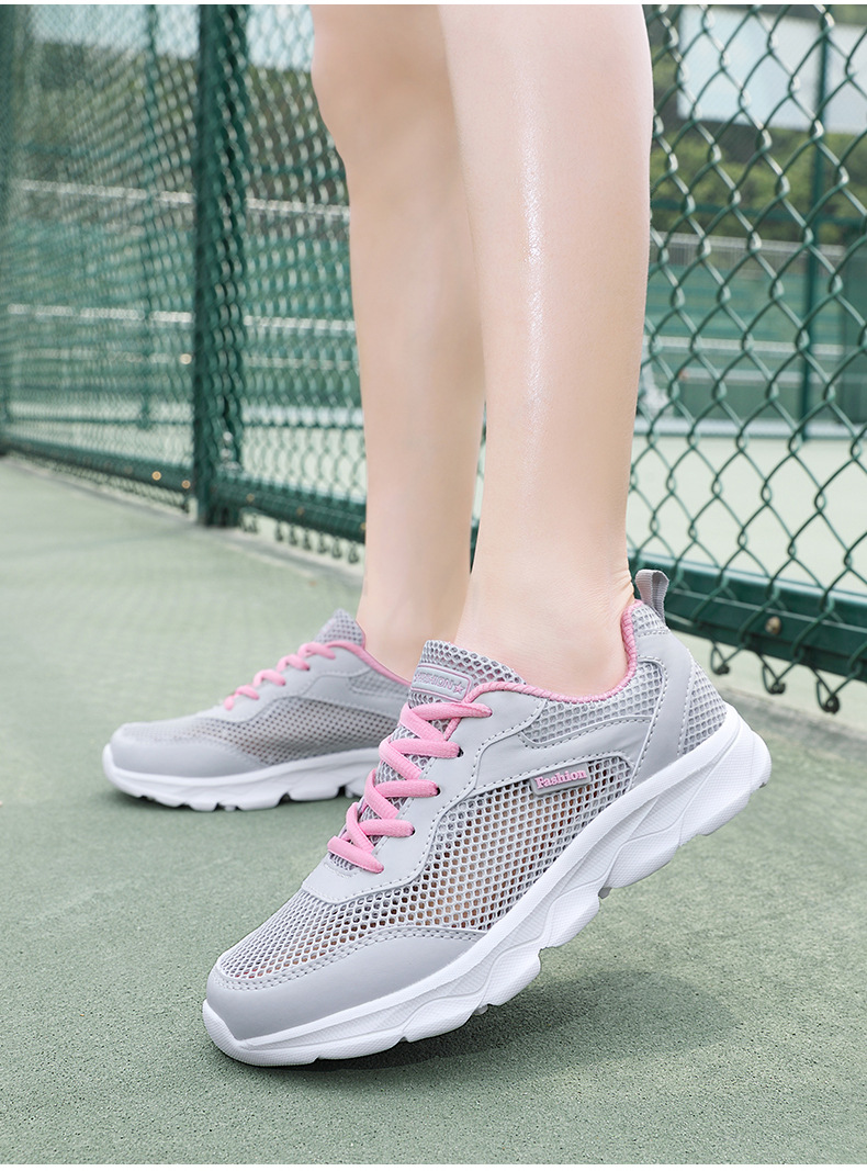 2023 새로운 여름 운동화 대형 그물 중공 여성 캐주얼 신발 한국 스타일 레이스업 경량 미끄럼 방지 모든 경기 여성 신발스토어 가기