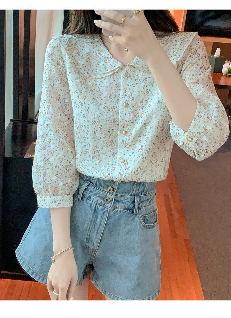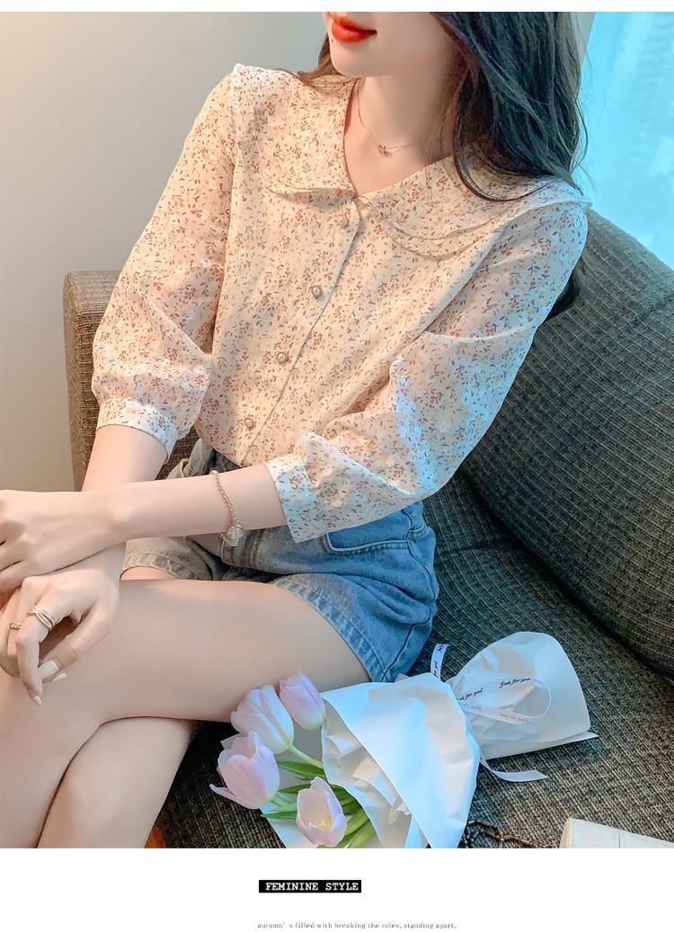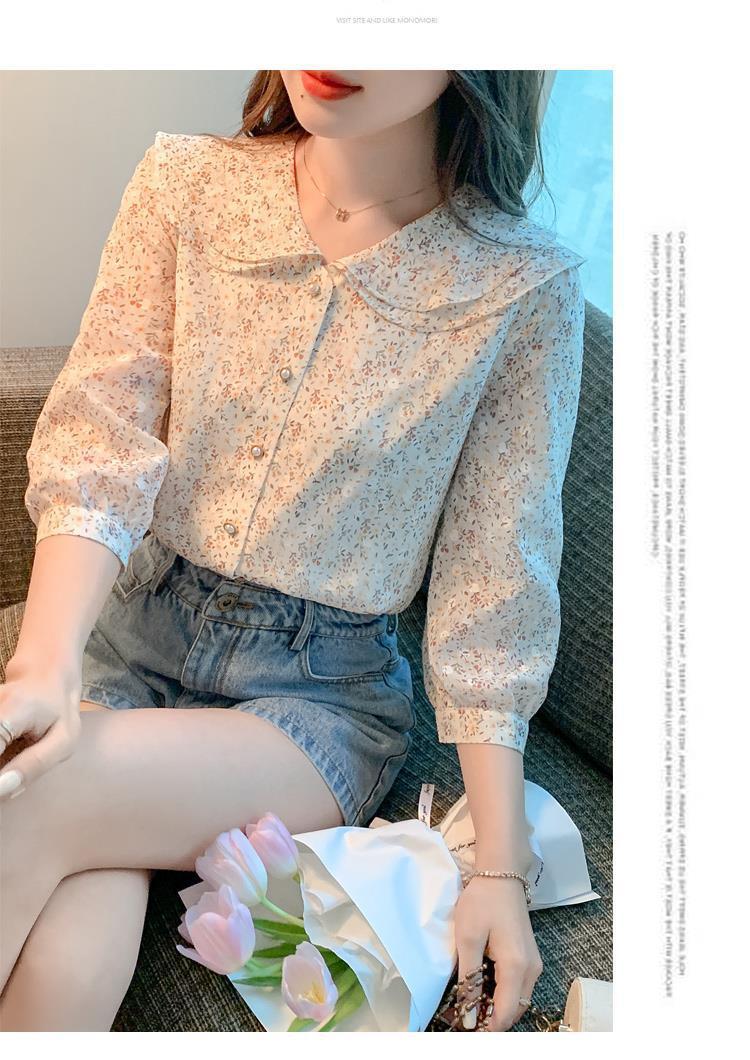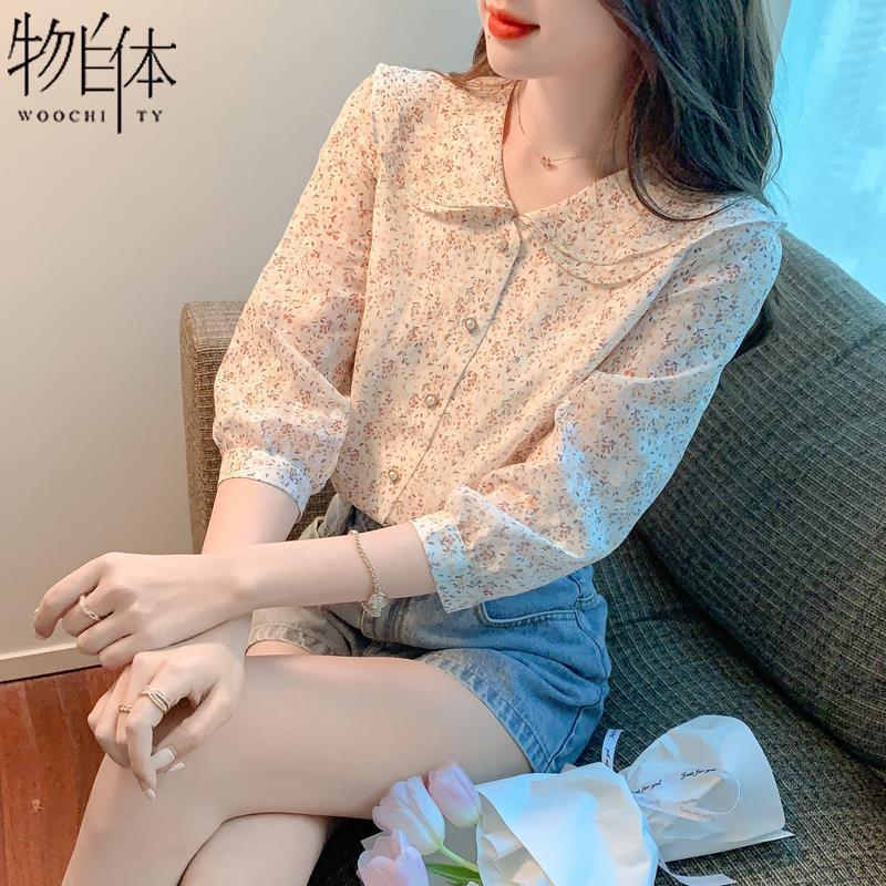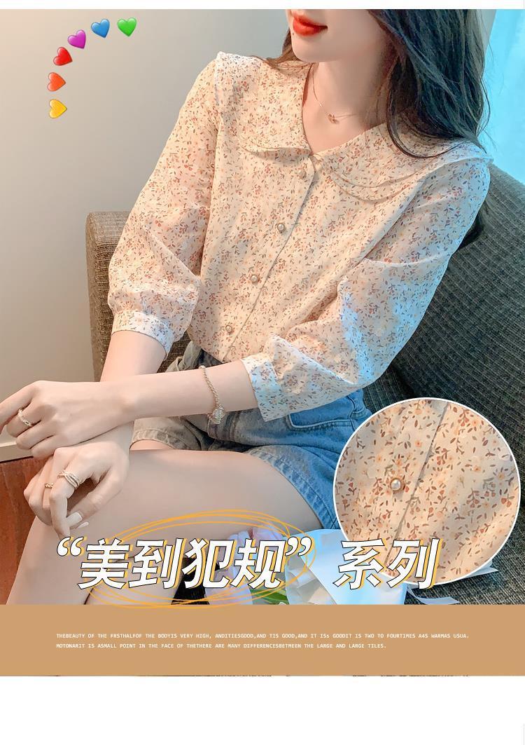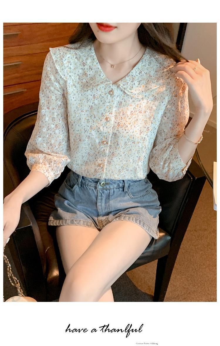 반팔 시크한 예쁜 쉬폰 셔츠 여성 여름 2023 새로운 패션 하이 엔드 센스 7 소매 플로럴 탑