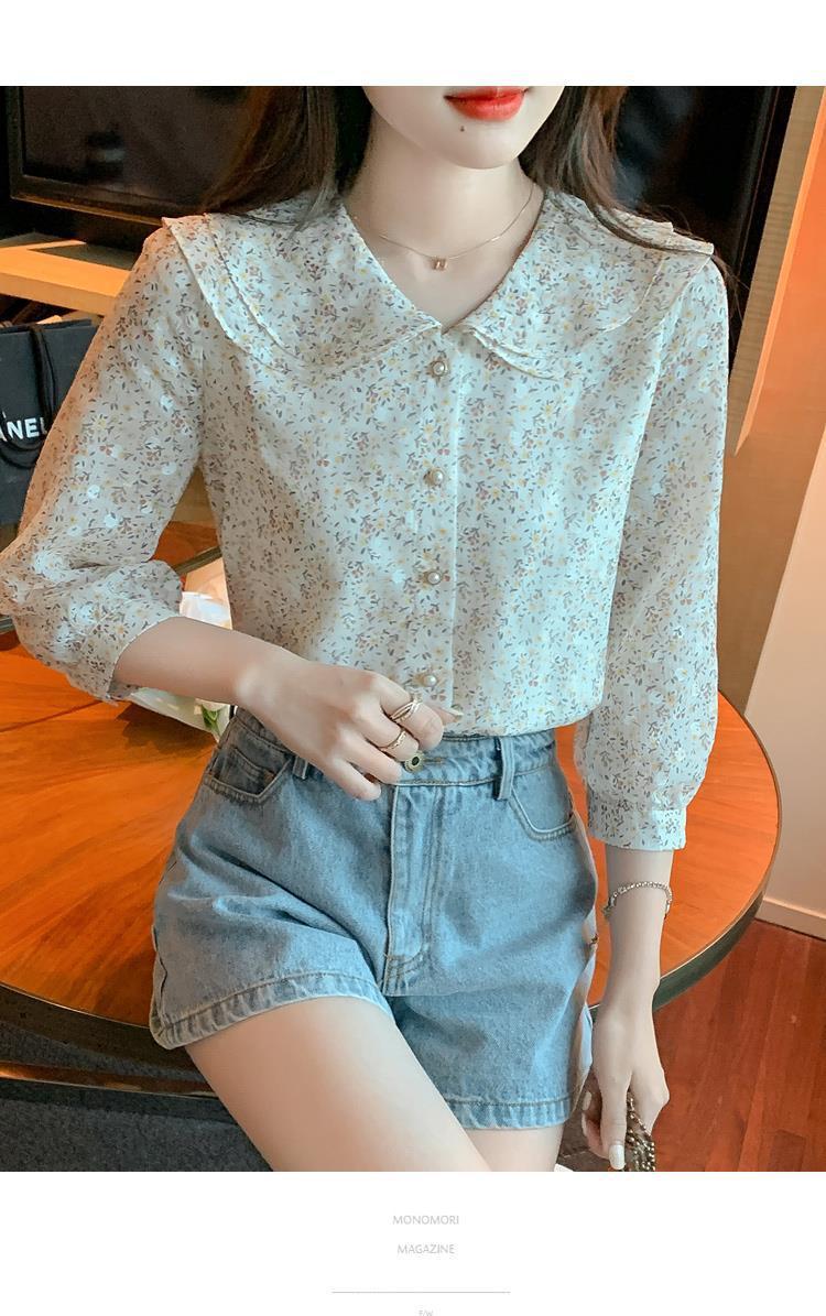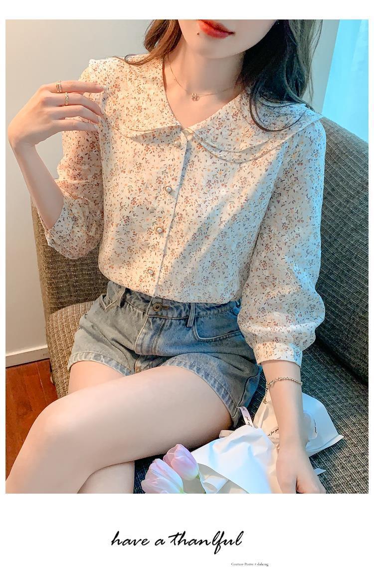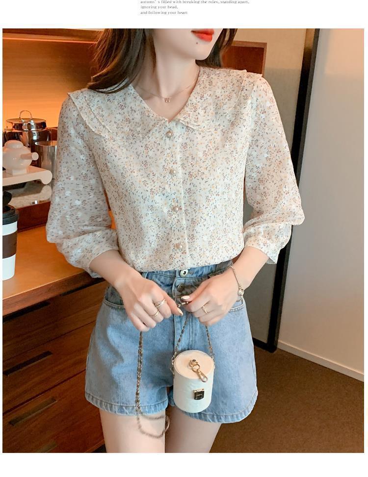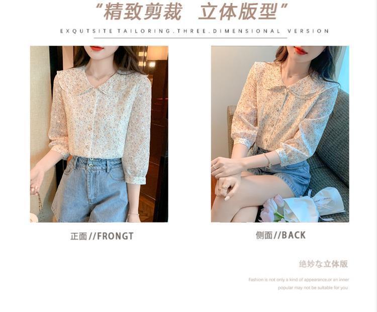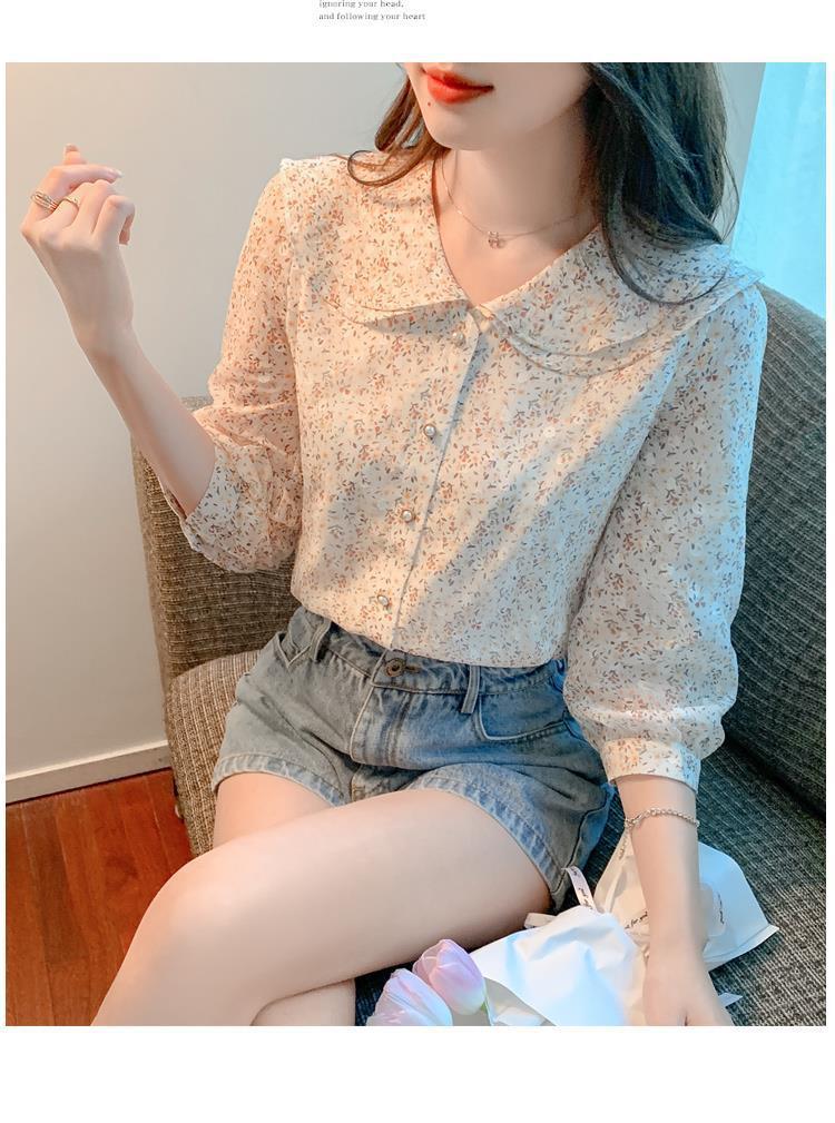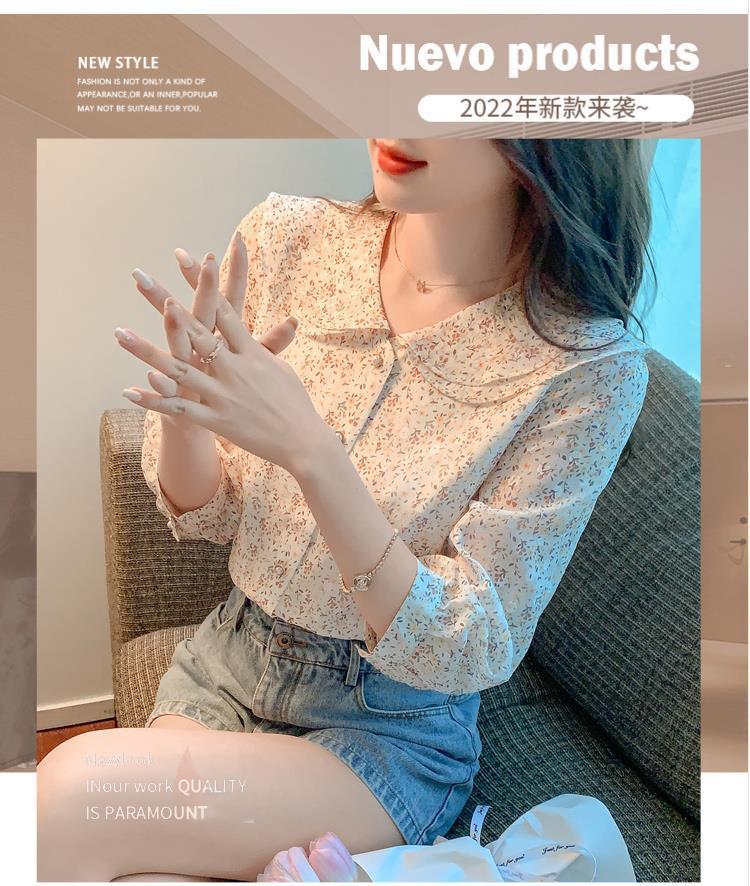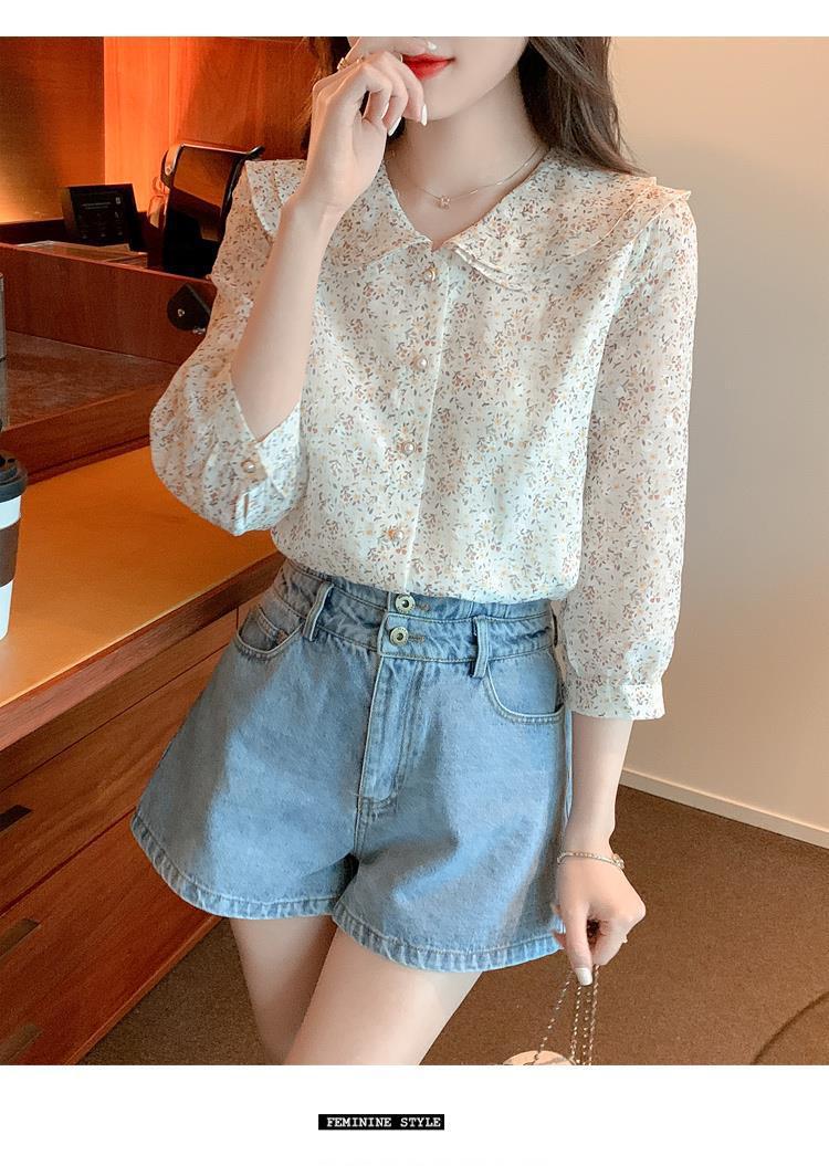 반팔 시크한 예쁜 쉬폰 셔츠 여성 여름 2023 새로운 패션 하이 엔드 센스 7 소매 플로럴 탑