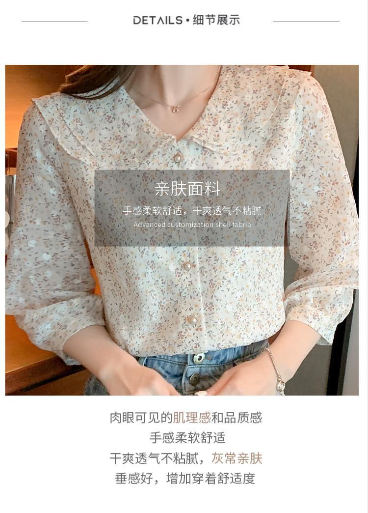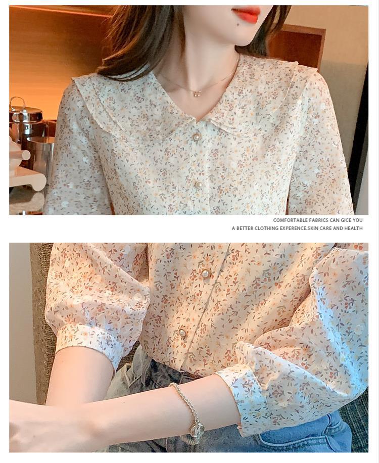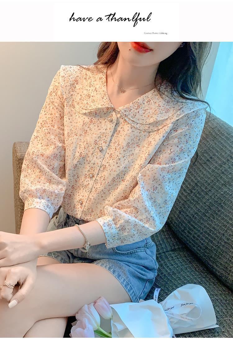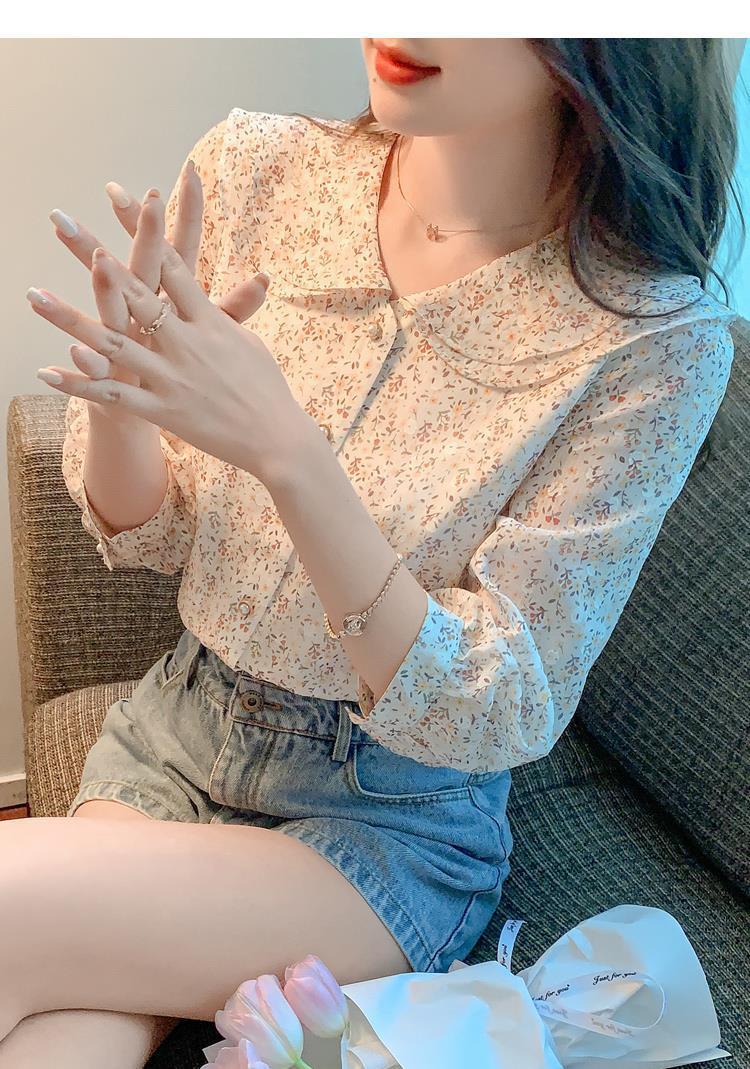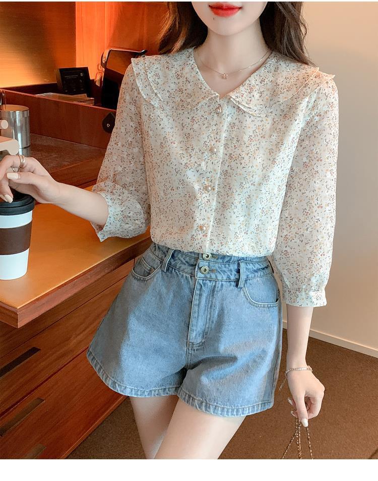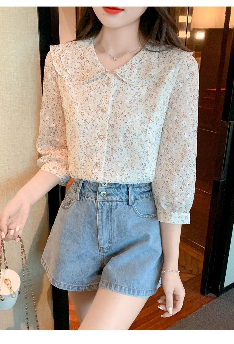 반팔 시크한 예쁜 쉬폰 셔츠 여성 여름 2023 새로운 패션 하이 엔드 센스 7 소매 플로럴 탑