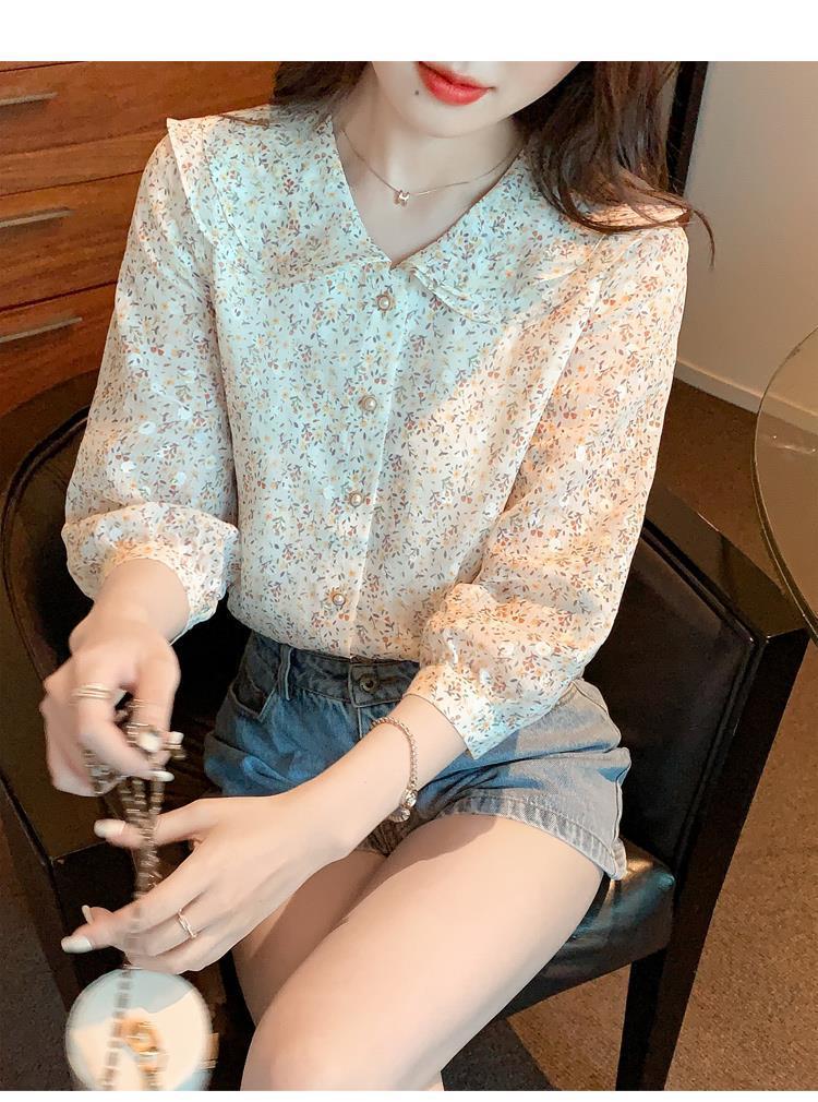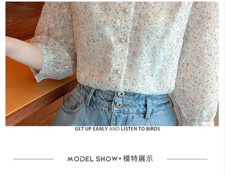 반팔 시크한 예쁜 쉬폰 셔츠 여성 여름 2023 새로운 패션 하이 엔드 센스 7 소매 플로럴 탑스토어 가기