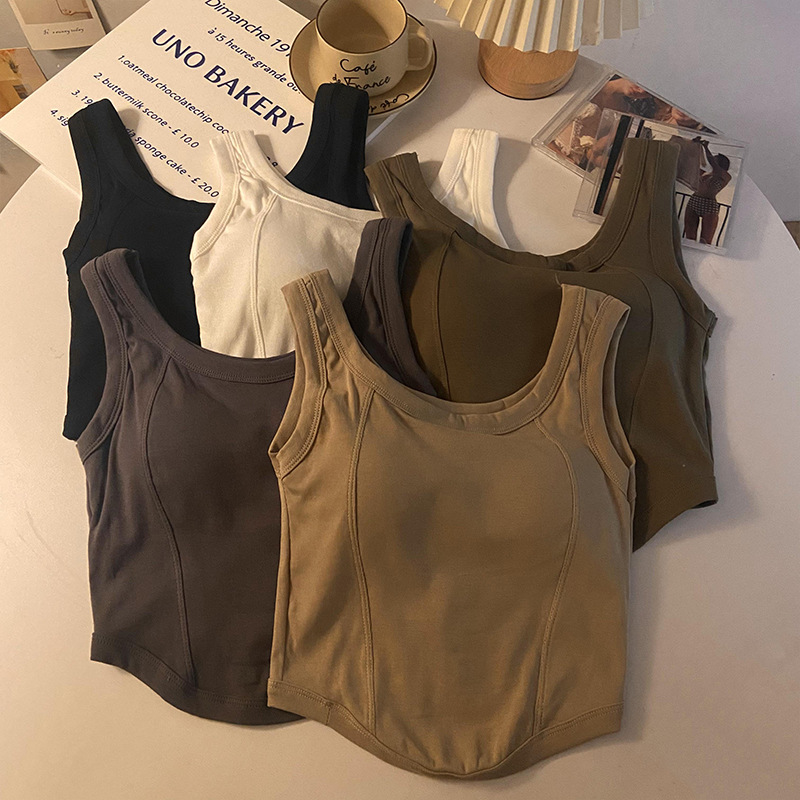 Fenna Furi 새로운 스타일 디자인 센스 모든 매치 캐미솔 여성용 이너웨어 가슴 패드 마모 프리 속옷 아우터 웨어 베이스스토어 가기