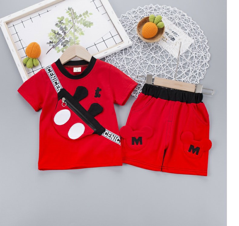 아기 옷 아기 소년 여름 반팔 분할 세트 1-3 세 만화 잘 생긴 순면 티셔츠 한국 스타일 어린이 패션