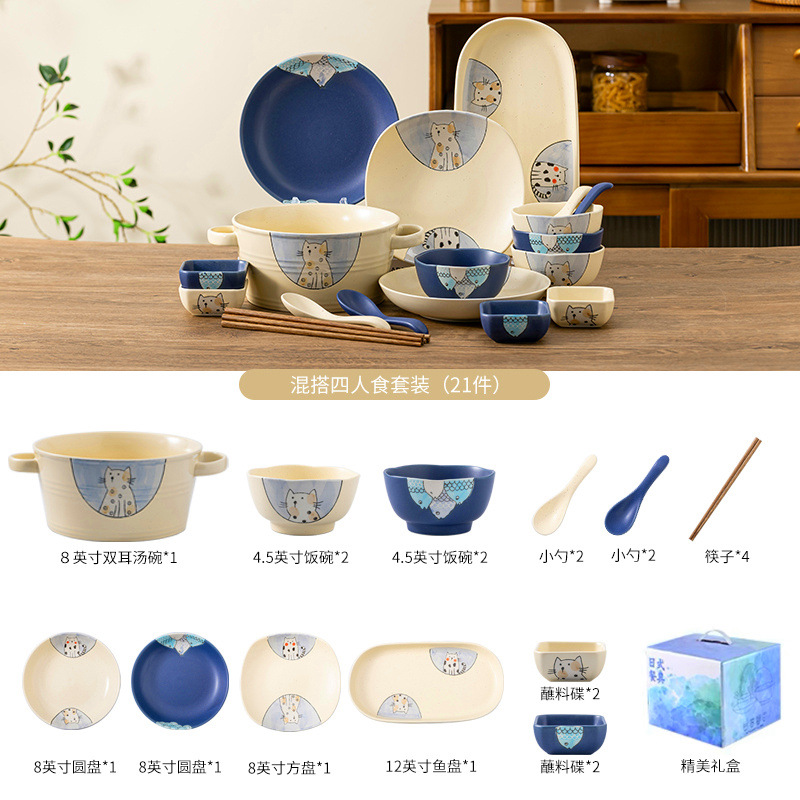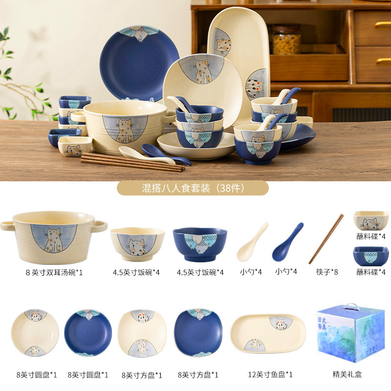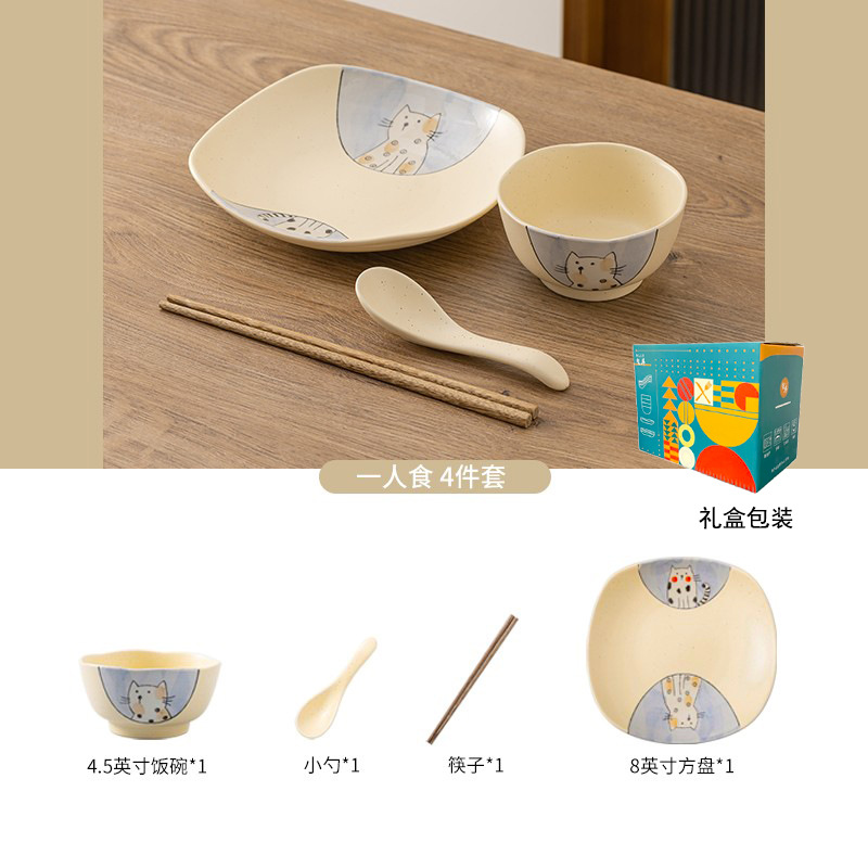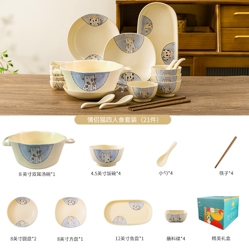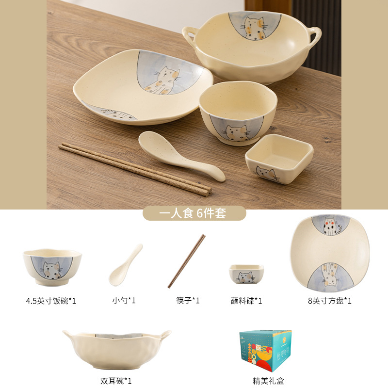 귀여운 식기 요리 세트 가정용 일본식 만화 세라믹 요리 집들이 요리 창조적 인 커플 그릇 젓가락 2 인용스토어 가기
