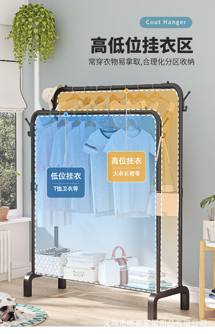 바닥에 서있는 옷 걸이 옷가게 기숙사 침실 옷 걸이 실내 옷 건조 랙 이동식 다기능 코트 랙스토어 가기