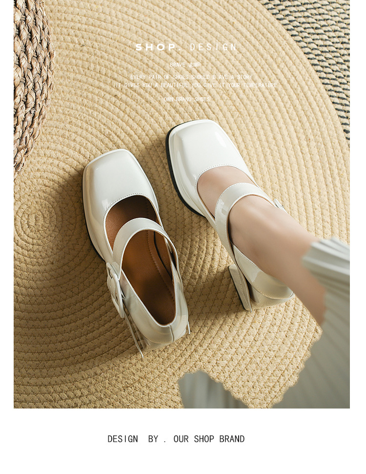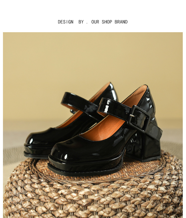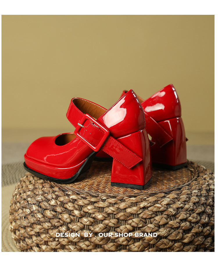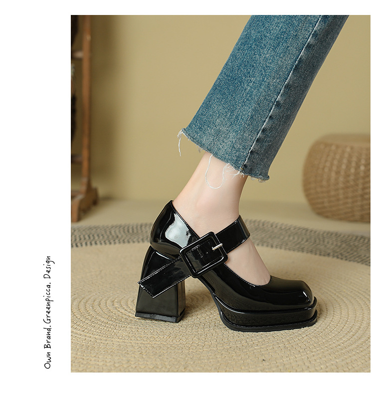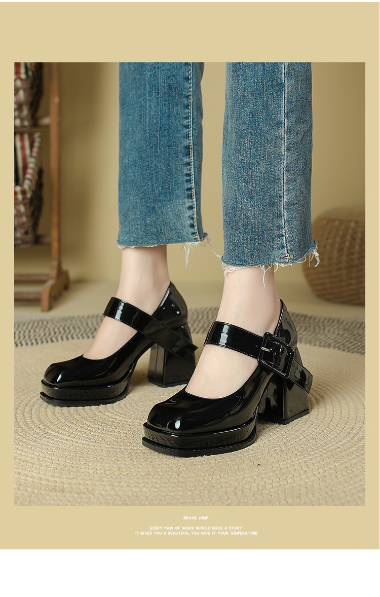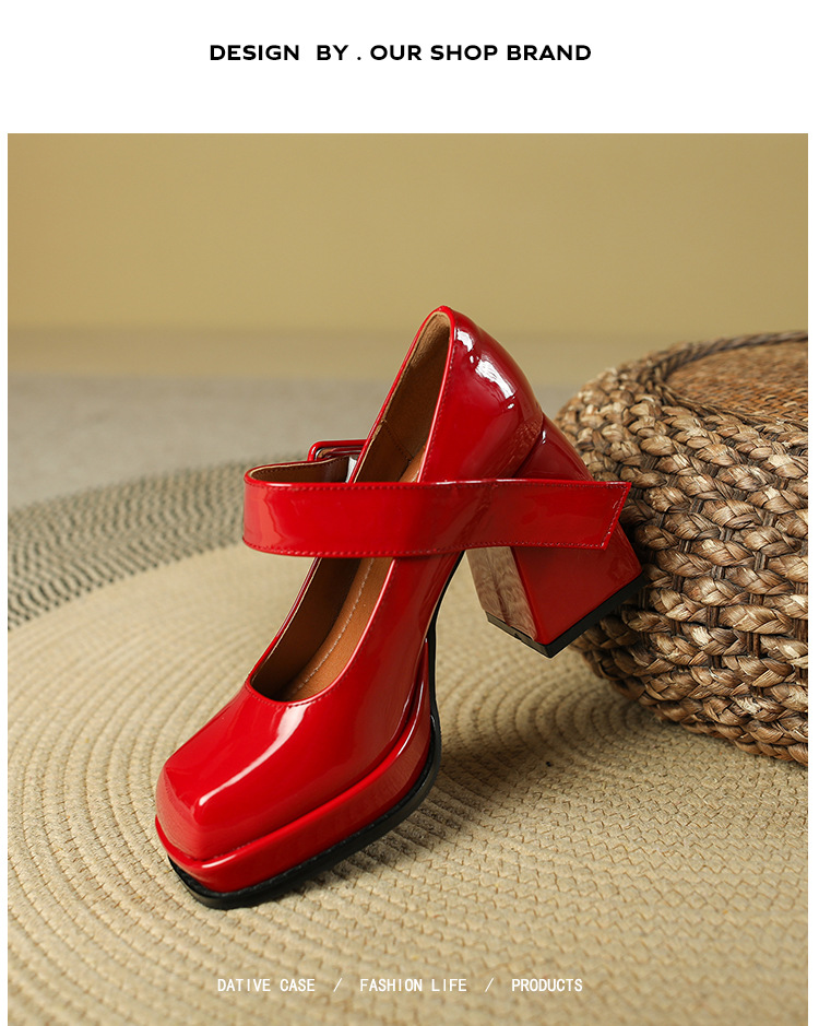 프랑스 스타일 메리 제인 하이힐 여성용 짧은 2023 이른 봄 빈티지 스퀘어 토 여성 신발 방수 플랫폼 청키 힐 여성용 싱글 레이어 신발스토어 가기