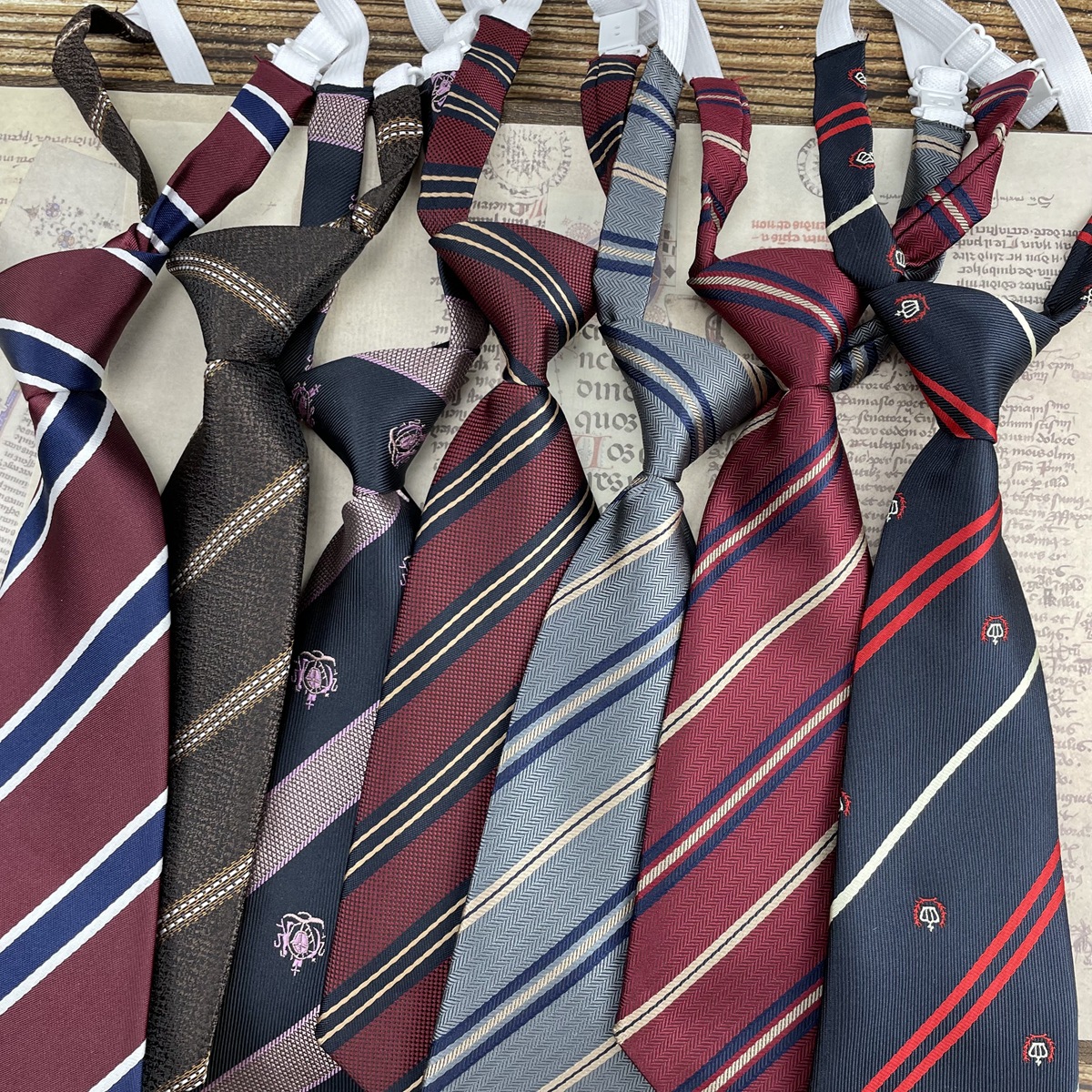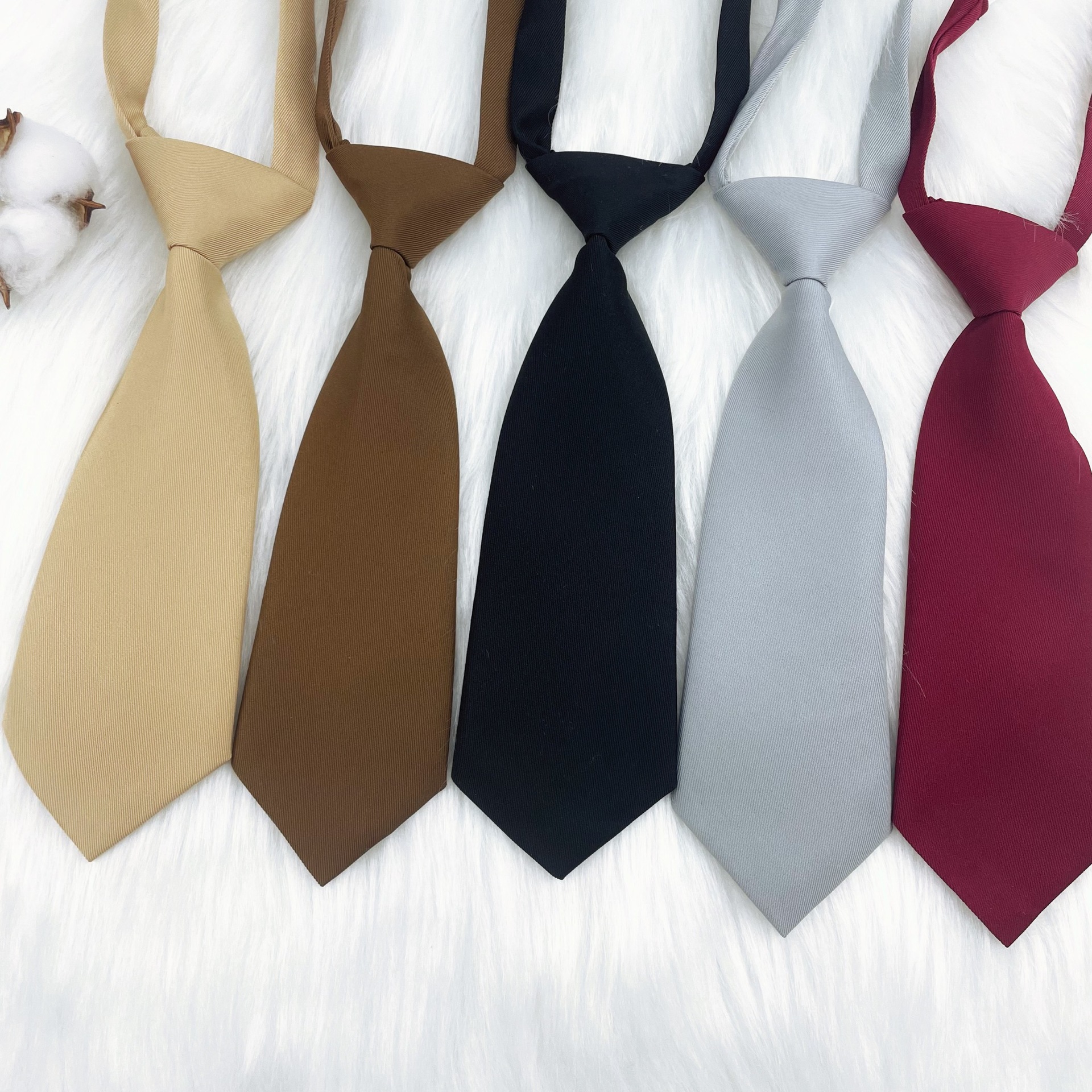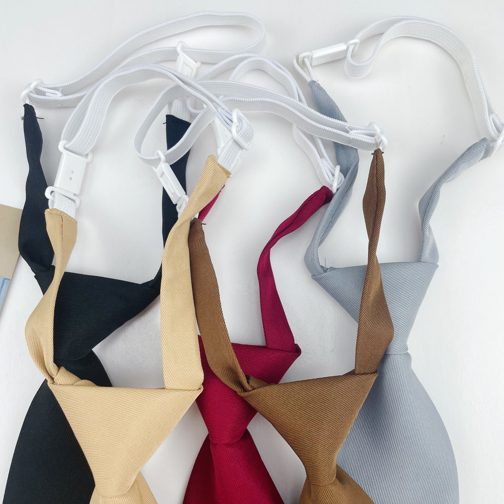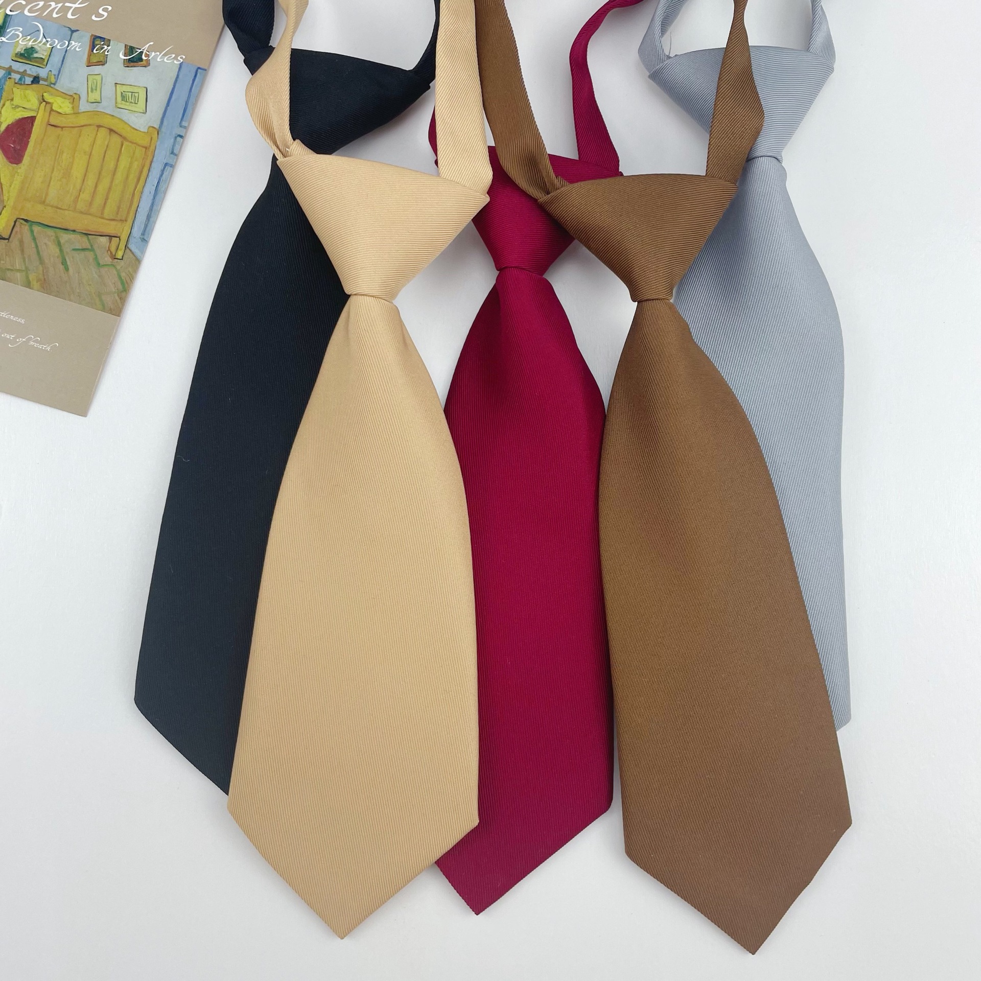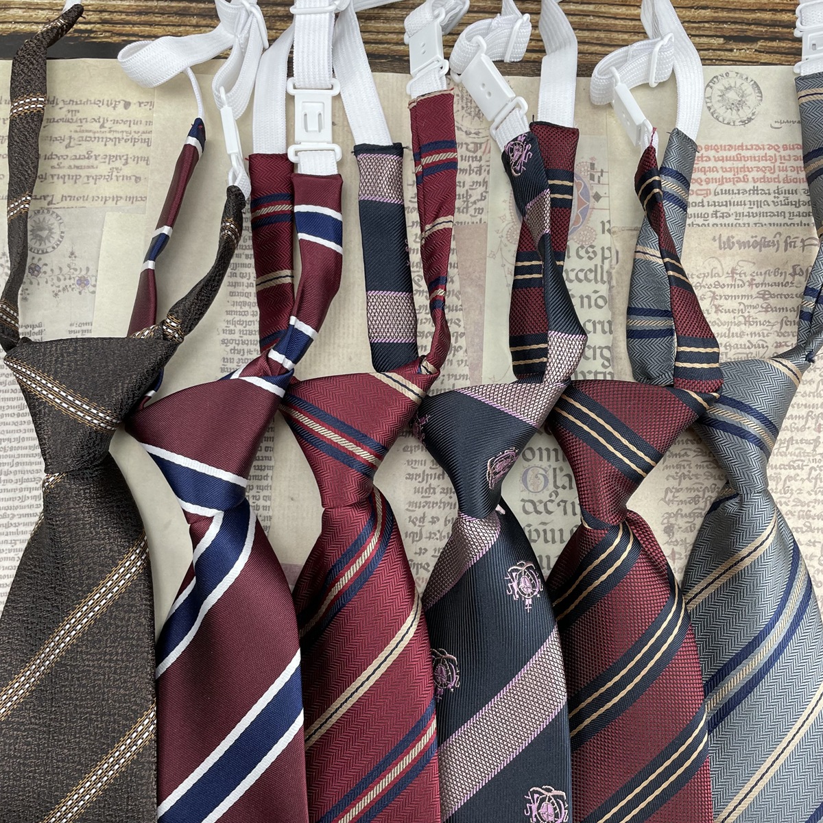 울트라 짧은 작은 넥타이 여자의 단색 게으른 귀여운 대학 스타일 노 타격 일본식 줄무늬 복고풍 다크 브라운 유치원 남자스토어 가기