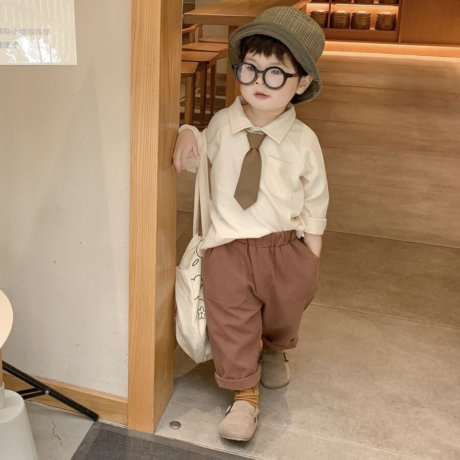 울트라 짧은 작은 넥타이 여자의 단색 게으른 귀여운 대학 스타일 노 타격 일본식 줄무늬 복고풍 다크 브라운 유치원 남자