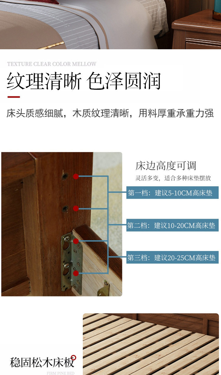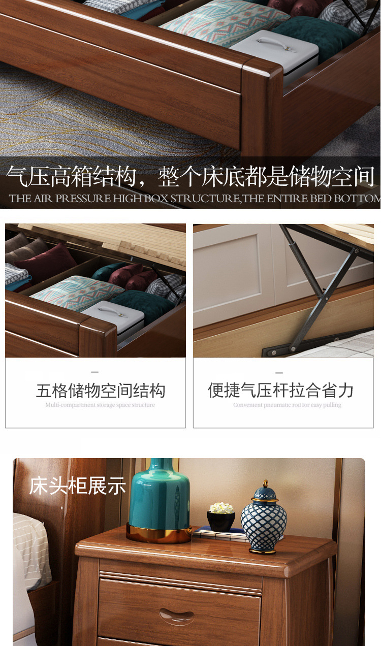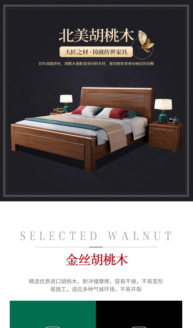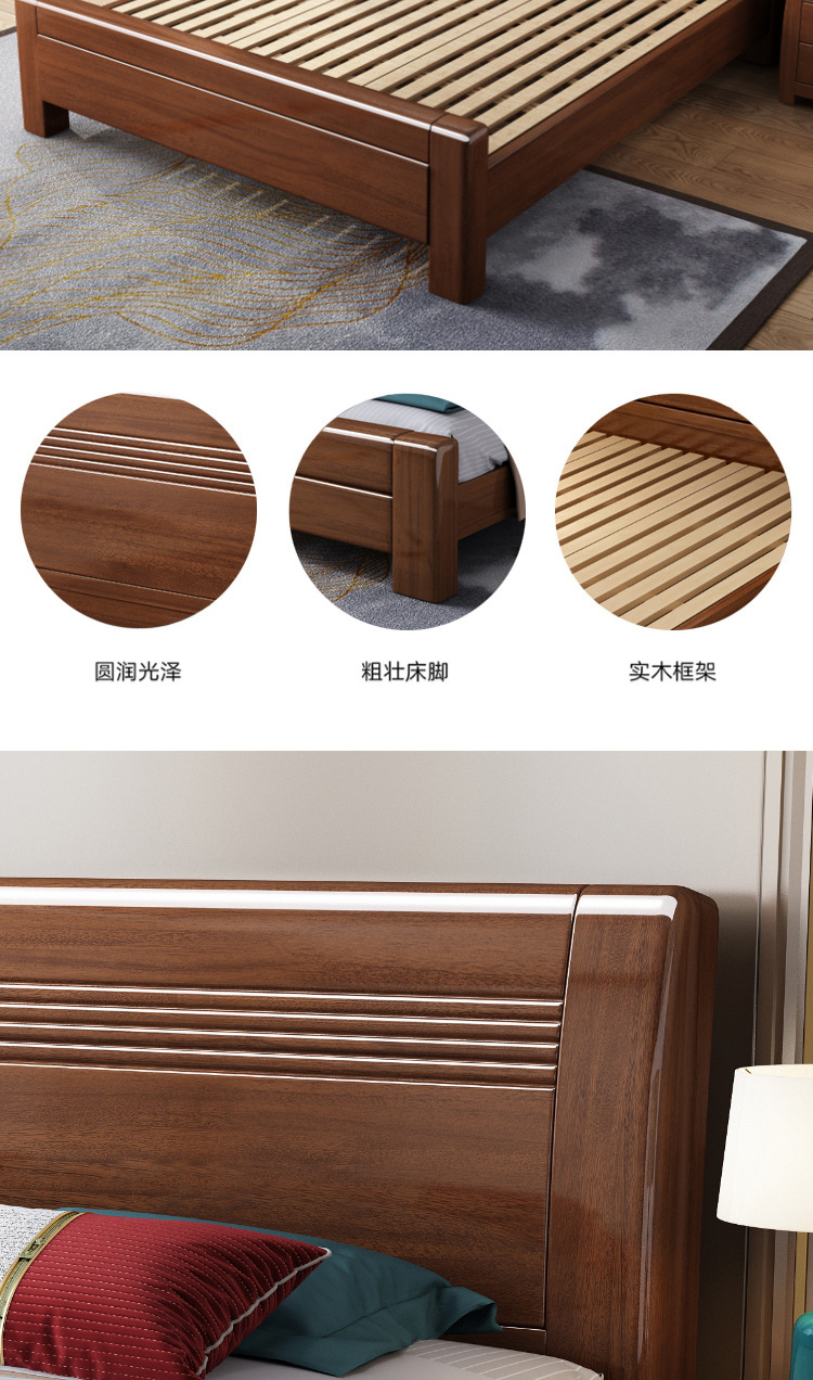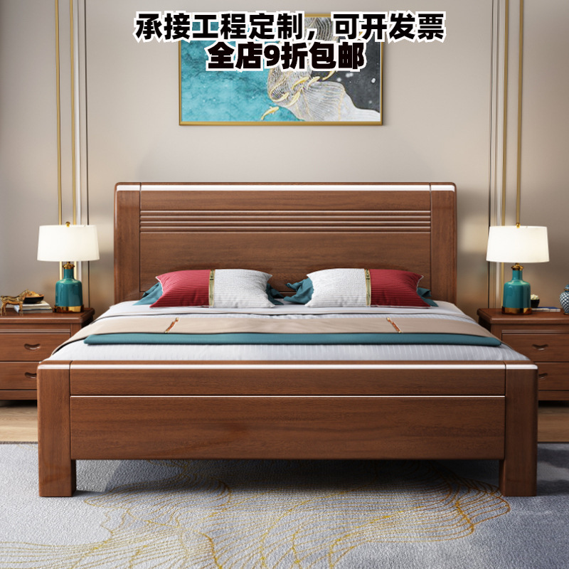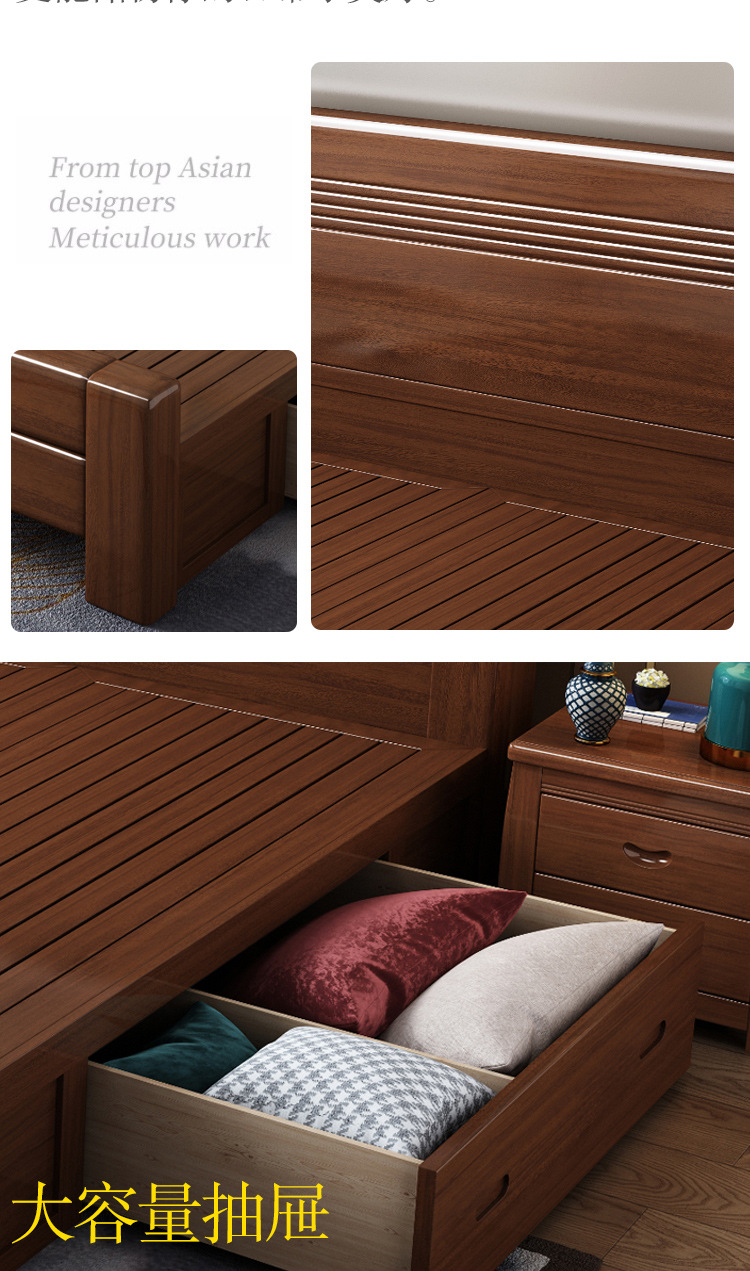 단단한 나무 침대 1.8 m 현대 간단한 마스터 침실 가정용 수납 침대 1.5 m 호두 작은 아파트 웨딩 침대 더블 침대