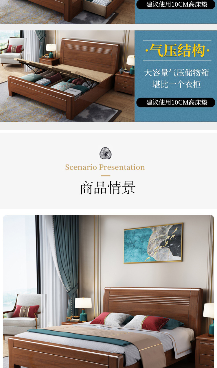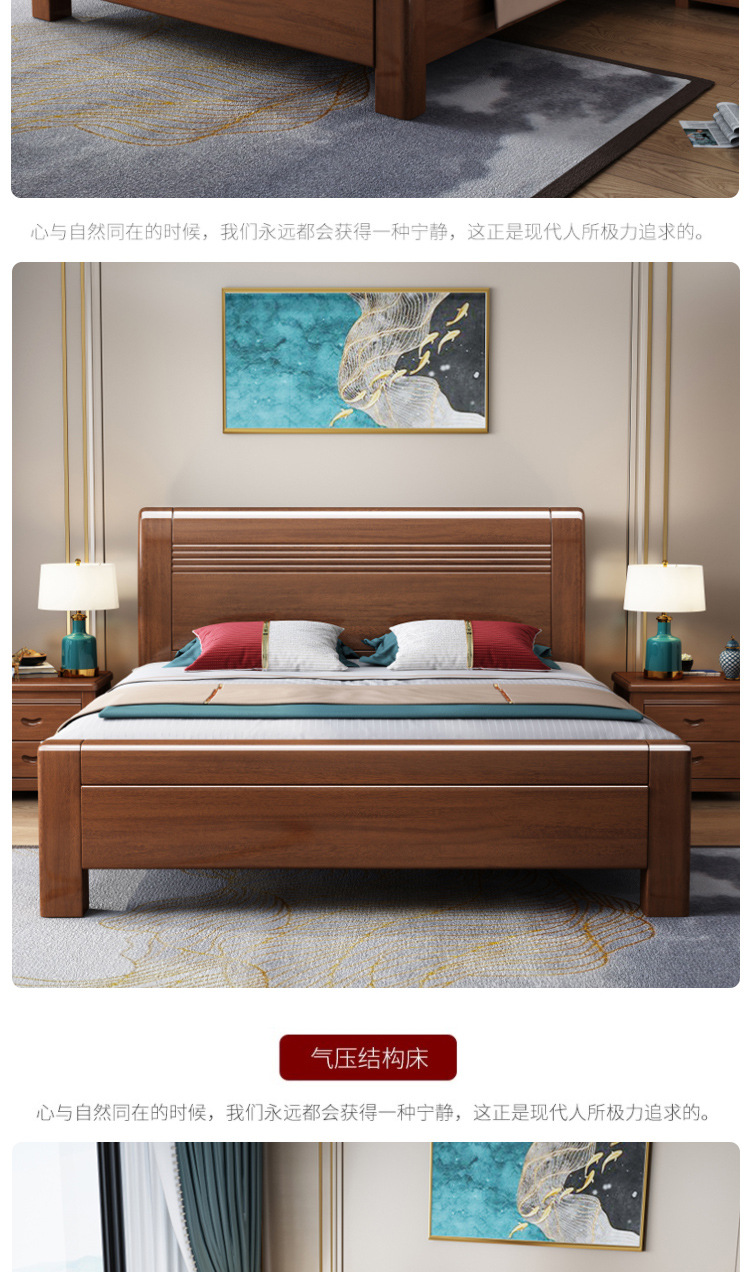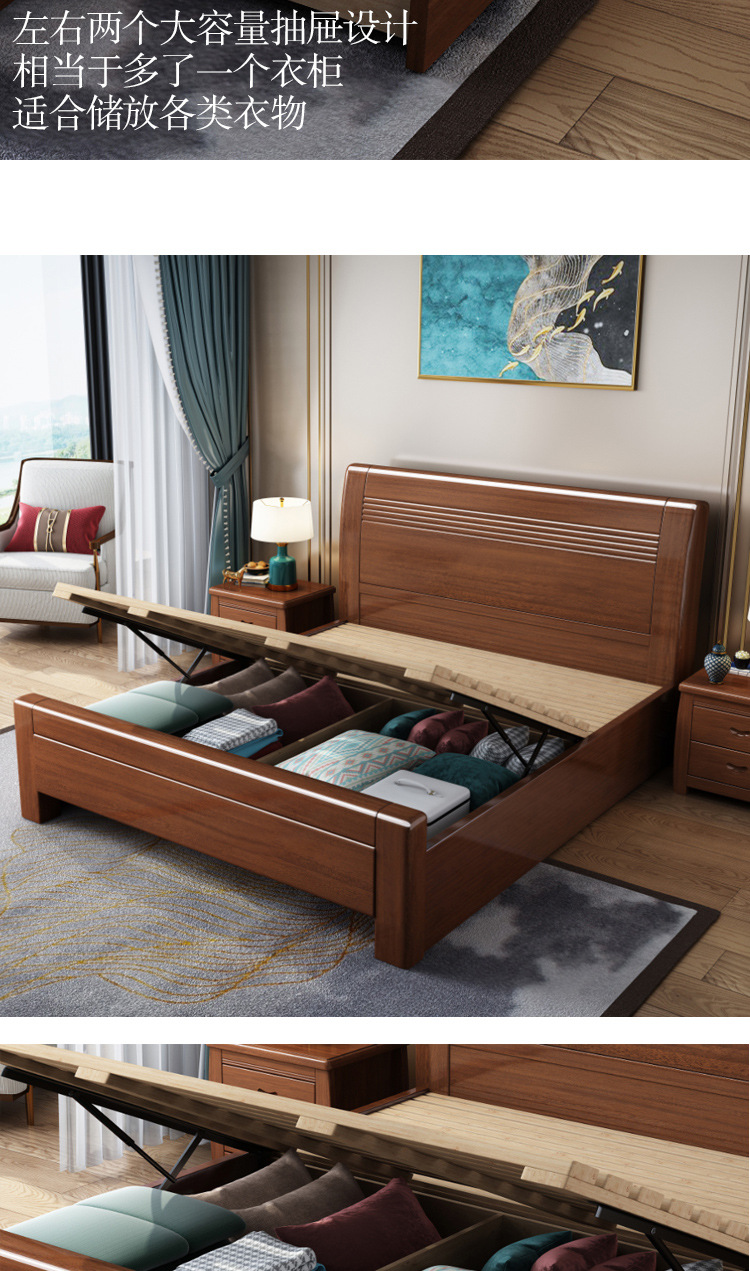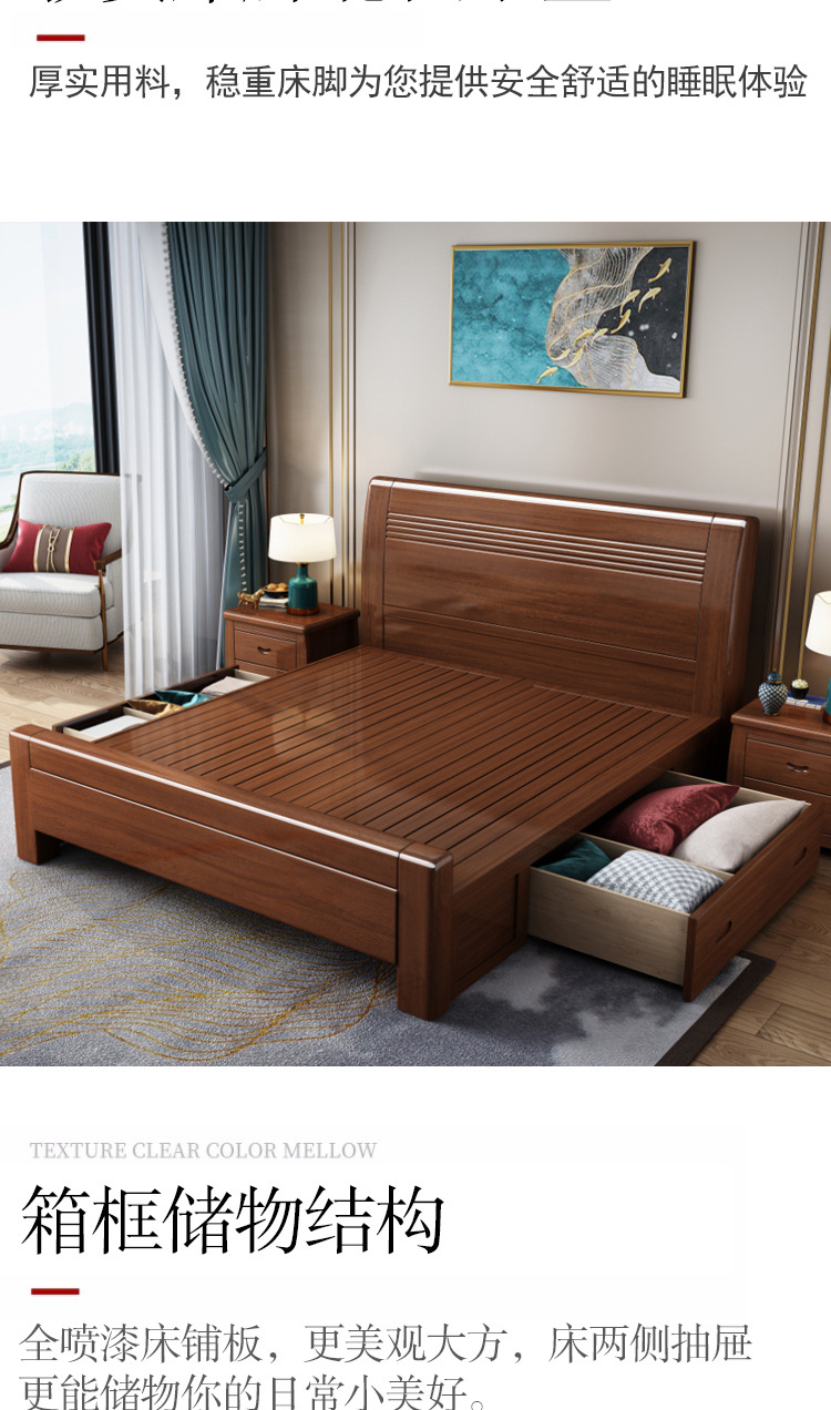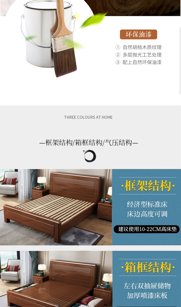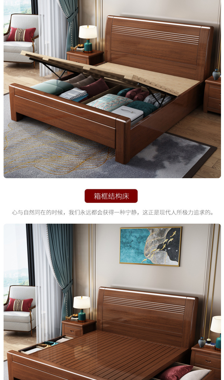 단단한 나무 침대 1.8 m 현대 간단한 마스터 침실 가정용 수납 침대 1.5 m 호두 작은 아파트 웨딩 침대 더블 침대스토어 가기