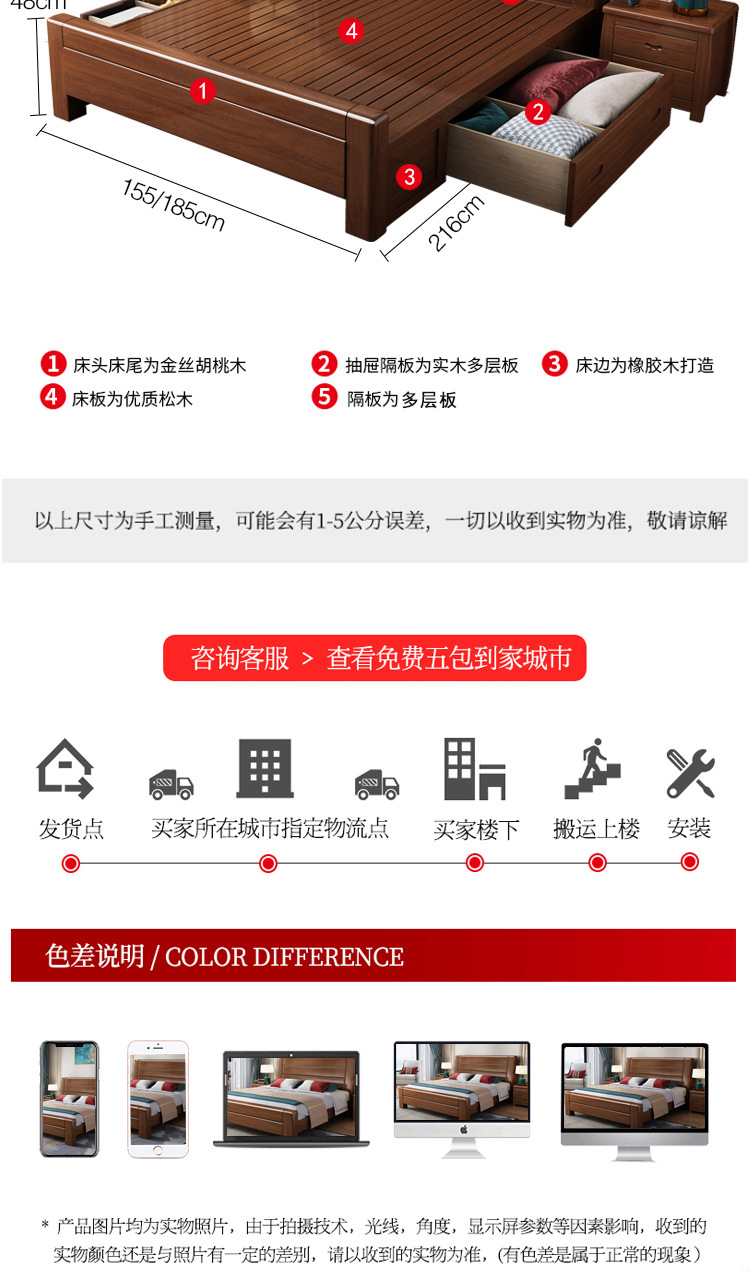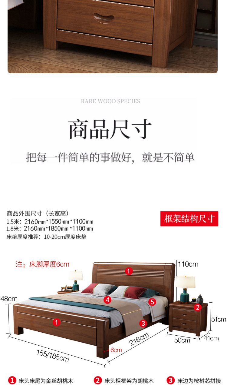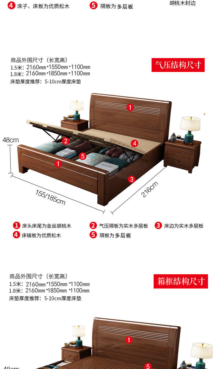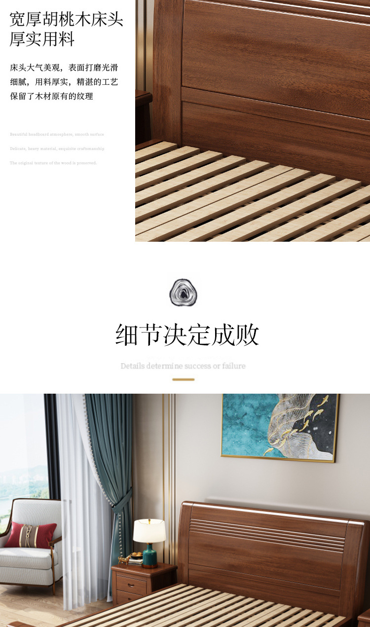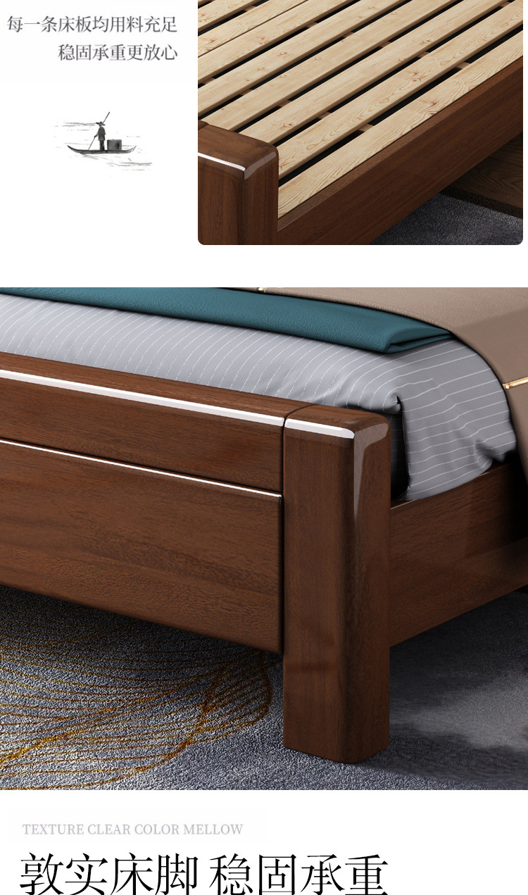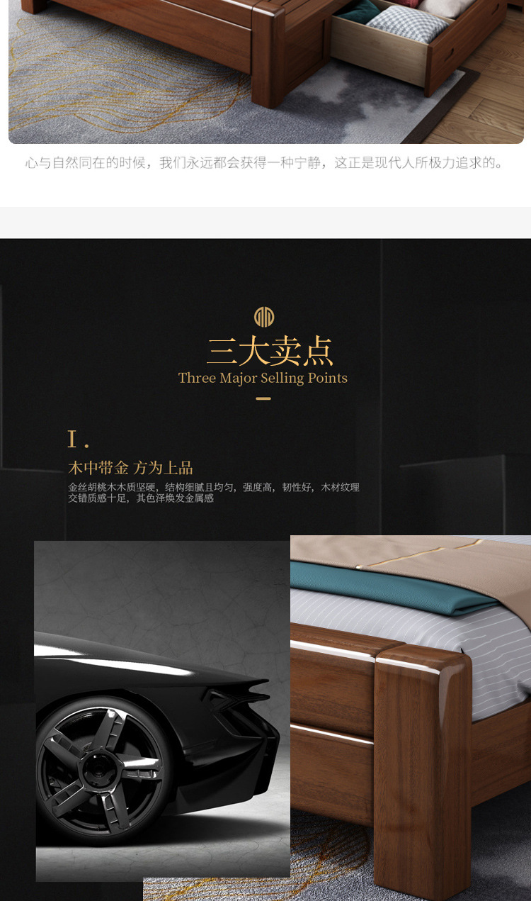 단단한 나무 침대 1.8 m 현대 간단한 마스터 침실 가정용 수납 침대 1.5 m 호두 작은 아파트 웨딩 침대 더블 침대스토어 가기