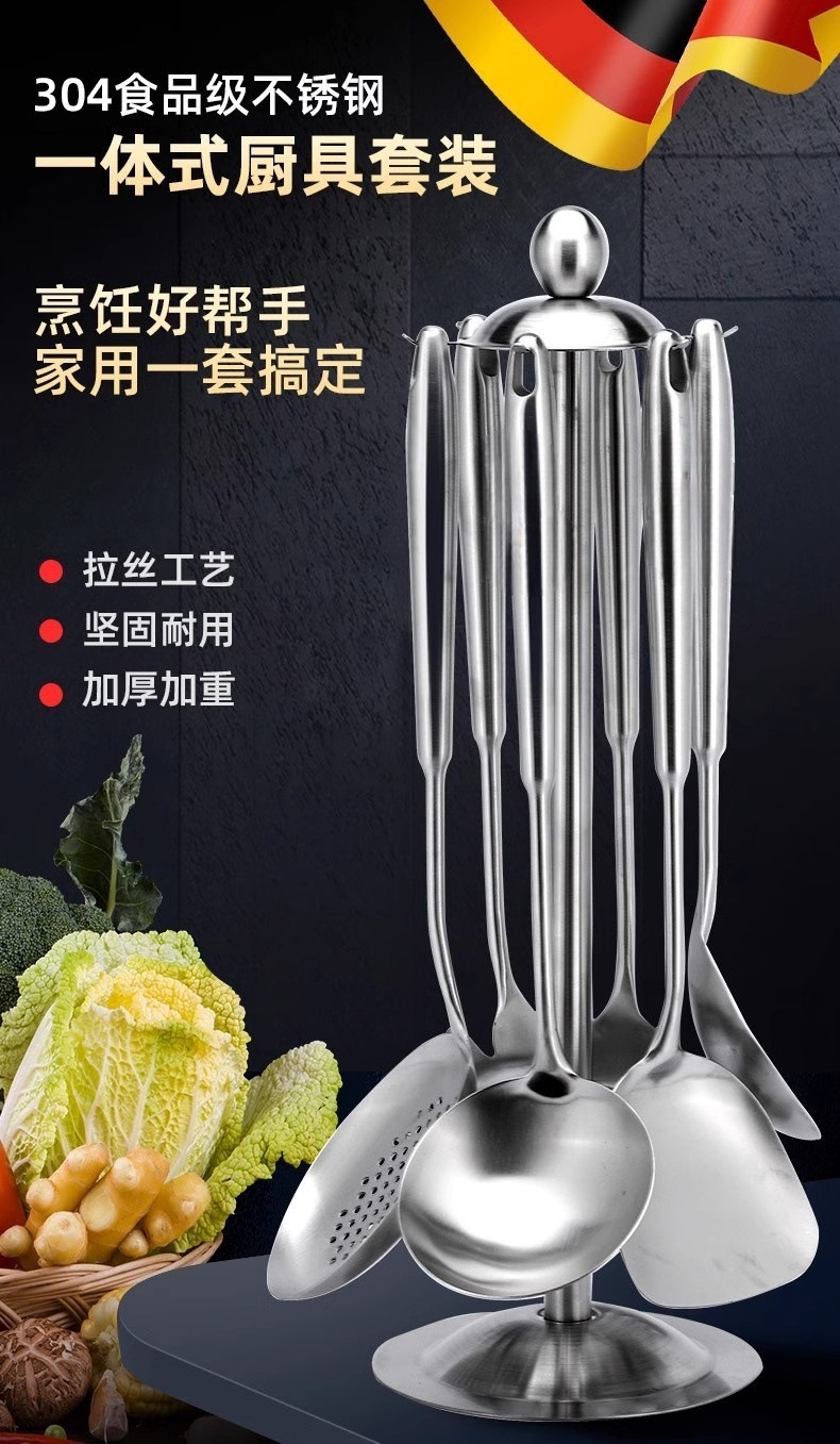 304 스테인레스 스틸 주걱, 요리 스푼, 프라이팬 주걱, 소쿠리, 수프 스푼, 가정용 대형 수프 일일 주방 용품 세트스토어 가기