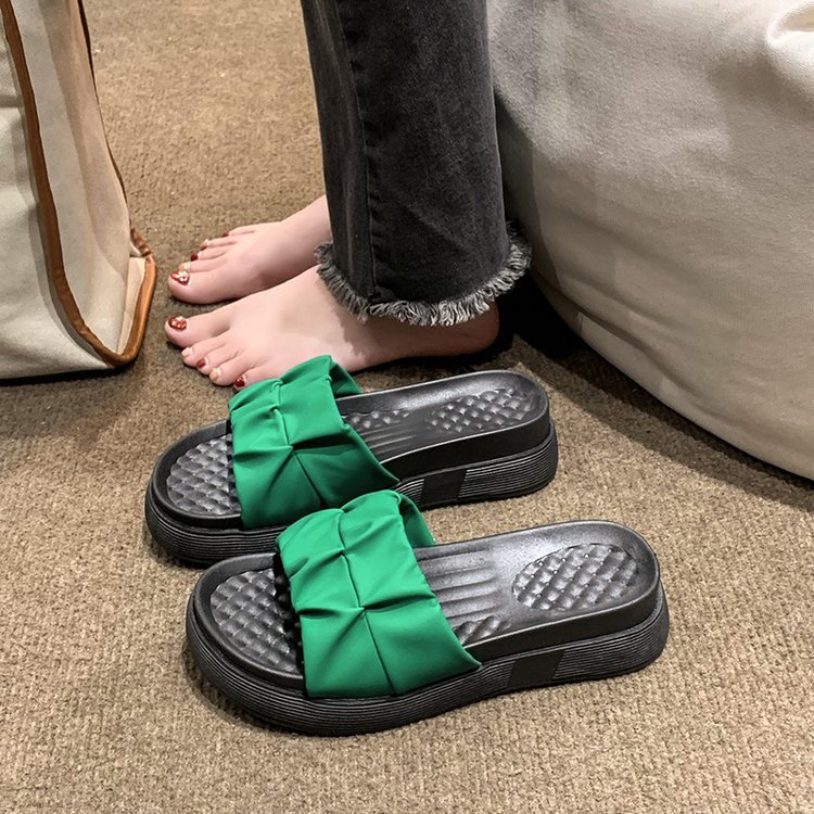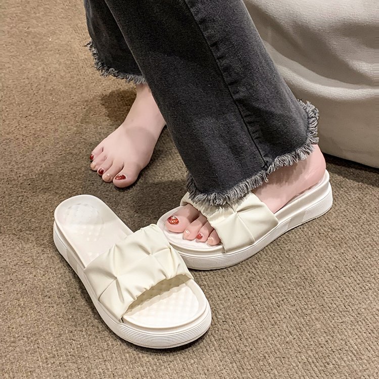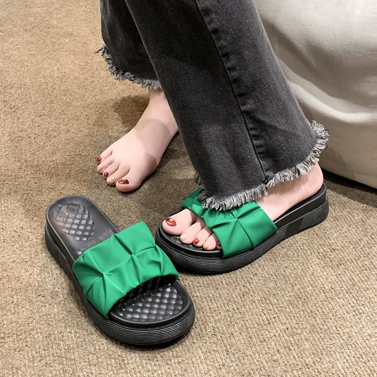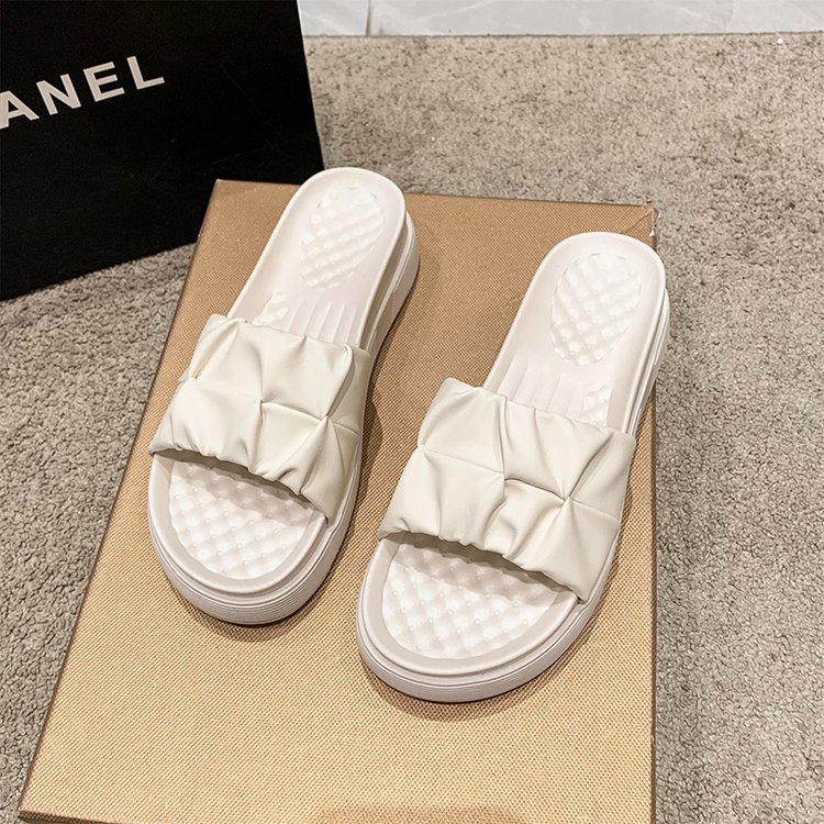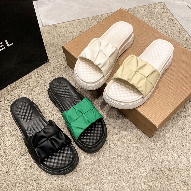 플러스 사이즈 머핀 두꺼운 밑창 슬리퍼 여성용 2023 여름 새로운 플랫 밑창 오픈 토 아우터 숙녀 슬리퍼 도매스토어 가기