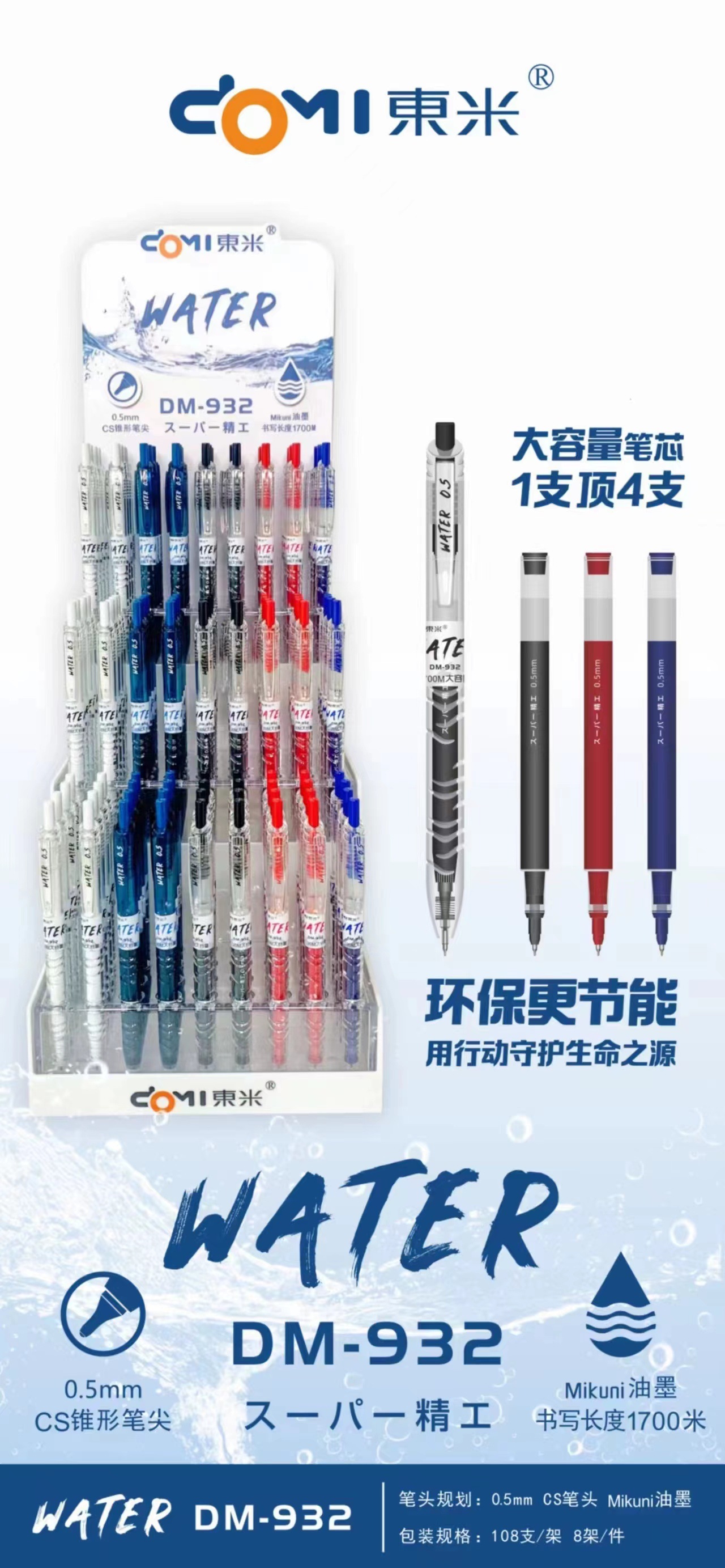 동미 932 병 대용량 프레스 젤 펜 학생 간단한 스타일 쓰기 부드럽고 부드러운 잉크 0.5