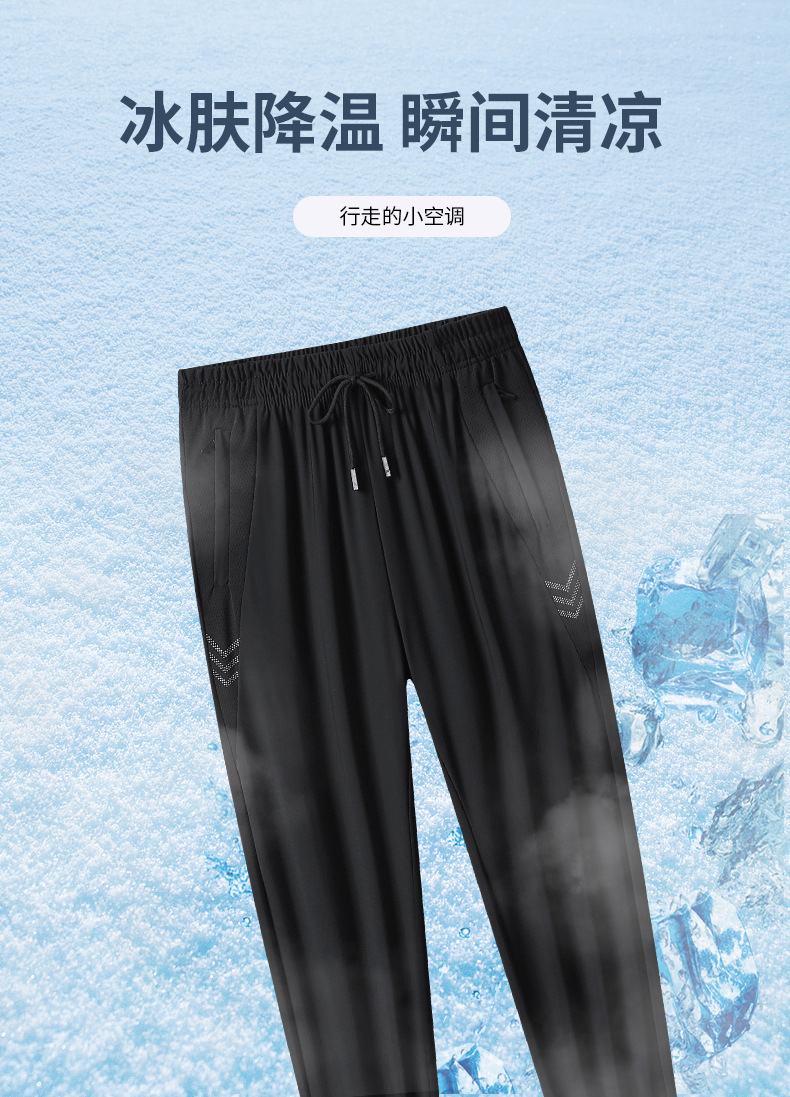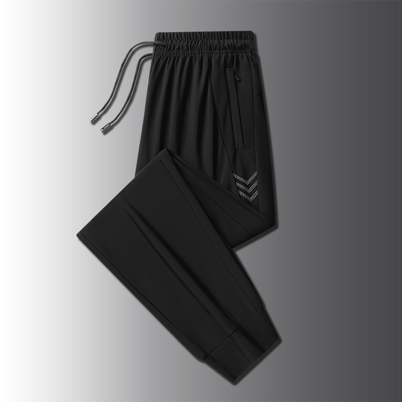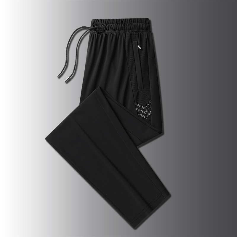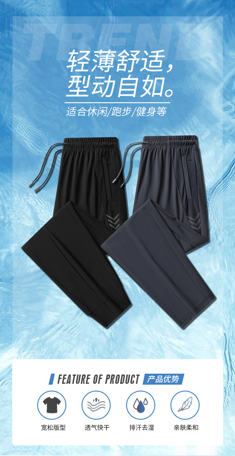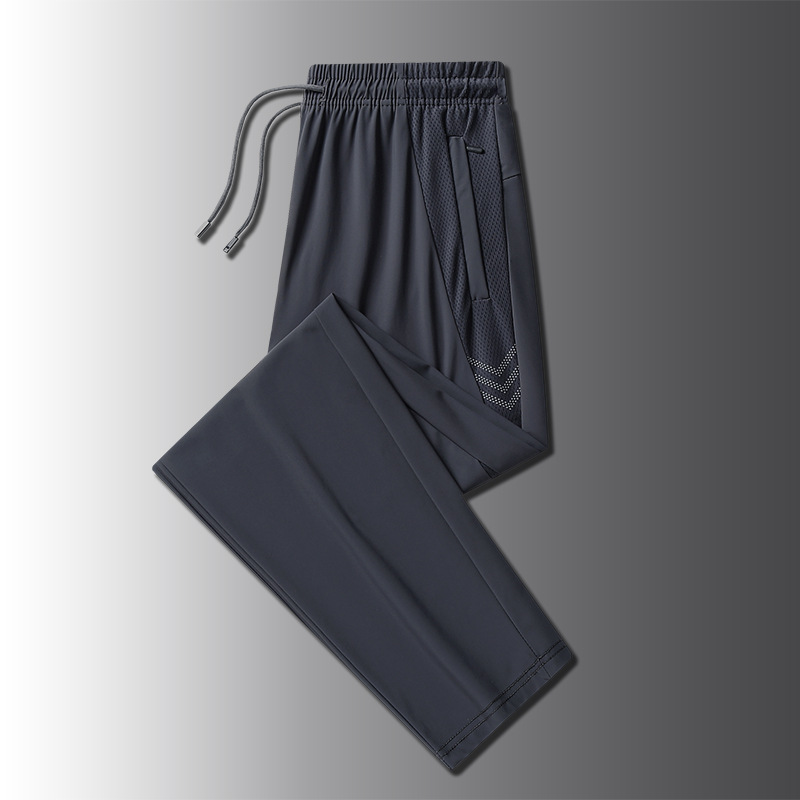 아이스 실크 바지 남성용 여름 얇은 느슨한 다리 속건 스포츠 바지 남성용 트렌디 브랜드 스트레이트 캐주얼 바지 남성용