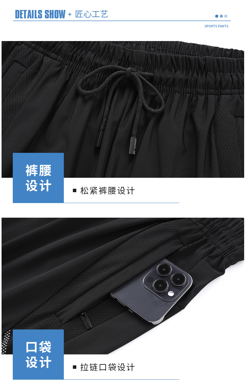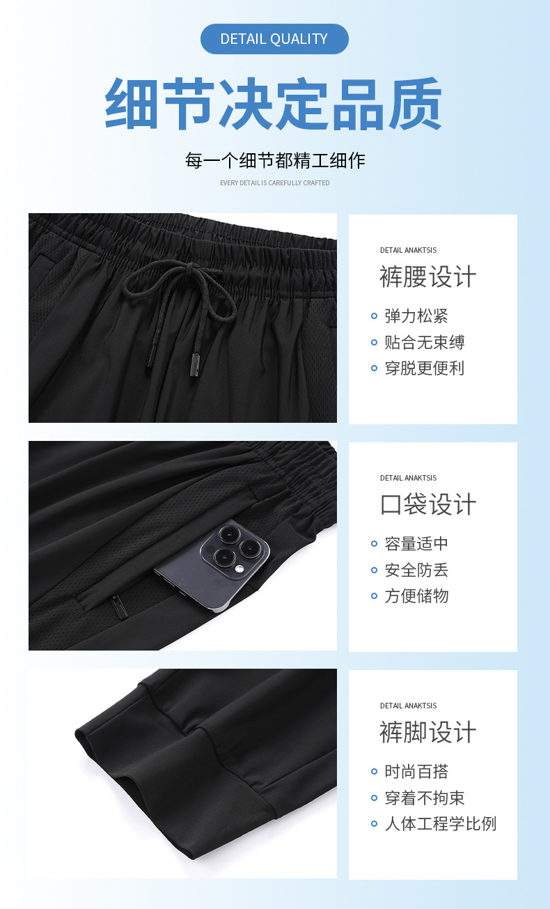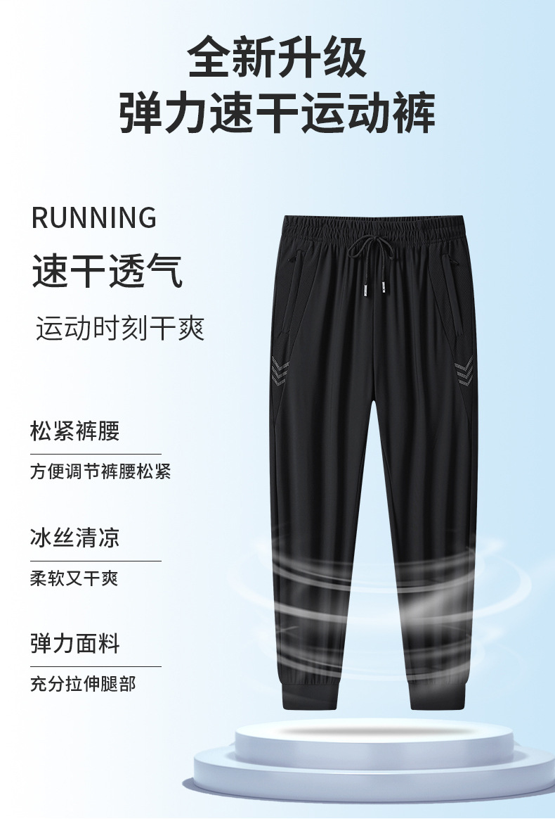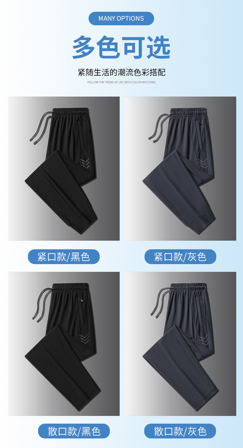 아이스 실크 바지 남성용 여름 얇은 느슨한 다리 속건 스포츠 바지 남성용 트렌디 브랜드 스트레이트 캐주얼 바지 남성용