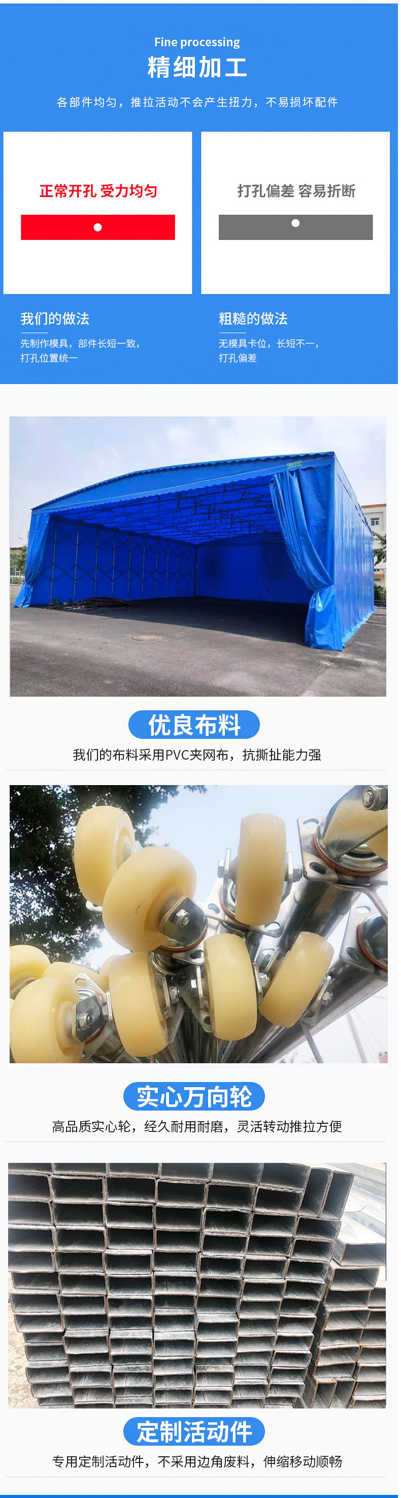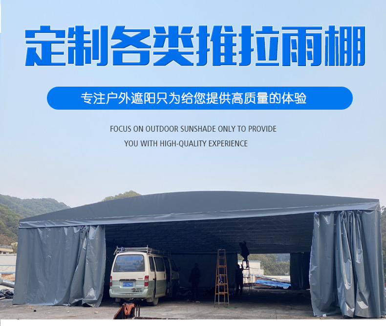 전기 원격 제어 텔레스코픽 창고 모바일 푸시-풀 차양 천막 야외 창고 활동 수축 창고 기어 차양 텐트