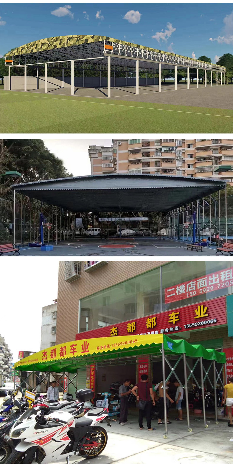 전기 원격 제어 텔레스코픽 창고 모바일 푸시-풀 차양 천막 야외 창고 활동 수축 창고 기어 차양 텐트스토어 가기