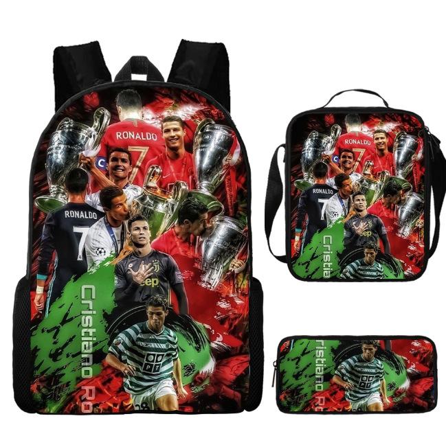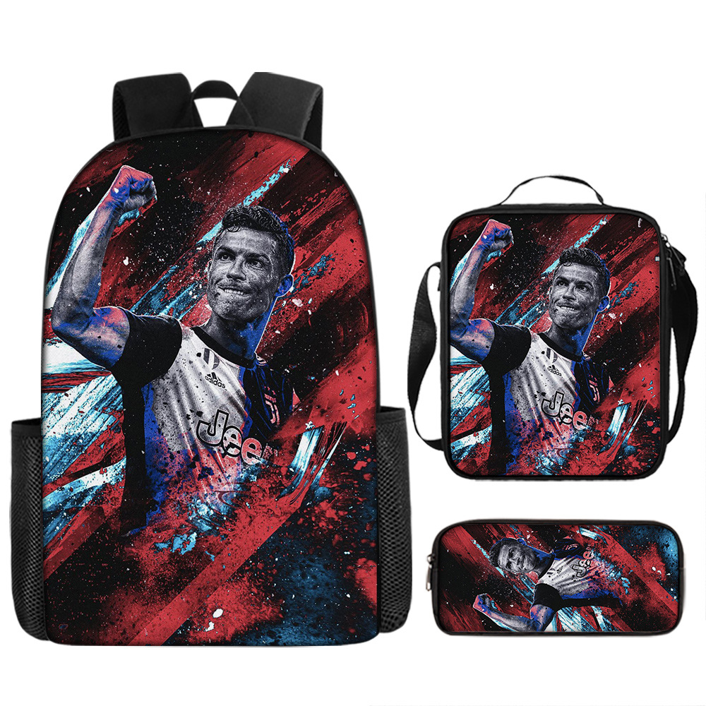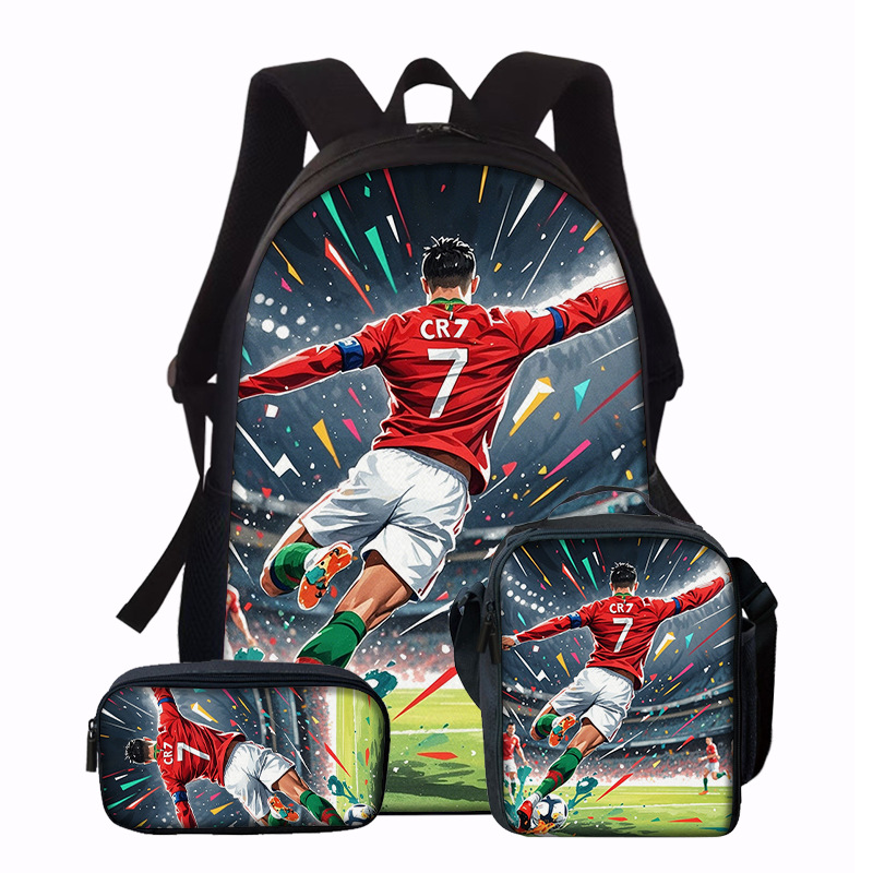 축구 스타 시로 백팩 프린트 쓰리피스 세트 어린이 학교 가방 초중등 학생 숄더백 도시락 가방 연필 가방스토어 가기