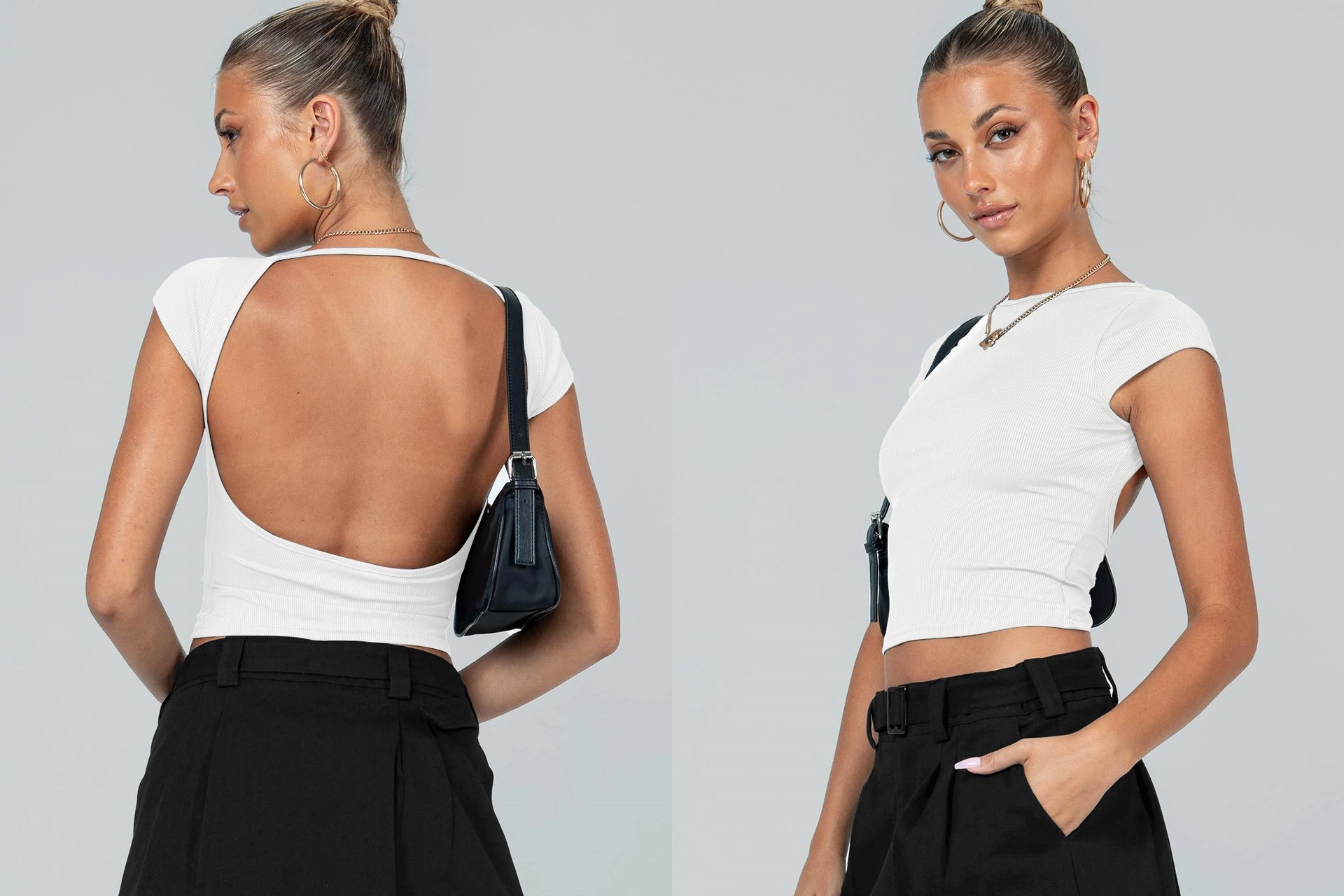유럽과 미국의 패션 Y2K 여름 섹시한 백리스 나일론 수분 위킹 편안한 통기성 반팔 슬림 BM 탑 티셔츠