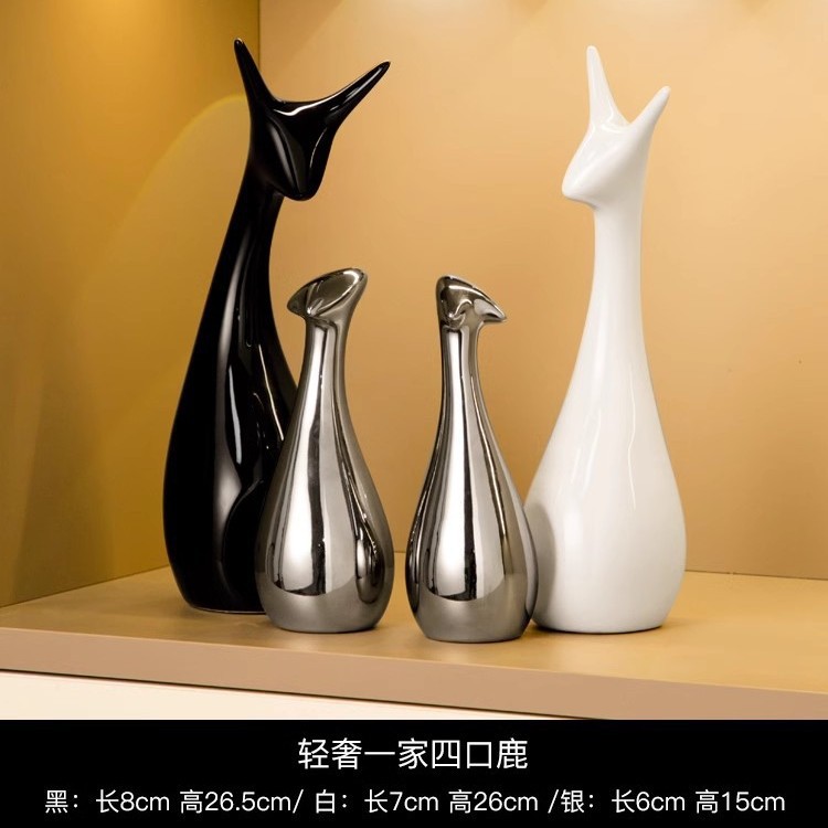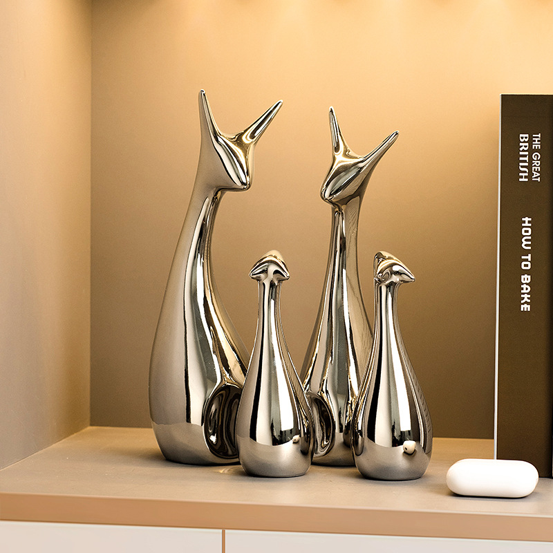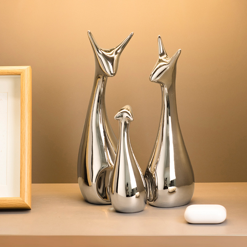 가벼운 럭셔리 고급 실버 도금 세라믹 장식품 홈 거실 와인 캐비닛 TV 캐비닛 장식 창조적 인 데스크탑 입구 장식