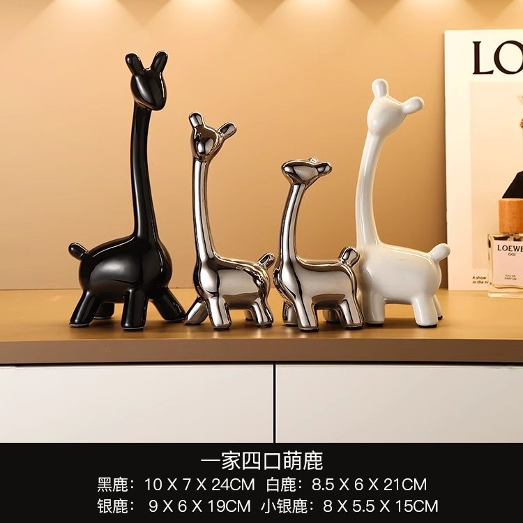 • 4 사슴의 가벼운 럭셔리 실버 도금 가족 [세트]